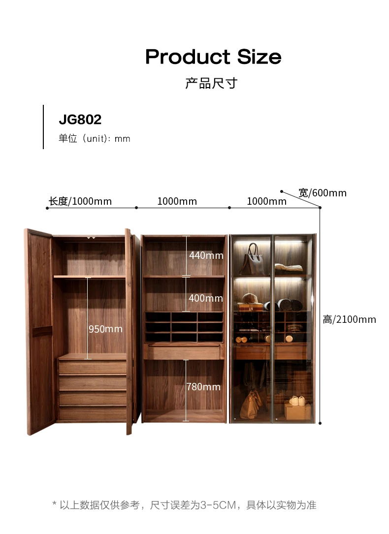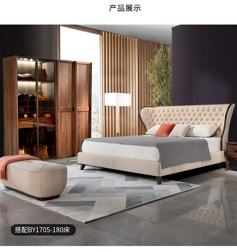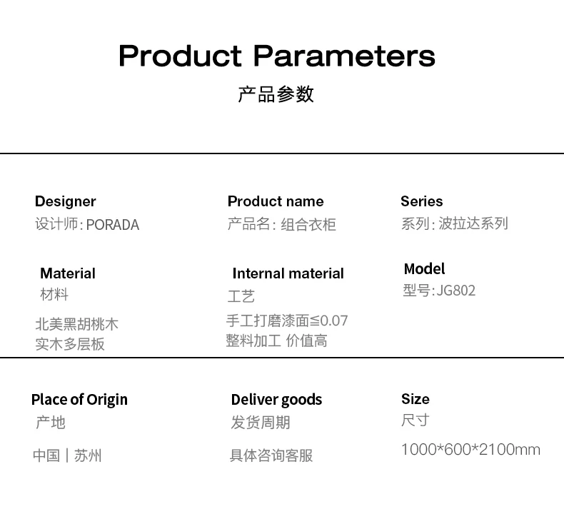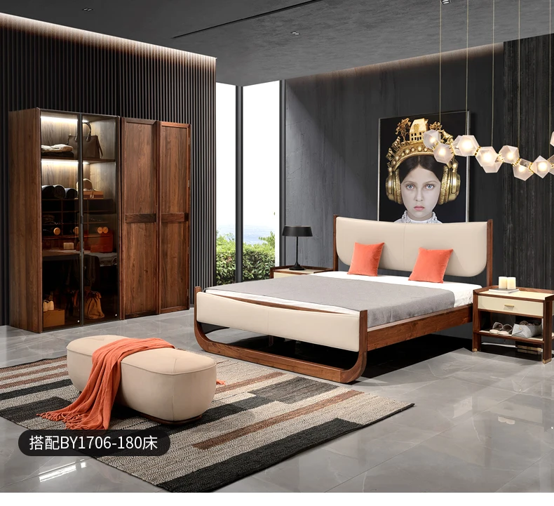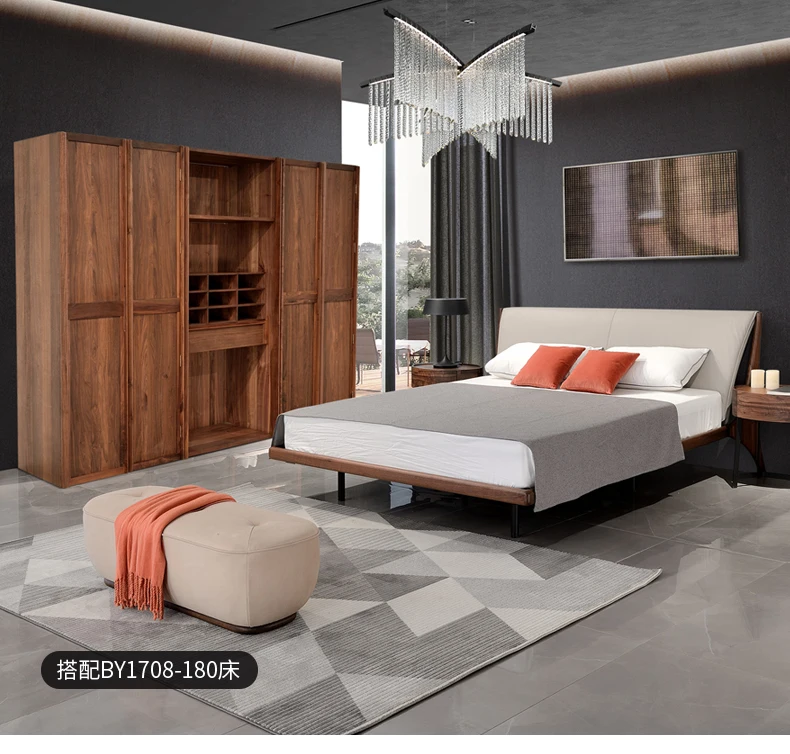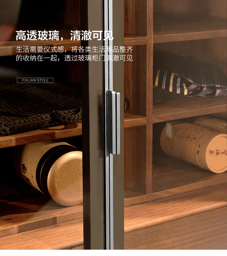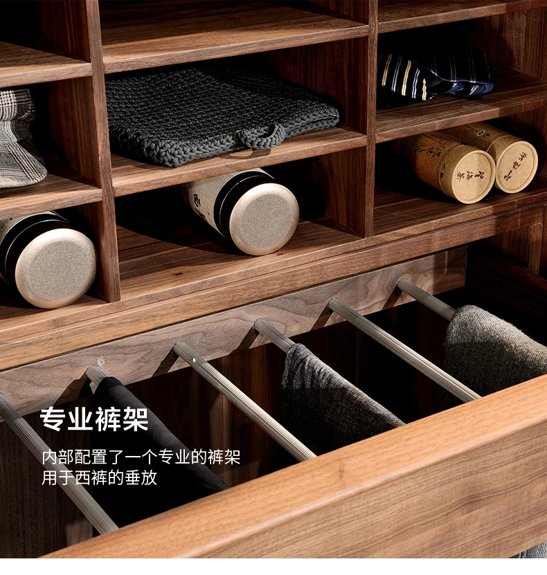 North American black walnut two-door wardrobe Italian minimalist all solid wood large wardrobe home bedroom cabinet adult Nordic