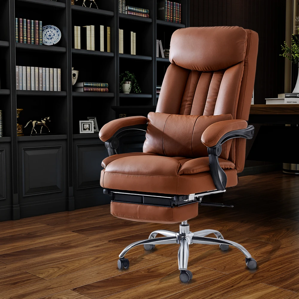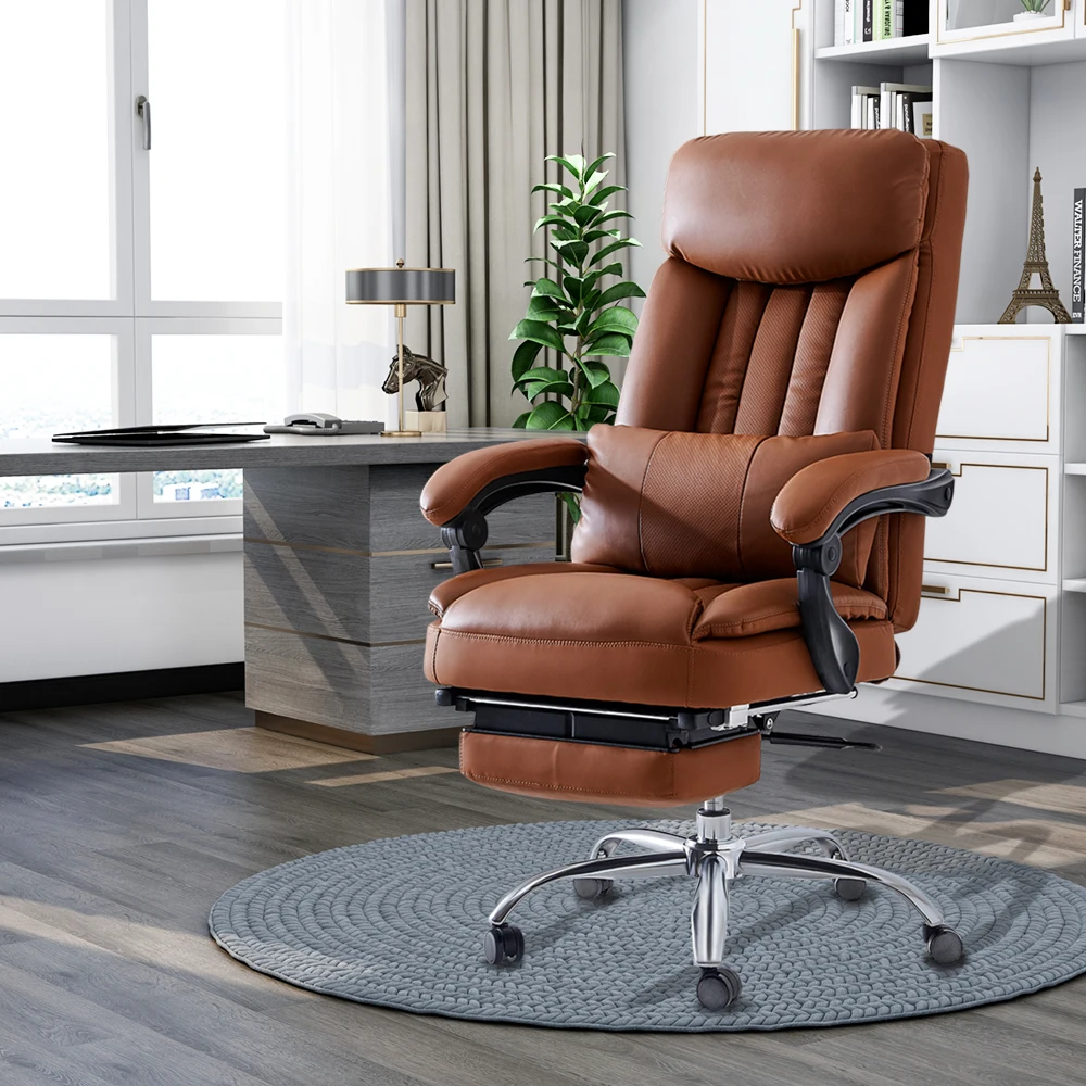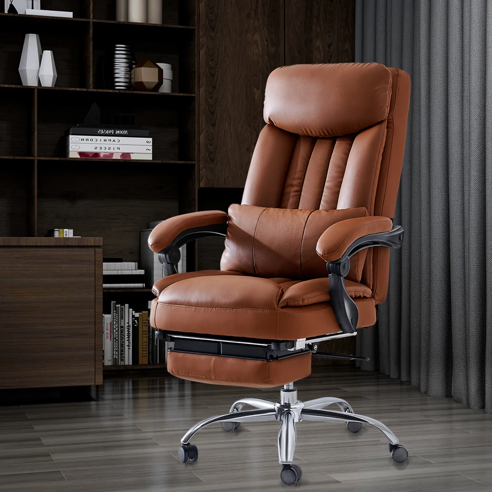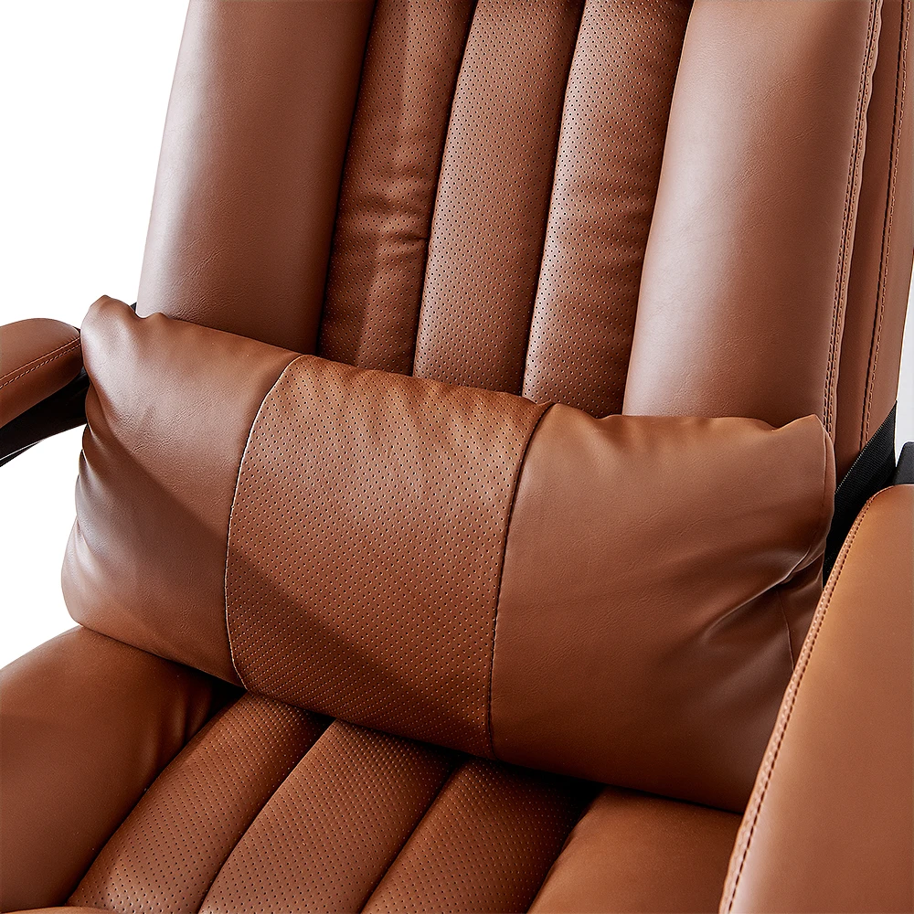 Office Computer Swivel Chair Ergonomic Design Exectuive High Back Adjustable Brown Removable Lumbar Support Cushion[US-Stock]