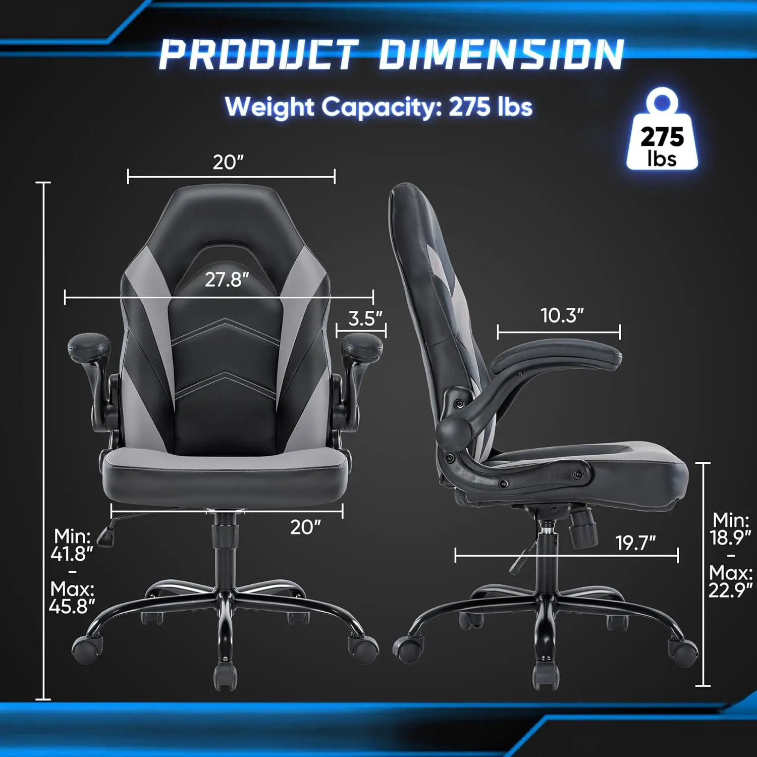 Office Ergonomic Computer Gaming Desk Racing Chair for Adults, Flip-up Arms Adjustable Height PU Leather Swivel with Wheel