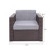 Introductions: This 7 Pieces Patio PE Wicker Rattan Corner Sofa Set is a best choice for you. It's made of gray synthetic resin wicker and designed for the outdoors. It's of great furniture to decorate your garden. The classic yet simple design made it look great in any setting. This set is a beat useful furniture for you. It has comfortable sofas you can sit on it to enjoy your leisure time. The space saving design makes your garden delicate. You will like it so what are you still waiting for? Features: 1. Breathable and waterproof cushion for comfortable seat. 2. Cushion with zipper,removable and washable 3. Water resistant cushion covers against water spilling. 4. Table with removable tempered glass top,easy to clean. 5. There are plastic feet underneath to avoid slip. 6. Plasitc clips are provided to keep the pieces from sliding apart. 7. All-weather PE wicker UV resistant,durable steel frame. 8. Sectional sofa will have a perfect shape for any space. Specifications: 1. Material: Steel & Wicker 2. Color: Brown 3. Table Load Capacity: 165lb / 75kg 4. Sofas Load Capacity: 330lb / 150kg 5. Table Dimensions: (25.6x25.6x12.5)" / (65 x65 x 31.5)cm (L x W x H) 6. Armless Sofa Dimensions: (29.5 x 25.6 x25)" / (75 x 64 x 63)cm (L x W x H) 7. Corner Sofa Dimensions: (29.5 x 29.5 x25)" / (75 x 75 x 63)cm (L x W x H) 8. Ottoman Dimensions: (30 x 30 x12.6)" / (76 x 76 x 32)cm (L x W x H) 9. Single Sofa Dimensions: (33.5 x 29.5 x 25)” / (85 x 75 x 63)cm (L x W x H) 10. Tempered Glass Dimensions: (25.6x25.6x0.2)" / (65 x65 x 0.5)cm (L x W x H) 11. Cushion thickness: 4" Package Includes: 2 x Armless Sofa 1 x Single Sofa 1 x Table 1 x Ottoman 2 x Corner Sofa 2 x Pillow 13 x Cushion 1 x Tempered Glass 1 x Accessories Bag 1 x Installation instructions