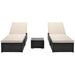 Outdoor Garden 3 Piece Wicker Patio Chaise Lounge Set Adjustable PE Rattan Reclining Chairs with Cushions and Side Table.