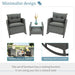 When it comes to enjoying leisure time outside, a space to feel relaxed and comfortable while you’re having a morning coffee, reading a book or catching a quick nap is necessary. This 3 Piece Rocking Patio Furniture Set can create such a space for you, a perfect setting for sharing the joys, enjoying natural scenes, or chatting with friends. Manufactured with all-weather PE rattan, the conversation set can be used outdoor to have a free time. Durable and sturdy powder-coated steel frame allow this patio set to withstand a maximum weight of 350 lbs, designed for people of any figure to rock comfortably while feeling safe and secure, makes the chair more stable but lightweight. Extra wide armrests and thick foam-padded cushions provide a better seating experience for you. The elegant tempered-glass table is perfect for you to enjoy food and couple glasses of wine. Widely used for outdoor patio, garden, lawn and balcony, enjoying rocking while exposing to the nature with this wicker rattan patio furniture set.