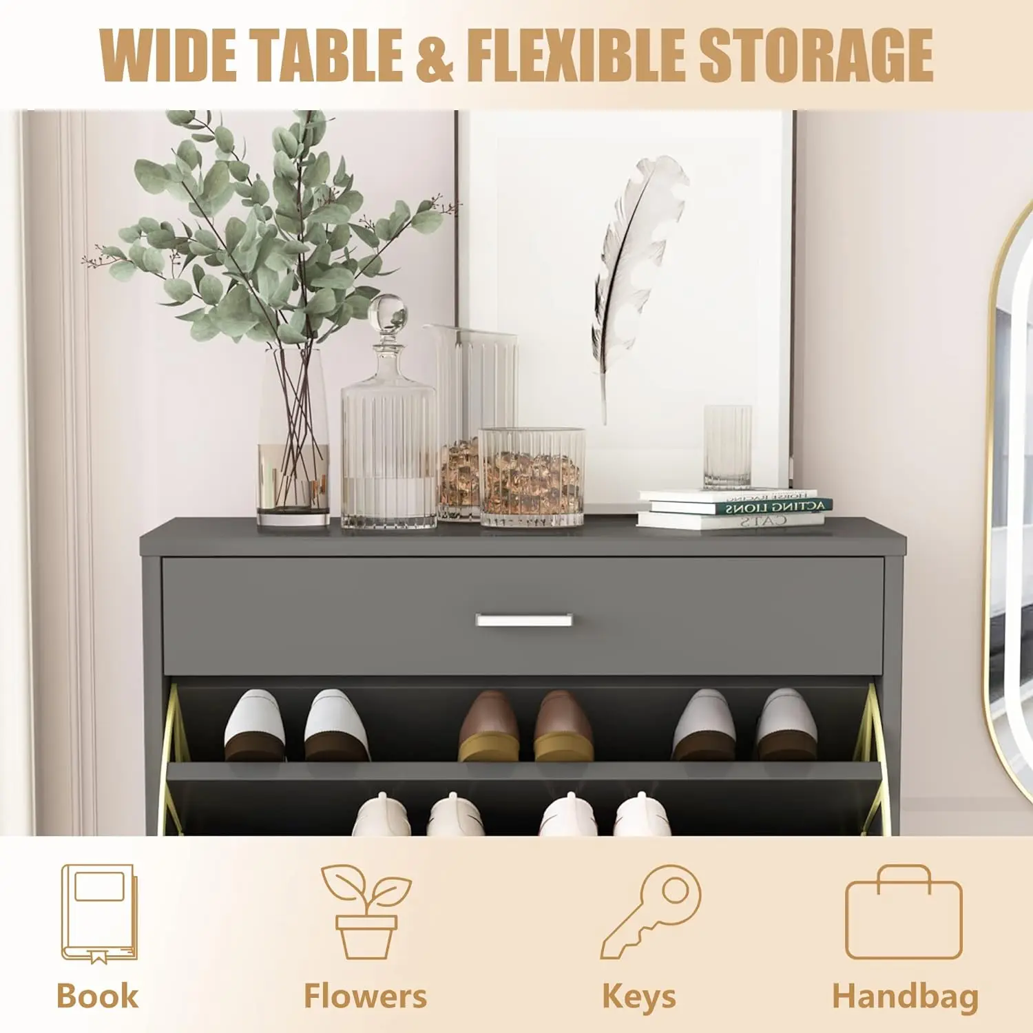- MODERN SHOE CABINET: Modern and fashion appearance with wooden slender construction make this shoe storage cabinet not only as a furniture but also as a perfect craft, which will creat a good and comfortable atmosphere for your home.