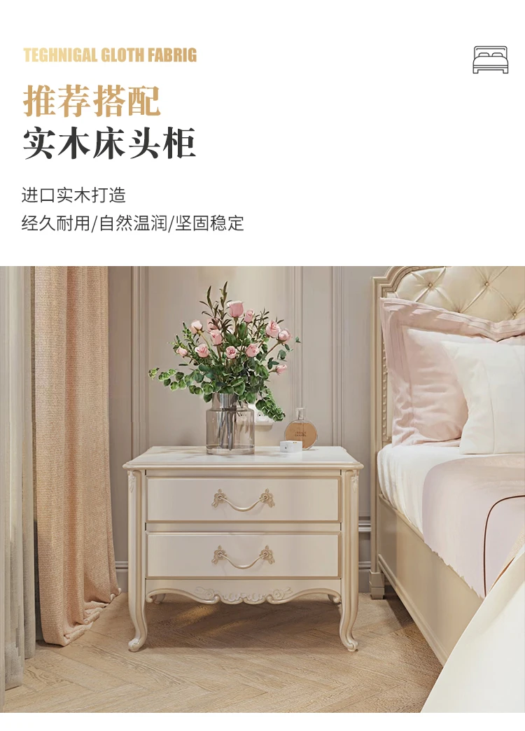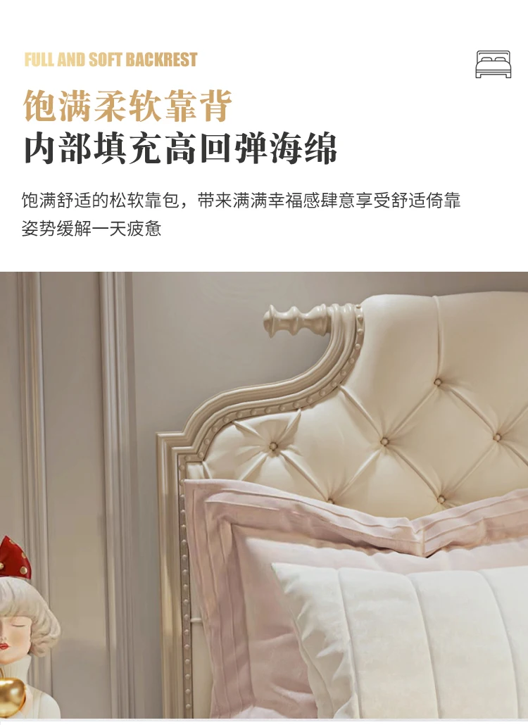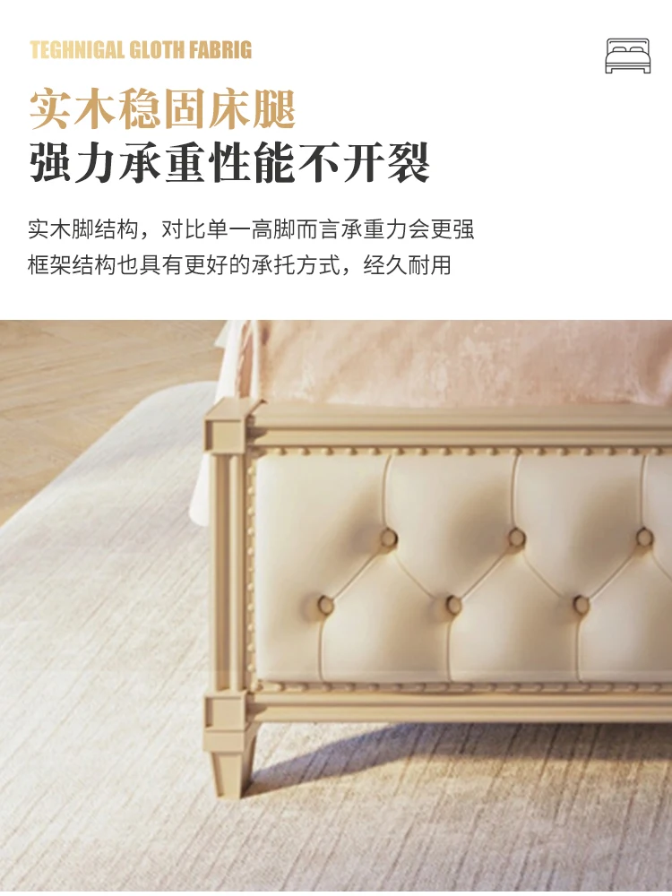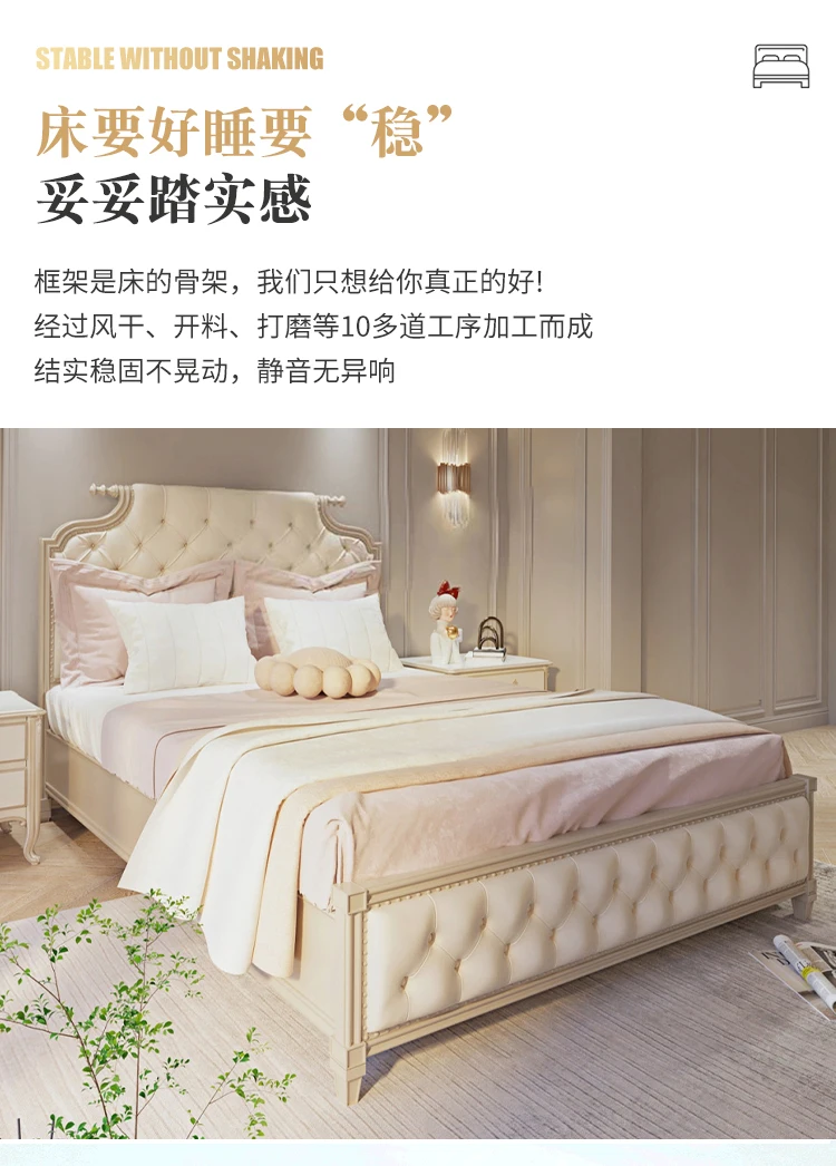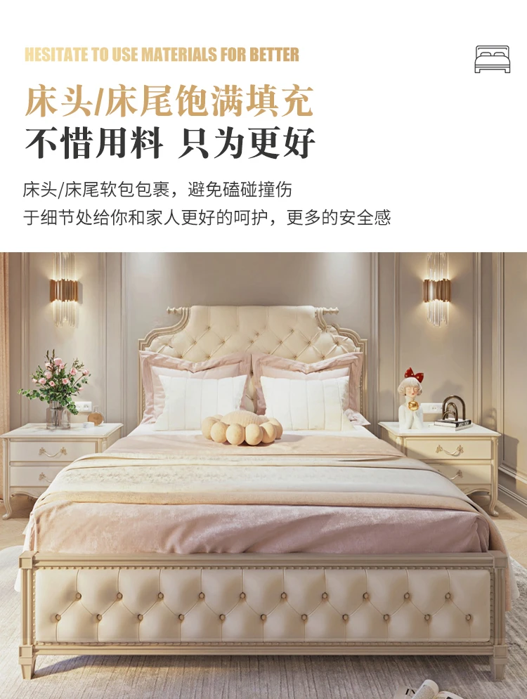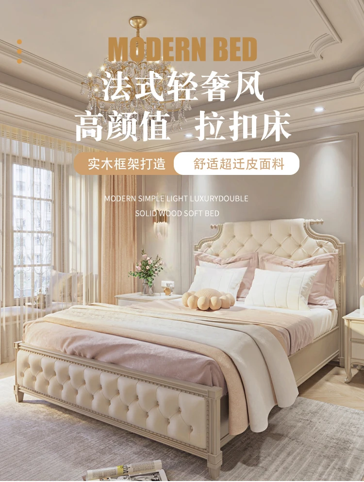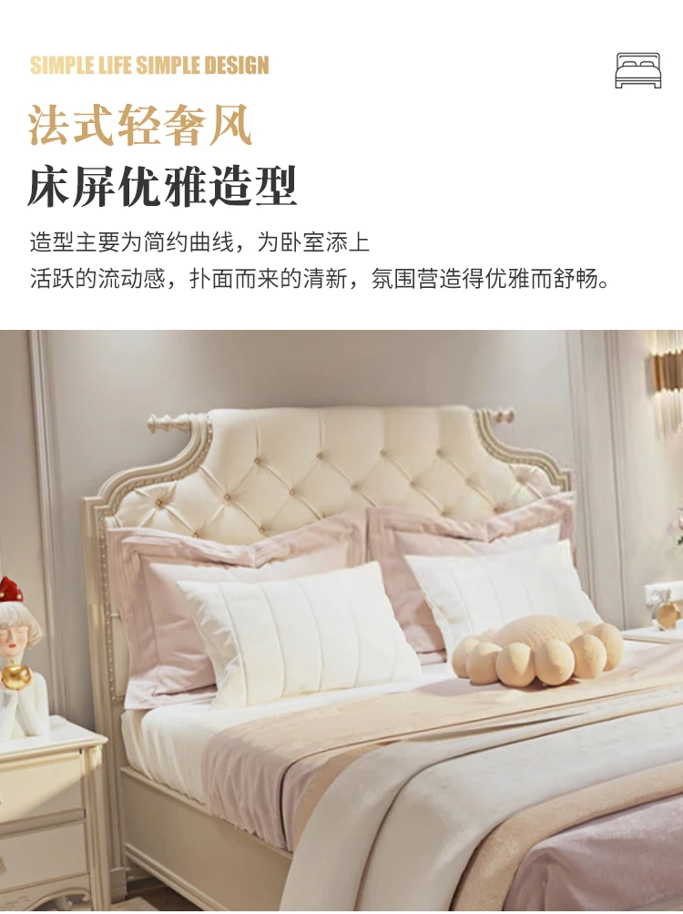 simple solid wood double bed French light luxury INS wind solid wood bed soft cover art bed