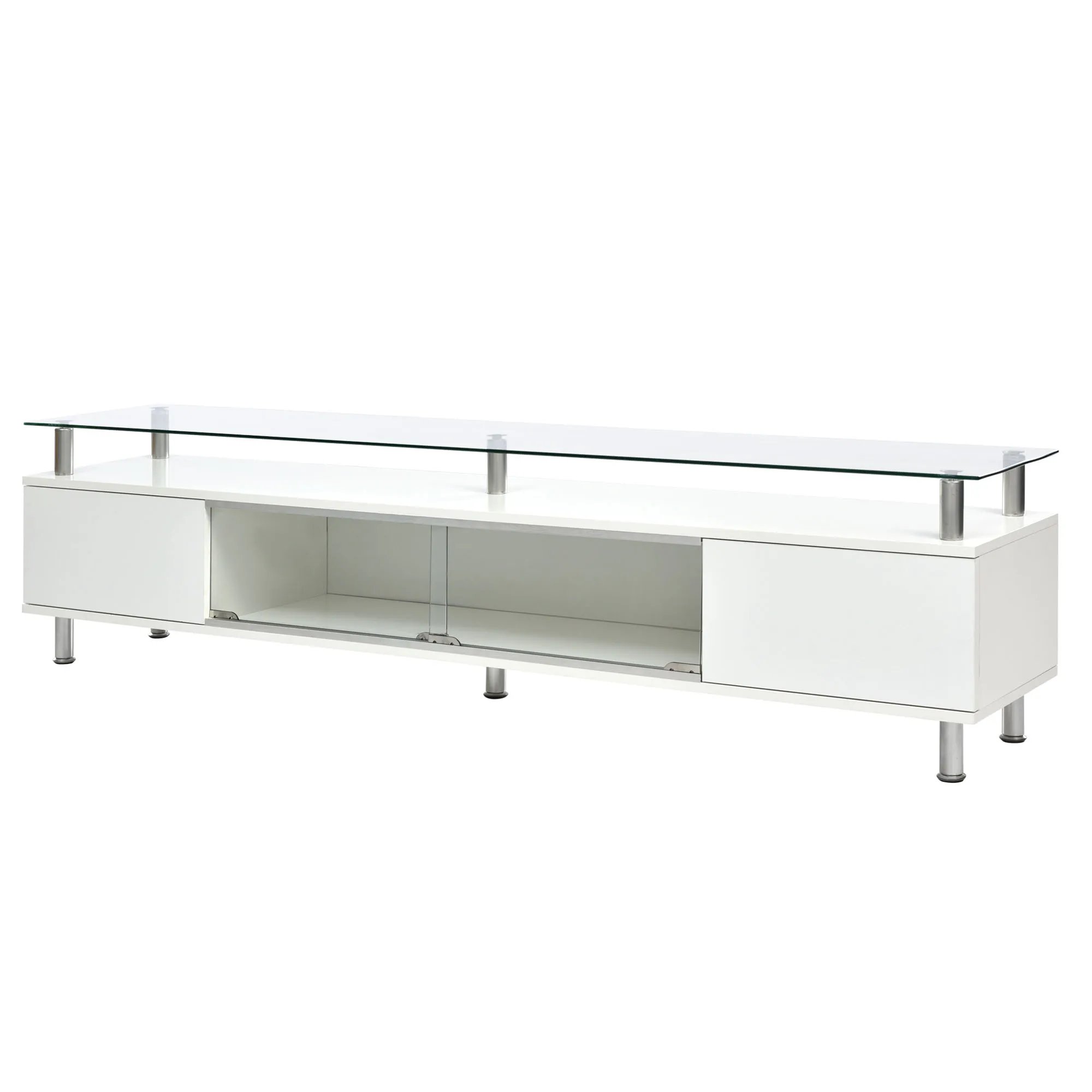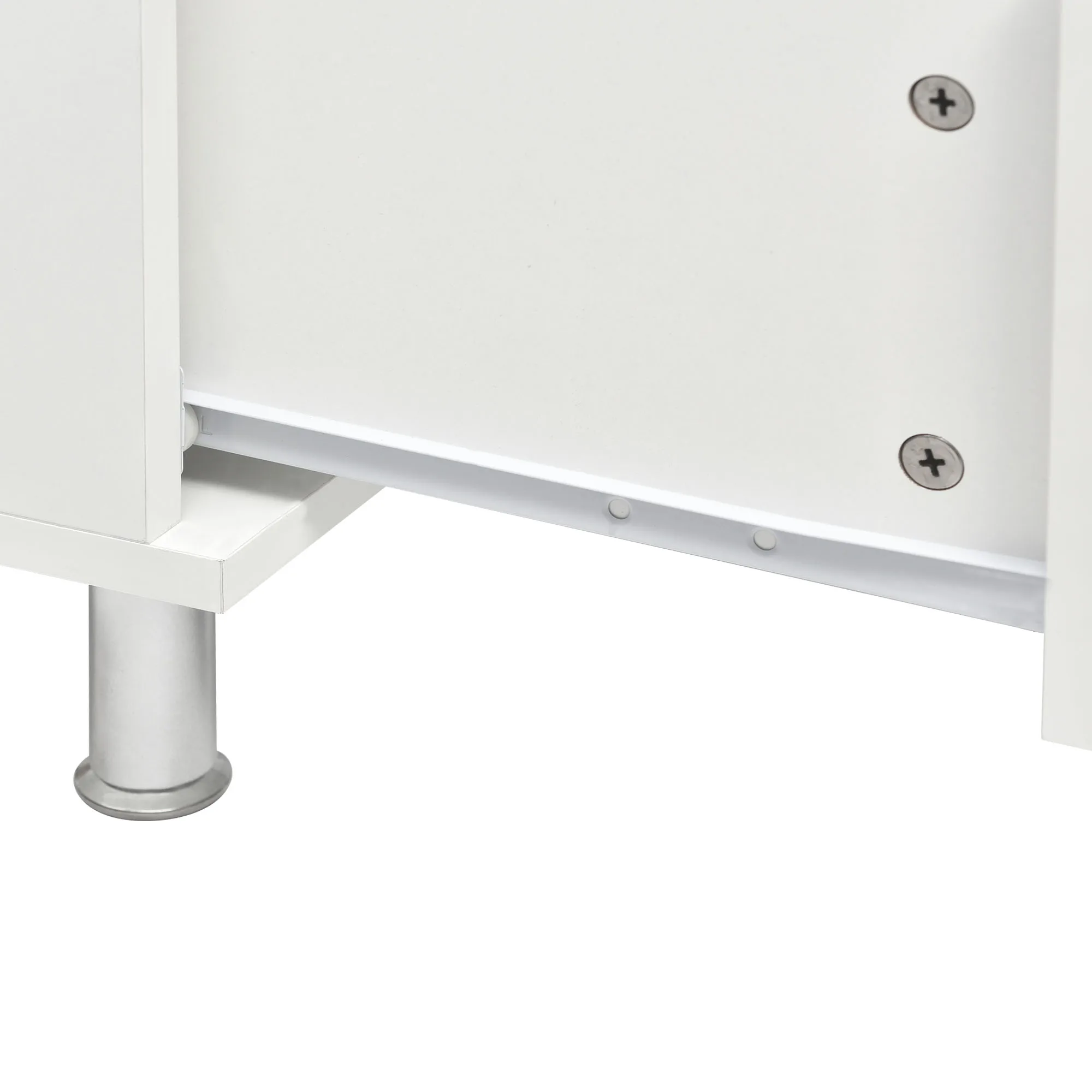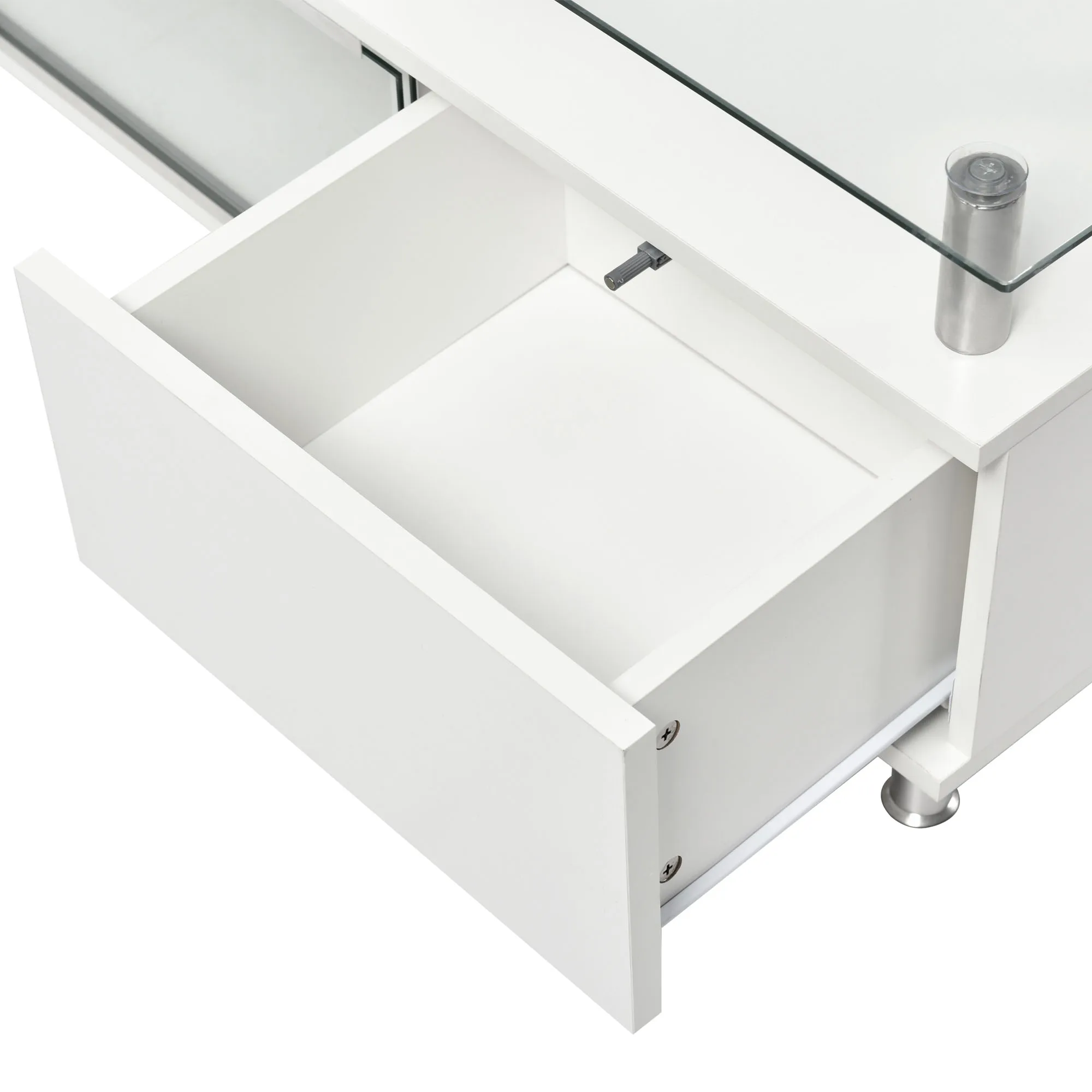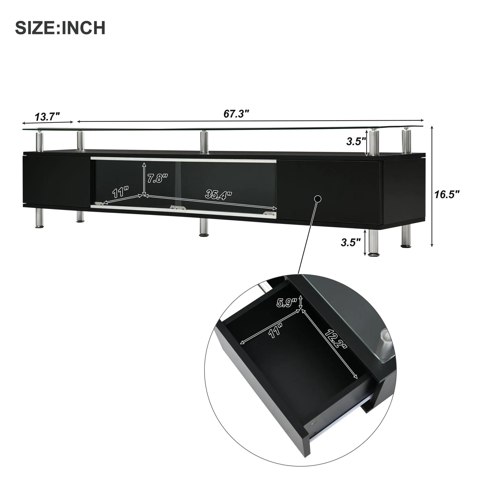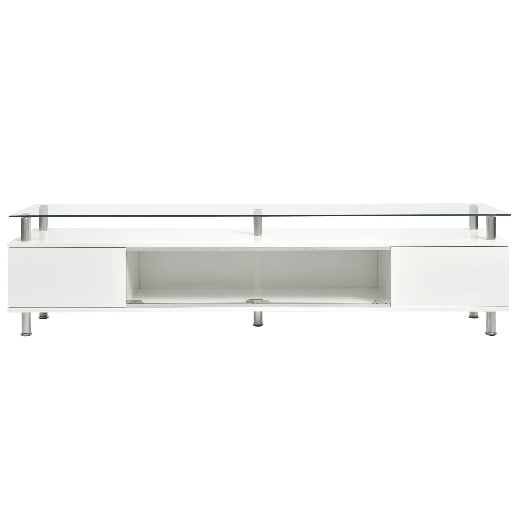 Sleek Design TV Stand with Silver Metal Legs&Ample Storage Capacity Tempered Glass TV Cabinet for TV Up to 70" White/Black[US-W]