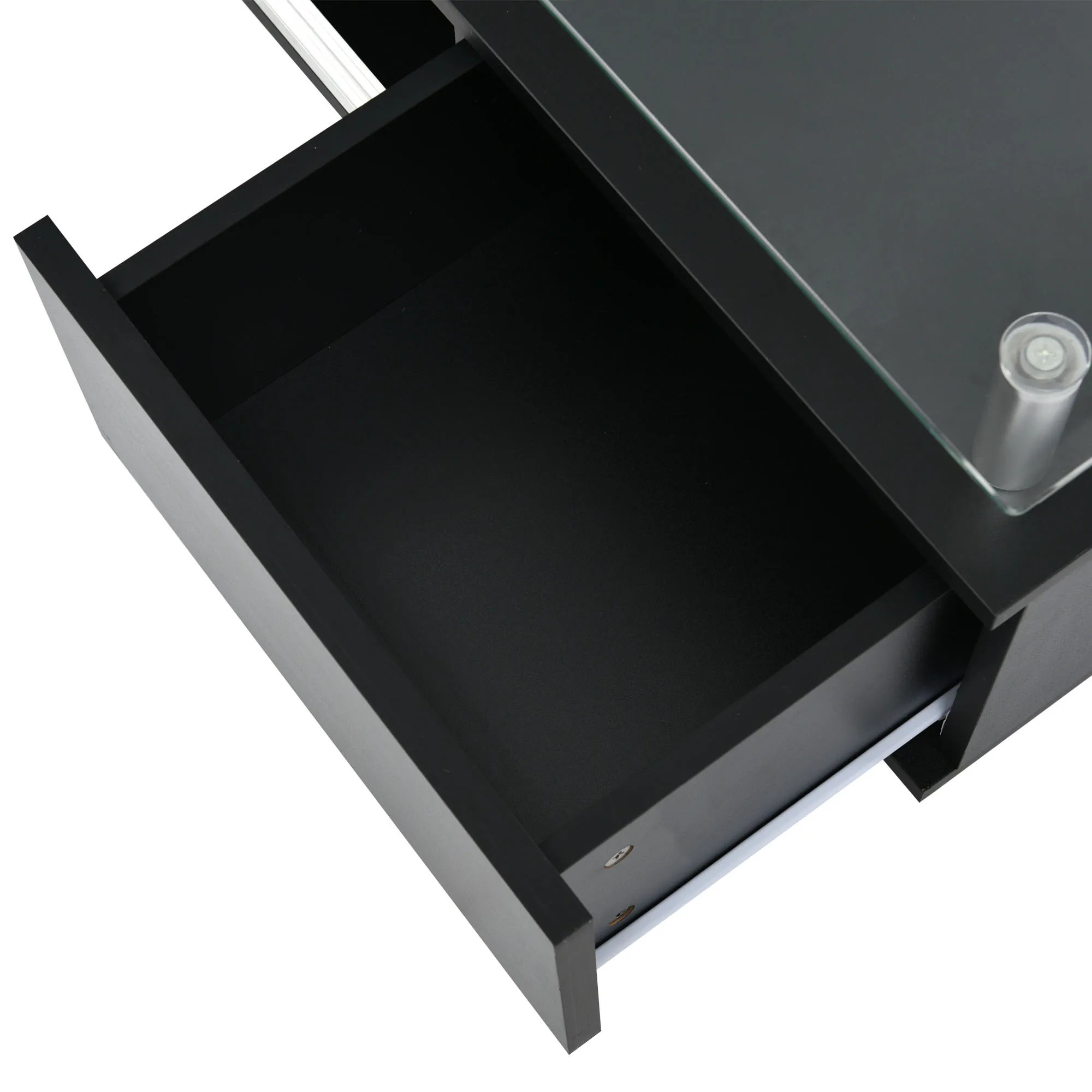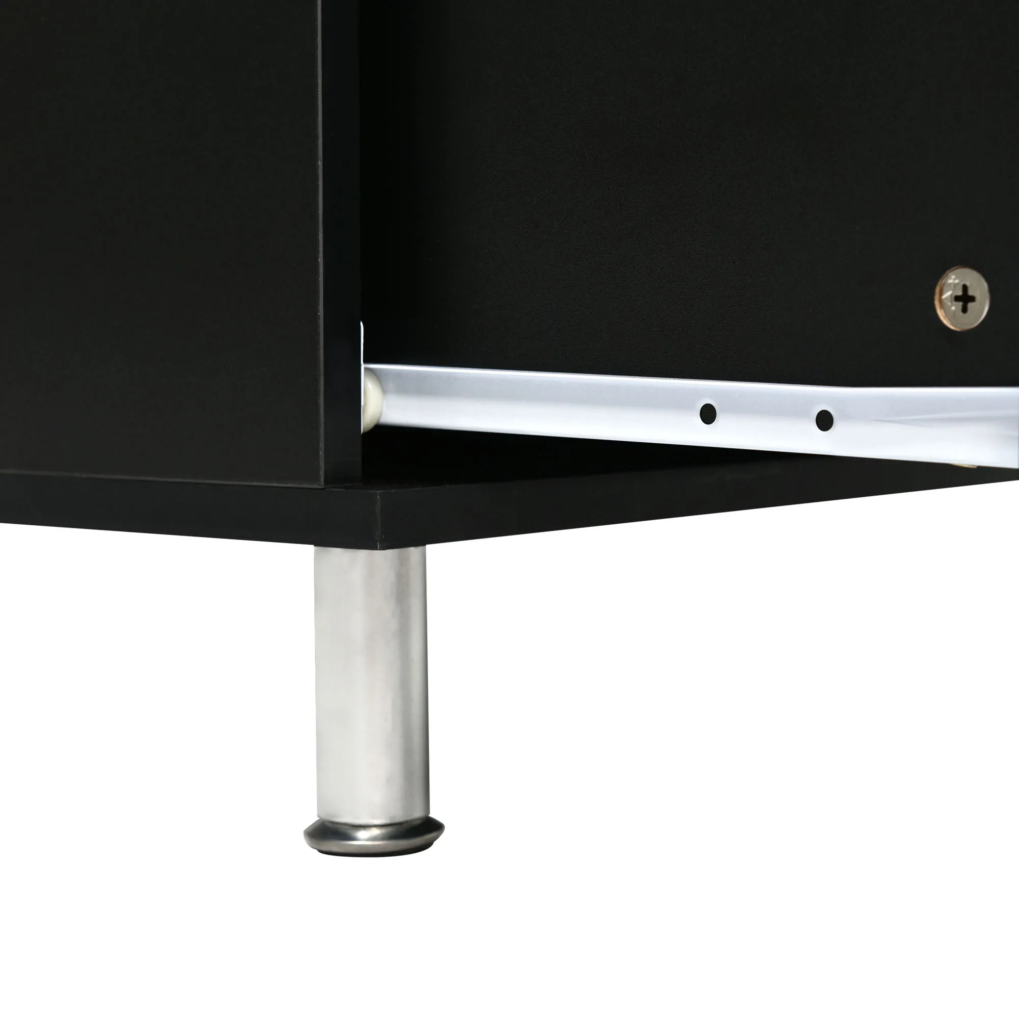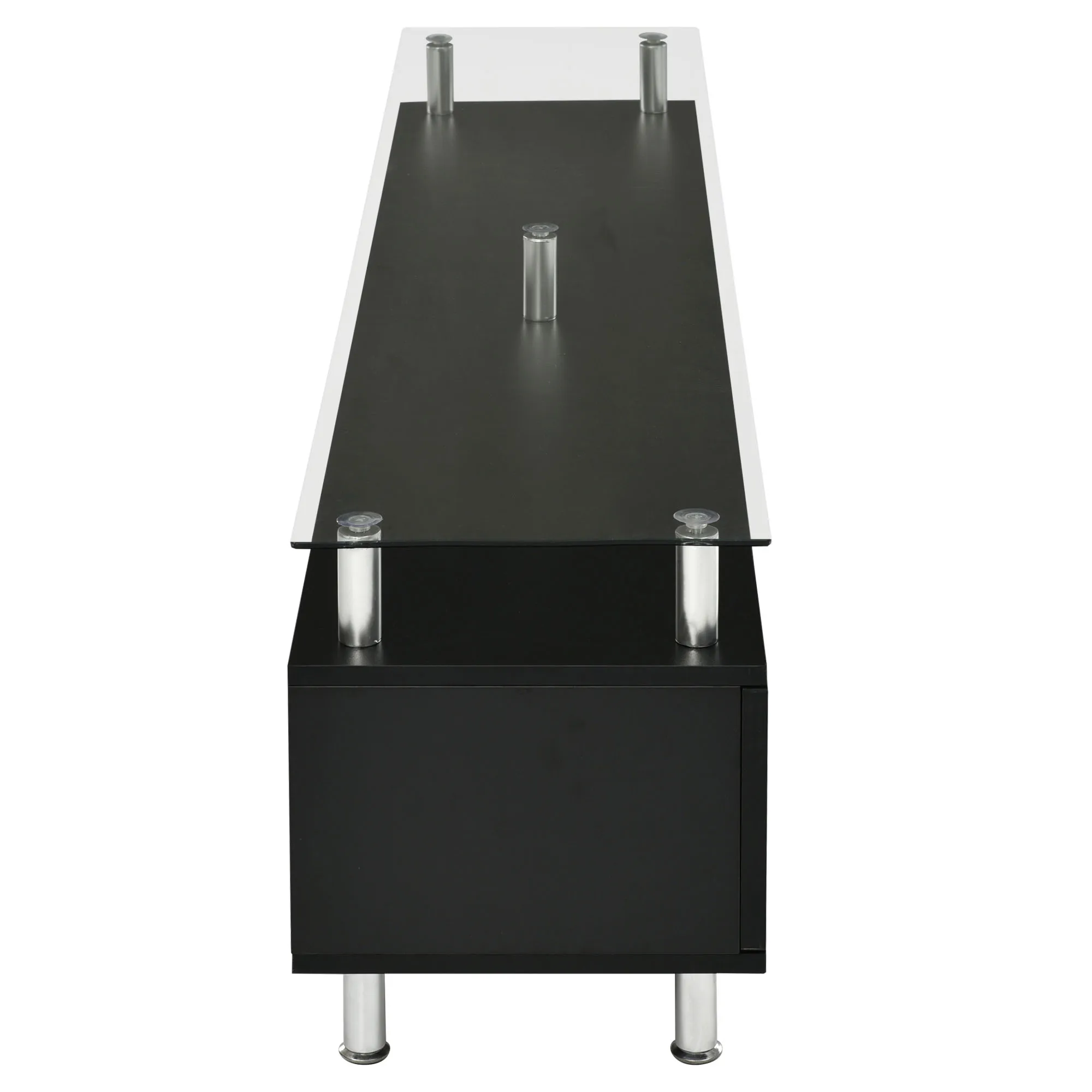 The design of the sliding door panel with tempered glass also adds aesthetics and practicability to the TV stand.