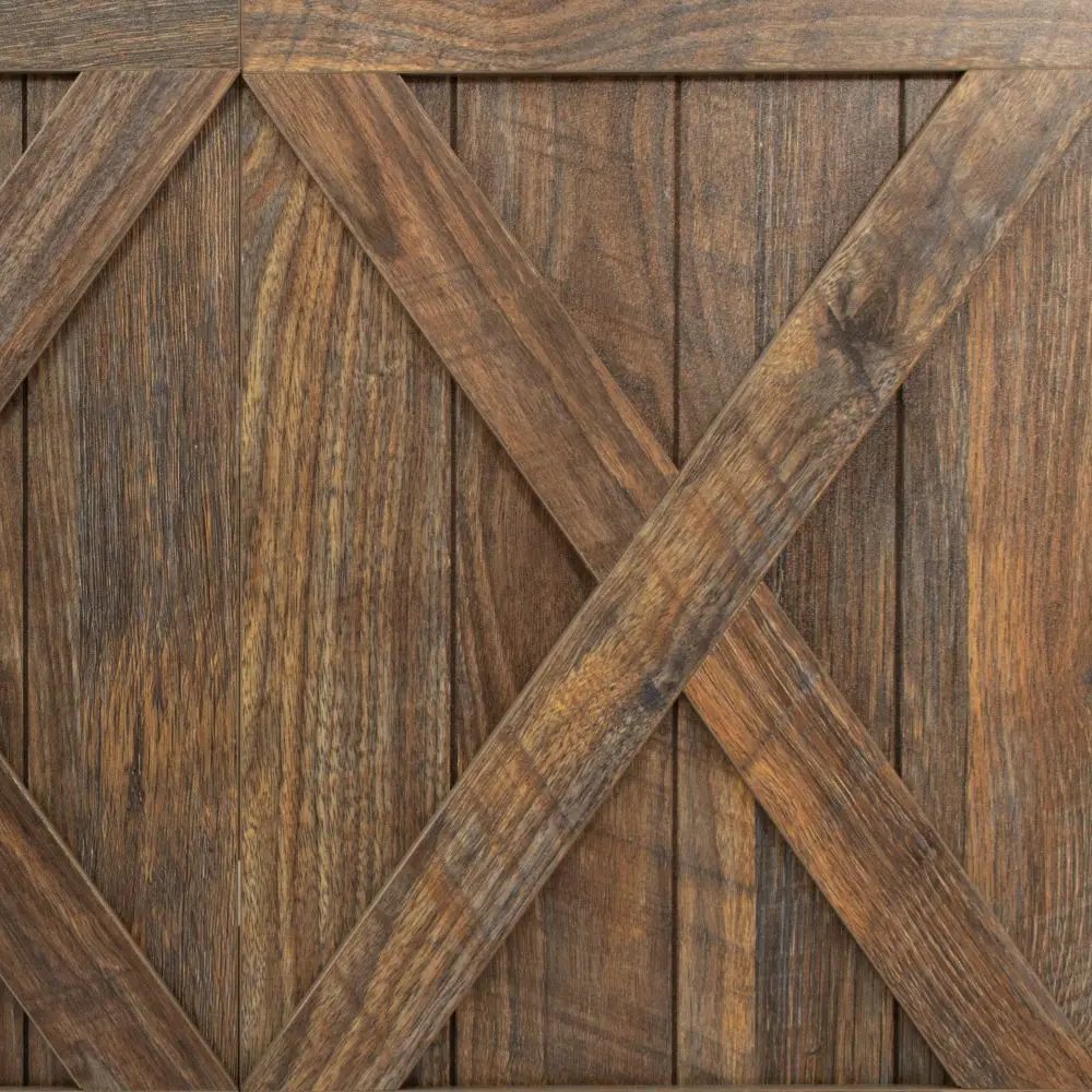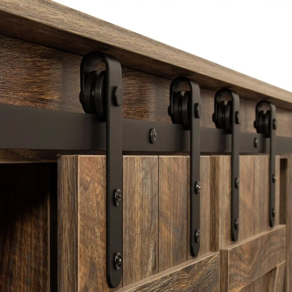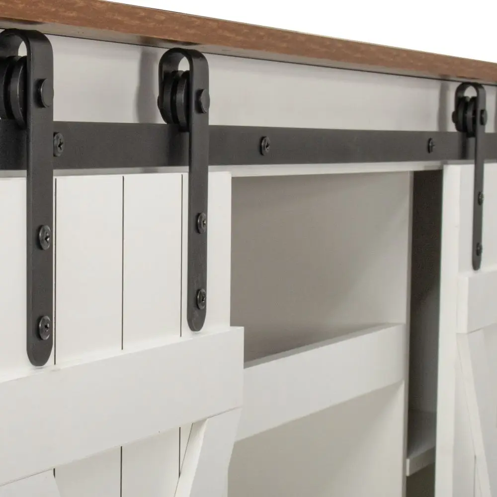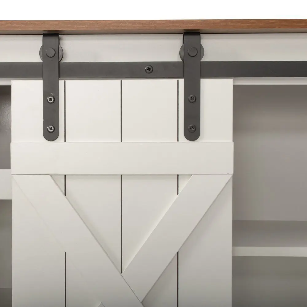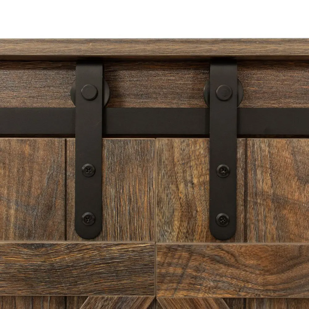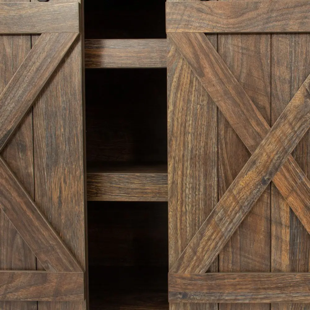 【Great Wood Textured Surface Table】Made from high-grade certified MDF for long-lasting construction. Featuring barn door inspired cabinet fronts for a country feel.