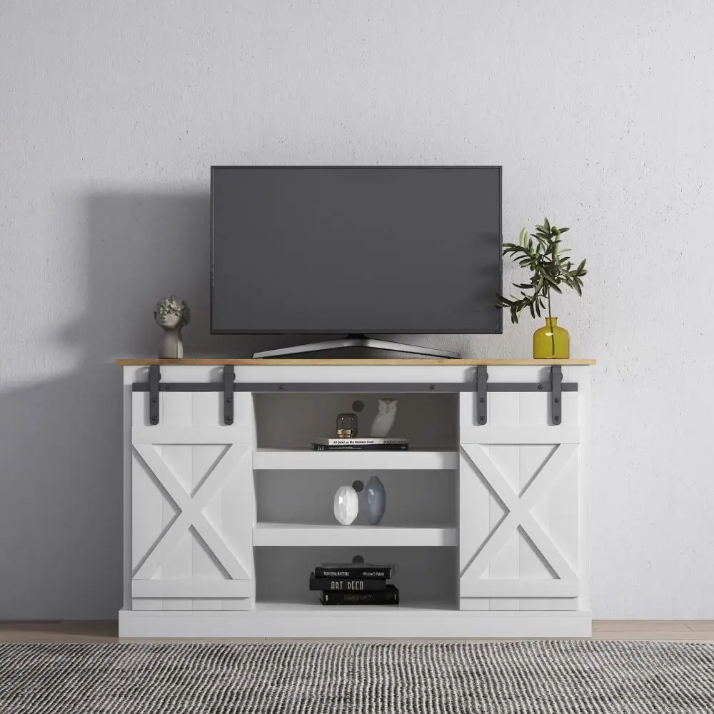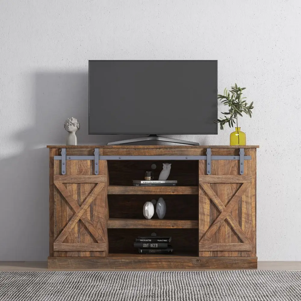 Sliding Barn Door TV Stand for TV up to 65'' Flat Screen Media Console Table Storage Cabinet Wood Entertainment Center Sturdy