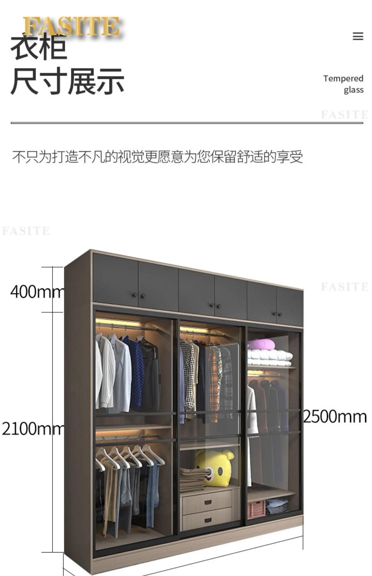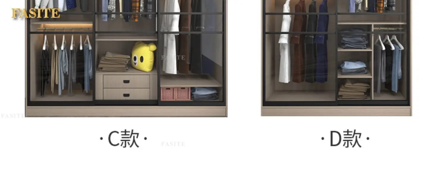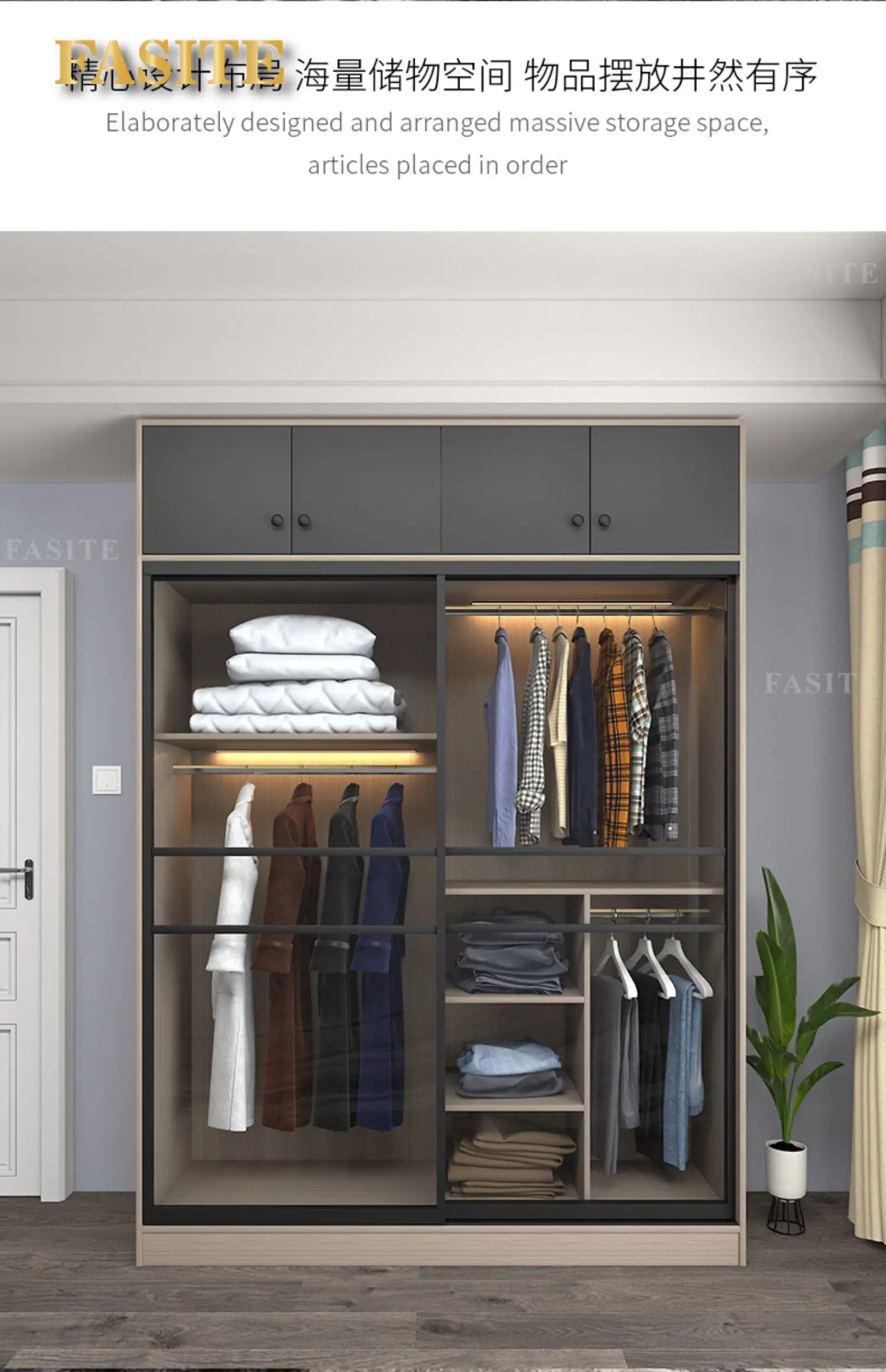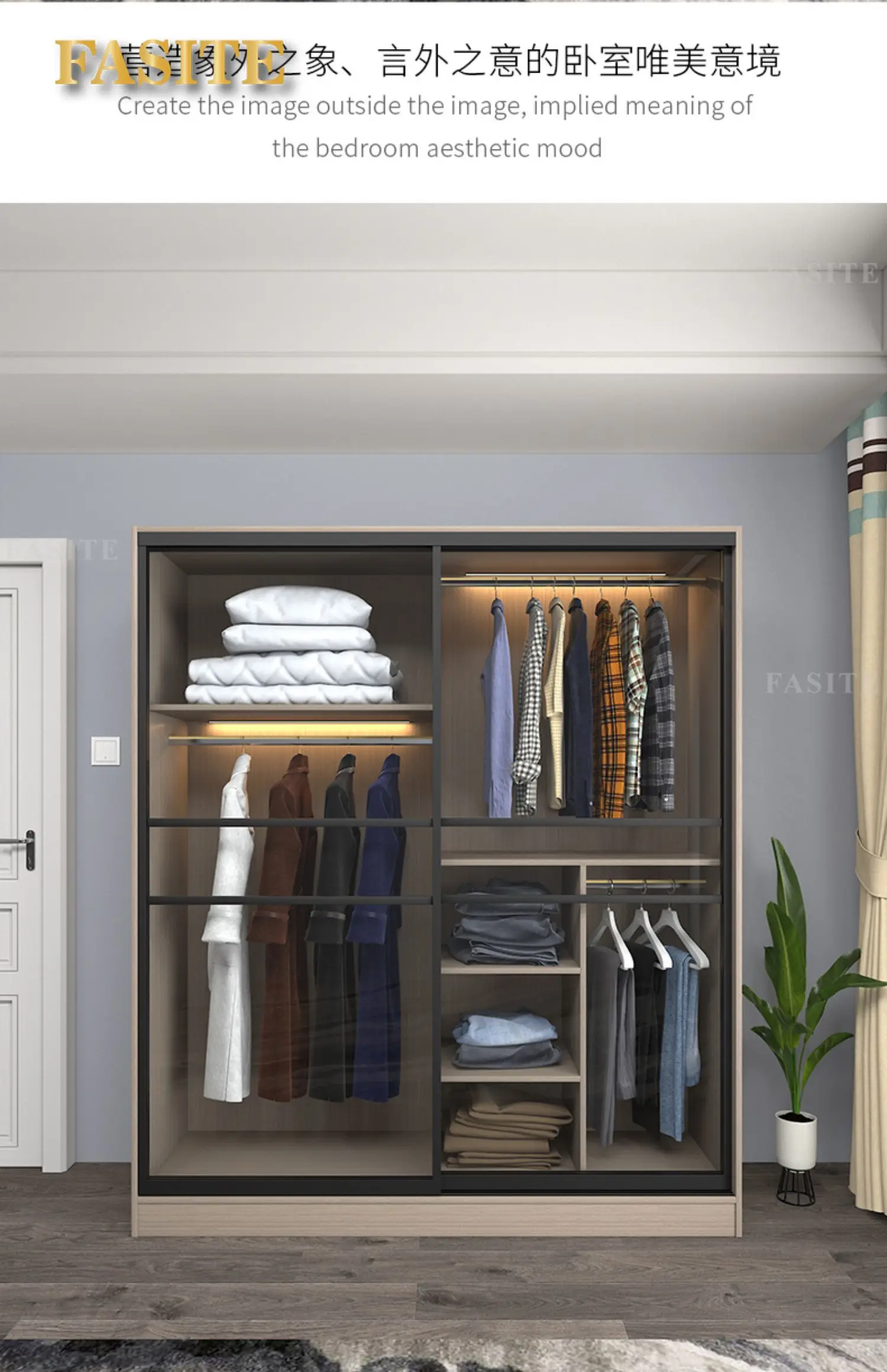 Sliding door modern two-door locker sub-bedroom sliding door multifunctional wardrobe