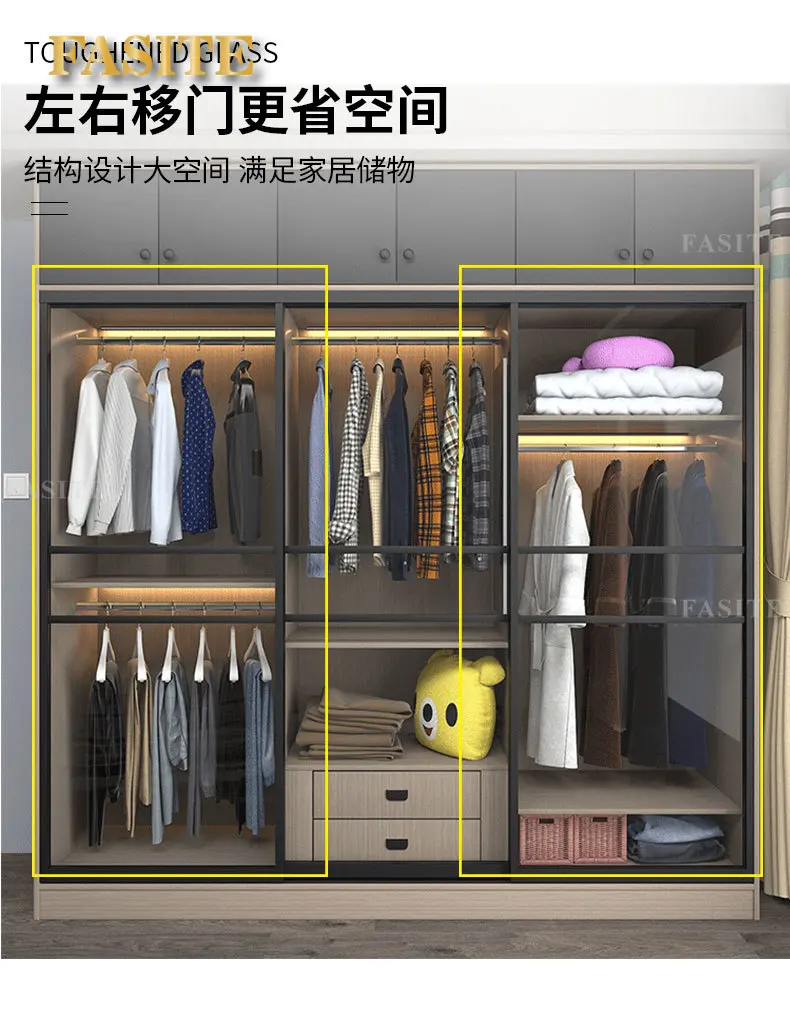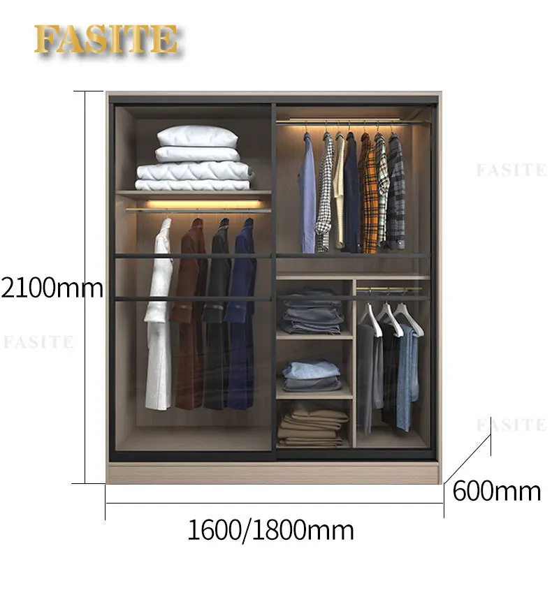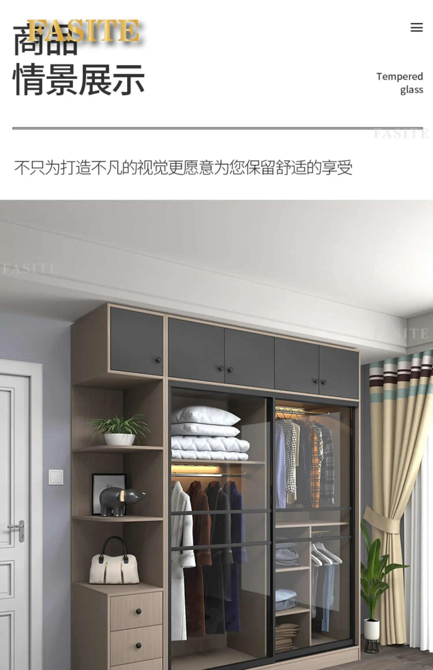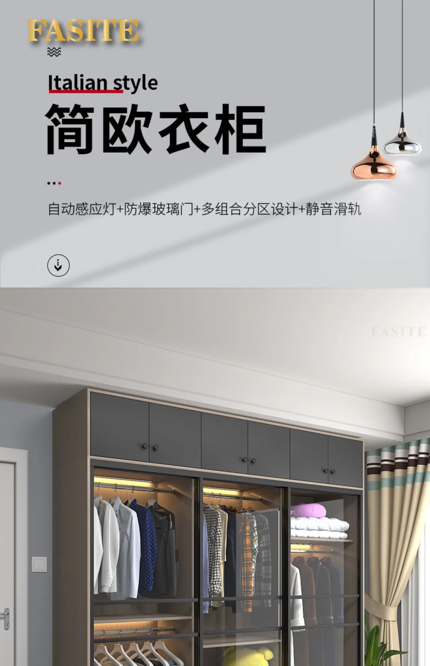 Sliding door modern two-door locker sub-bedroom sliding door multifunctional wardrobe