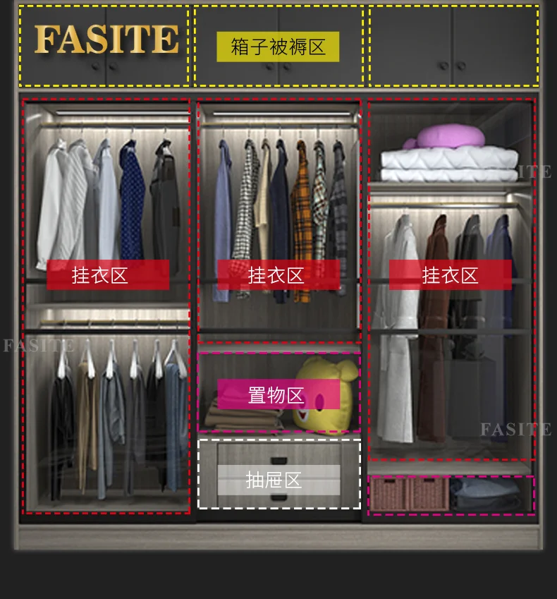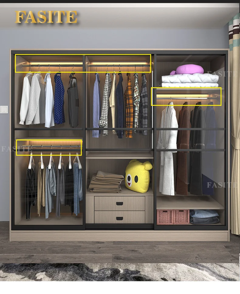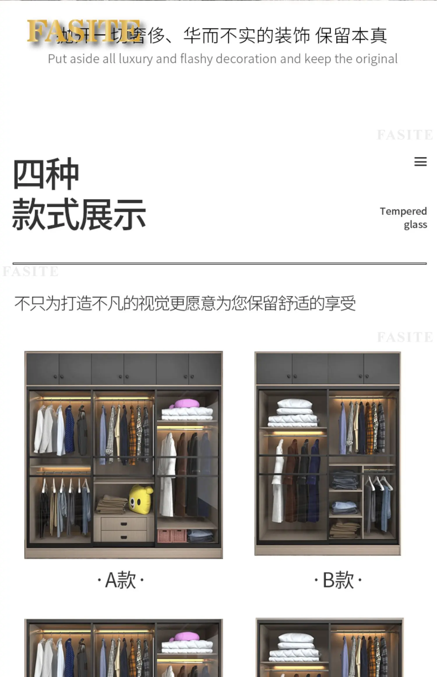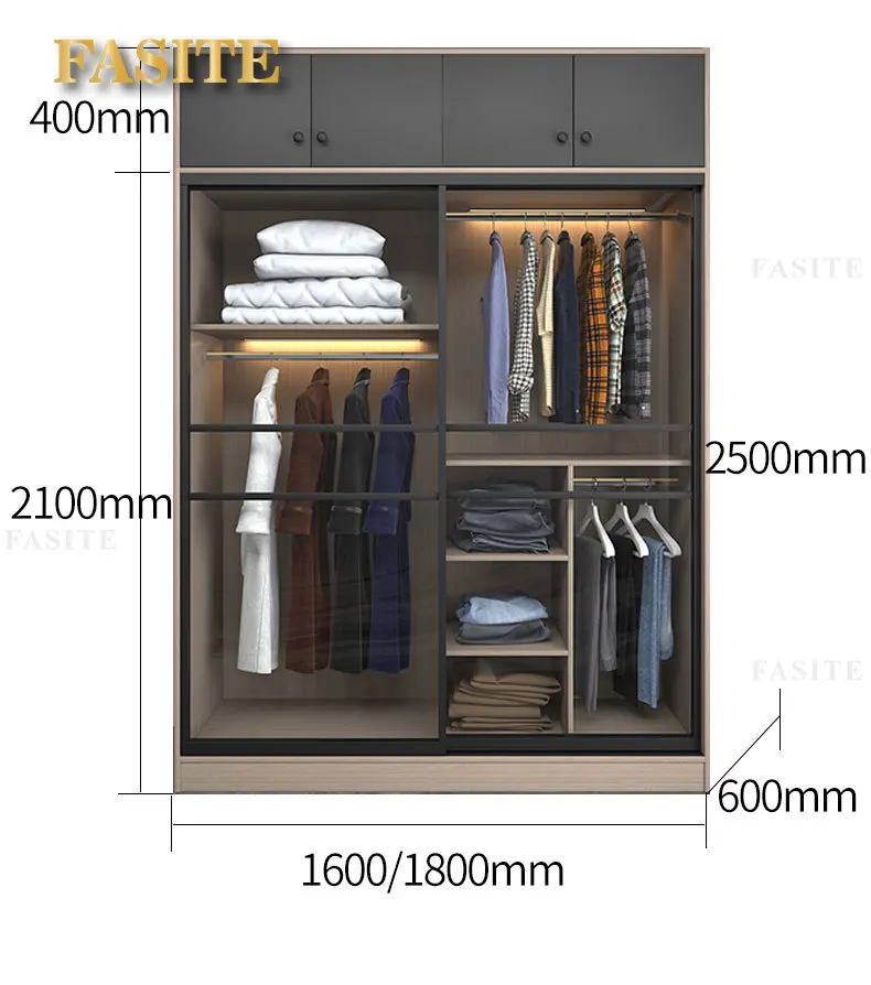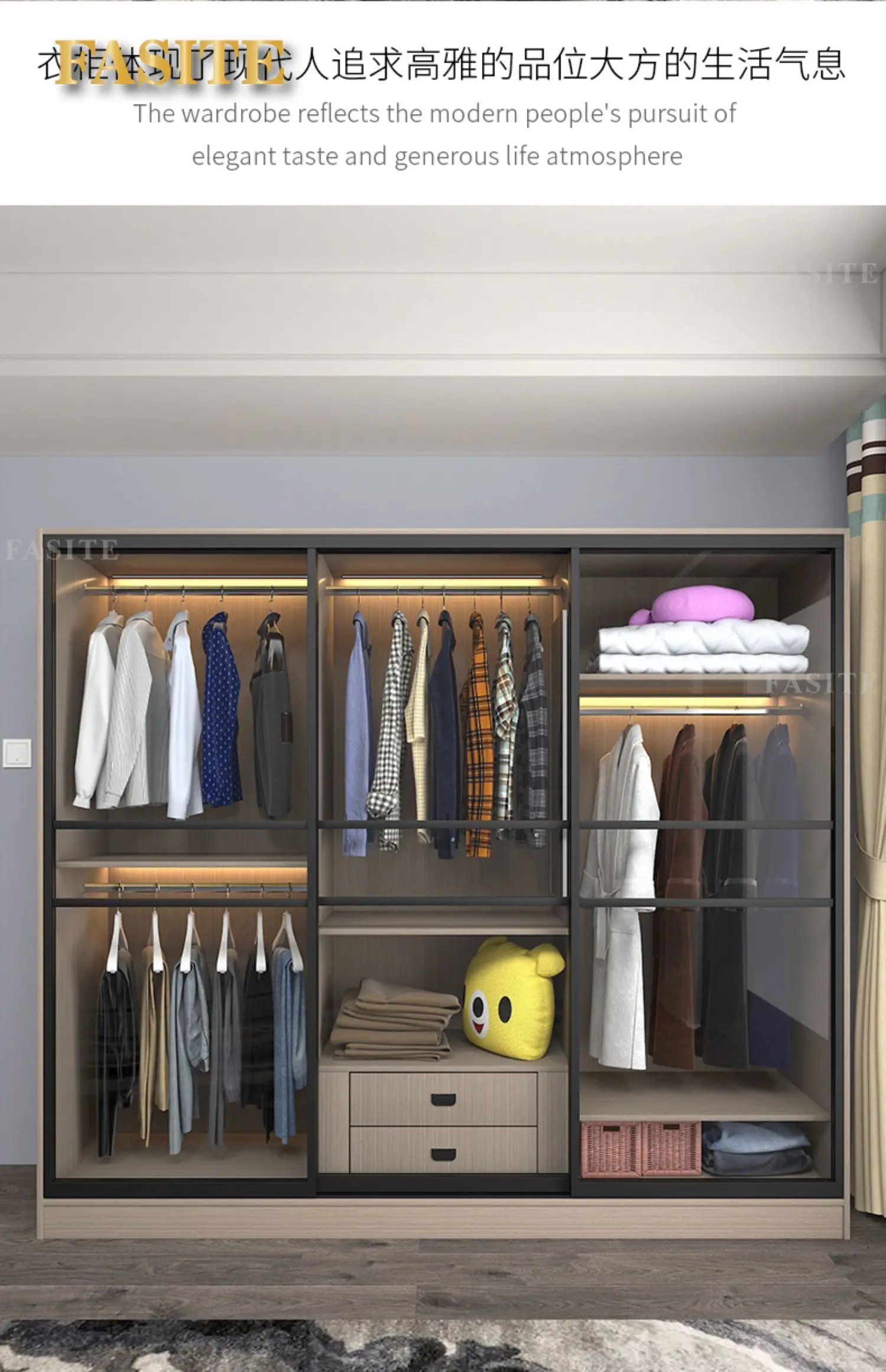 Sliding door modern two-door locker sub-bedroom sliding door multifunctional wardrobe