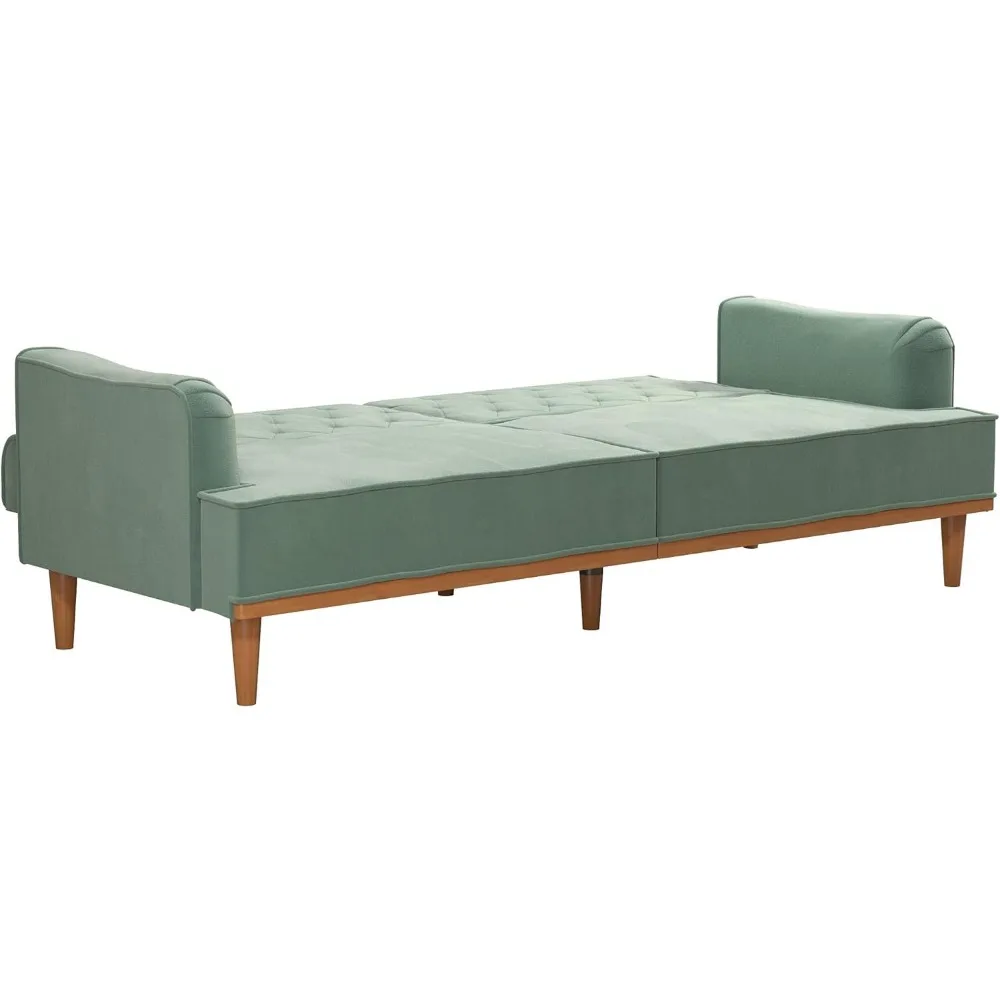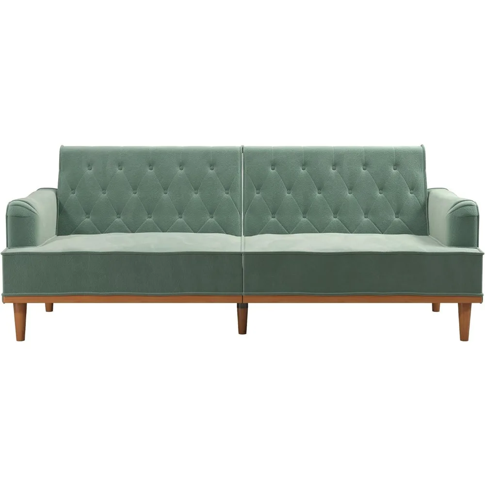 Sofa Bed Multi-functional Split Design, Cyan Velvet, Suitable for Small Spaces, Retro Convertible Sofa Bed Futon