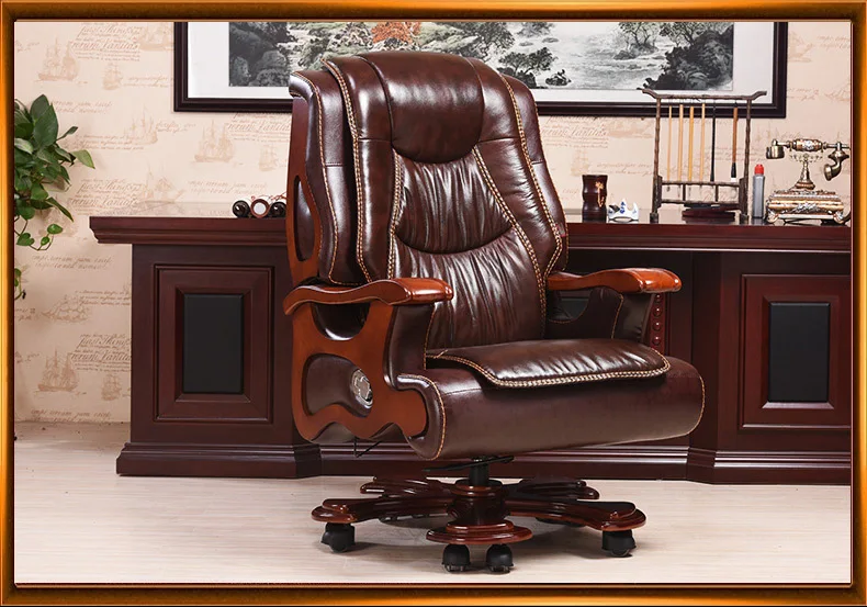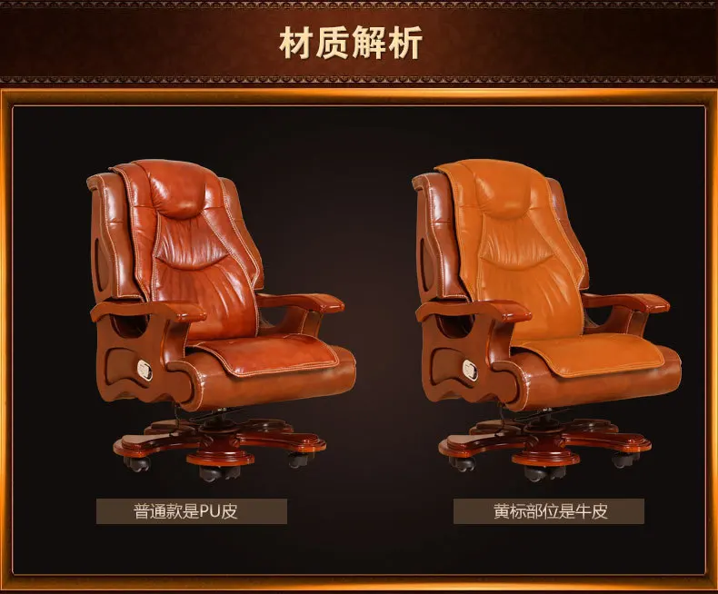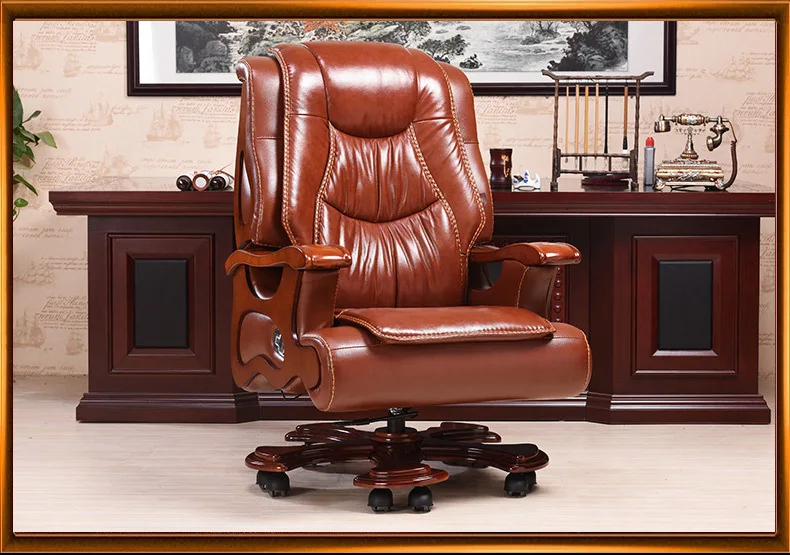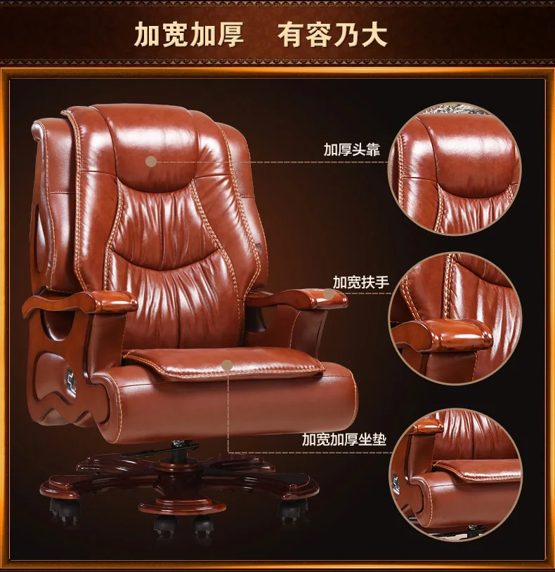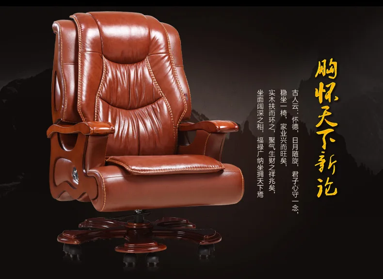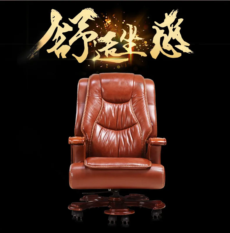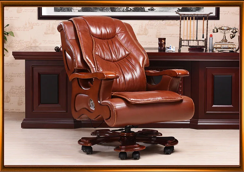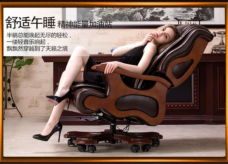 Solid wood boss chair. Leather of large chair lift massage can lie cowhide computer chair