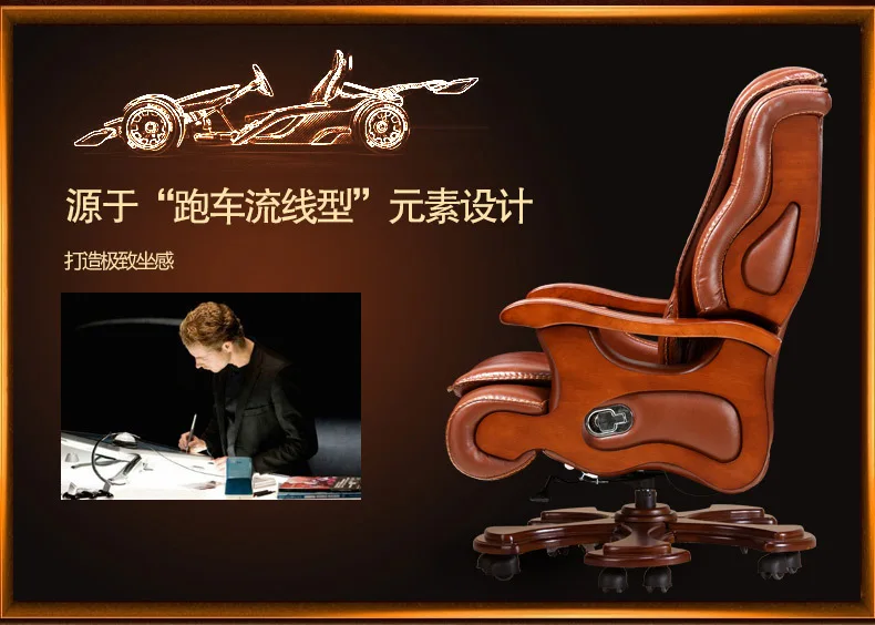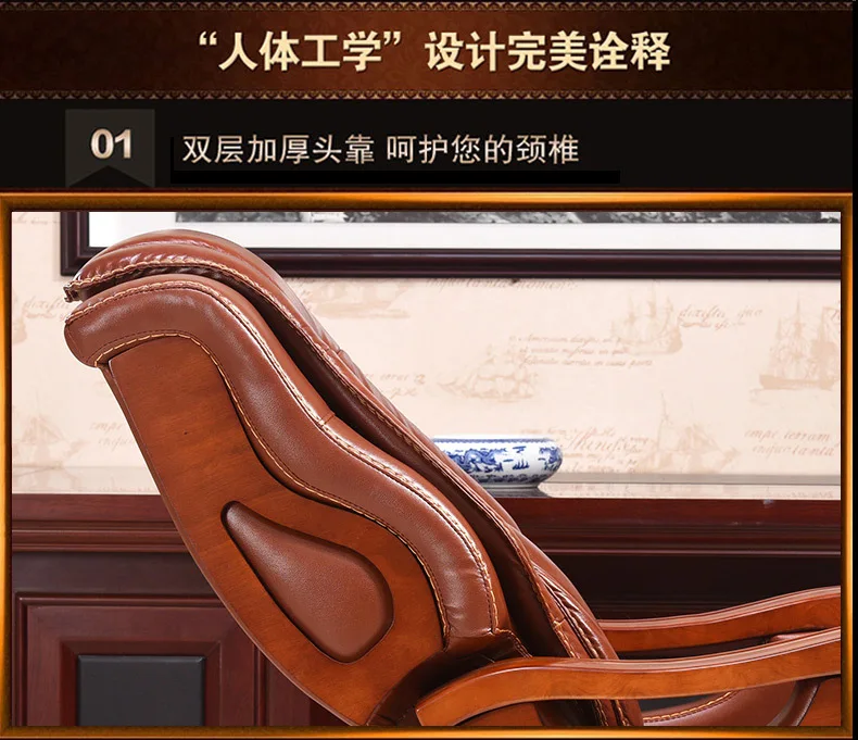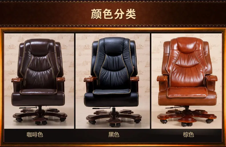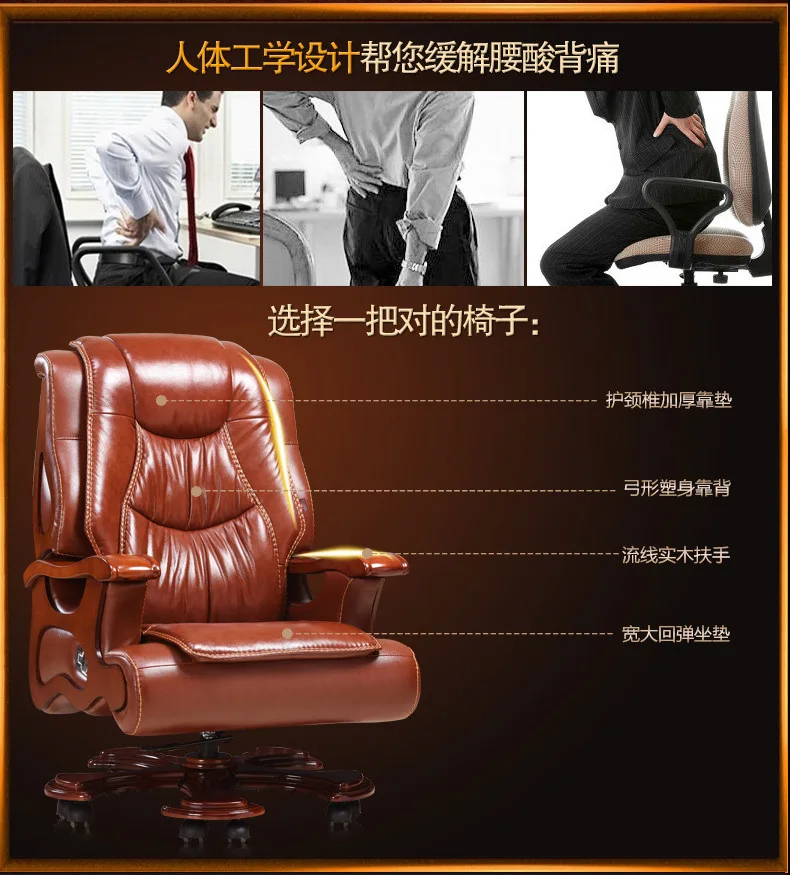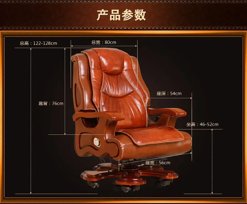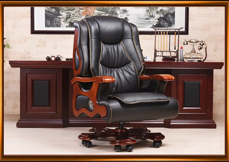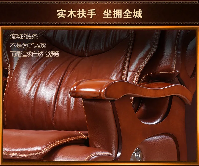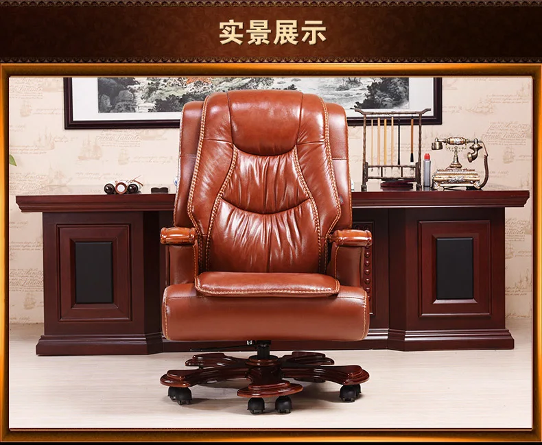 Solid wood boss chair. Leather of large chair lift massage can lie cowhide computer chair