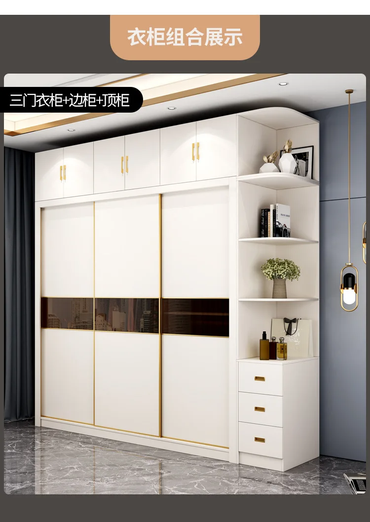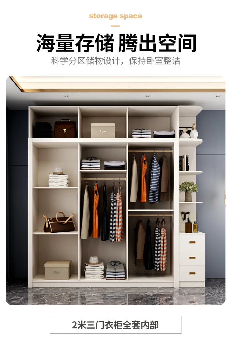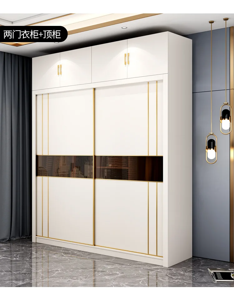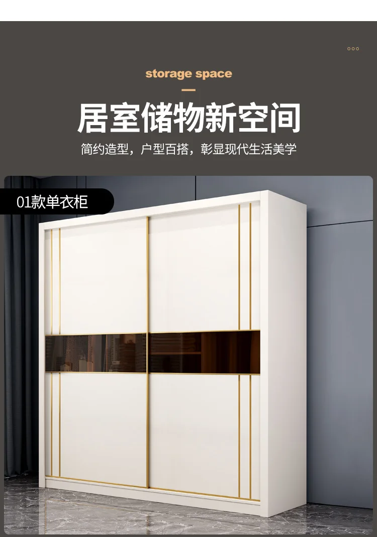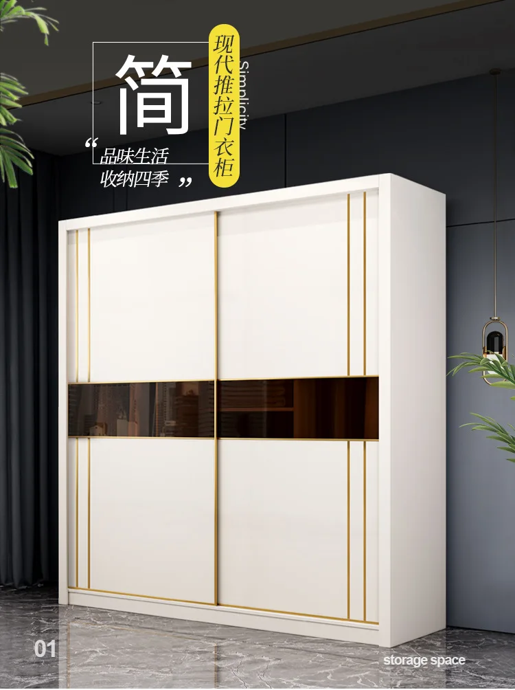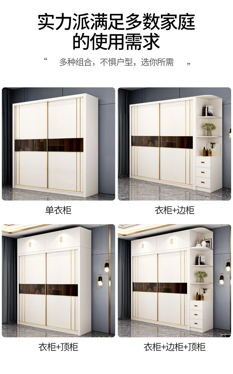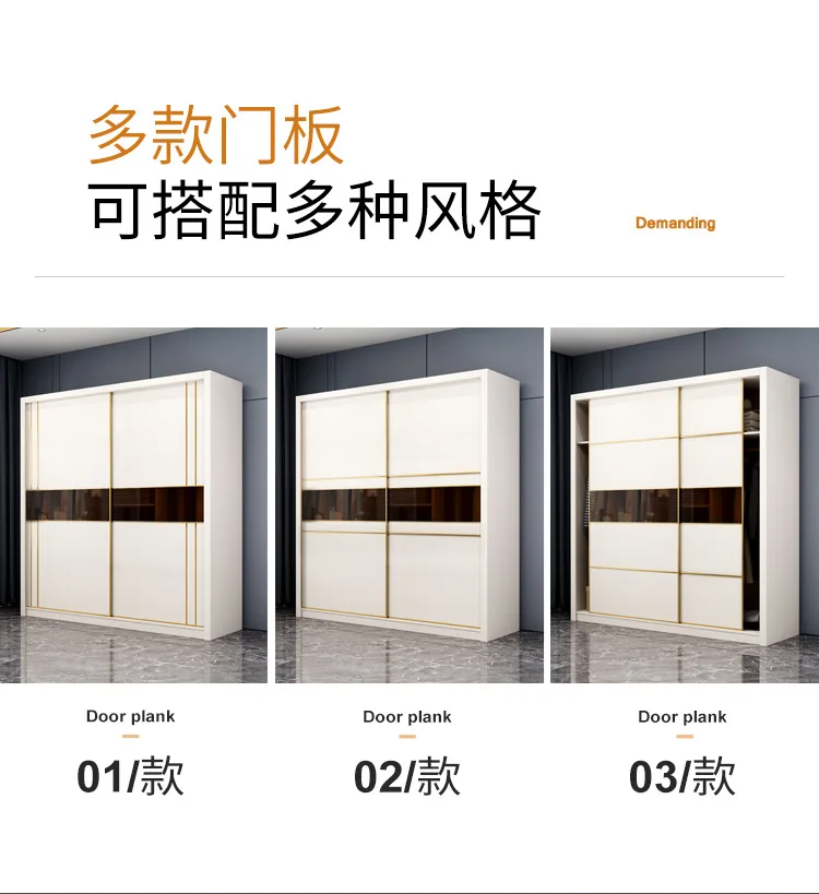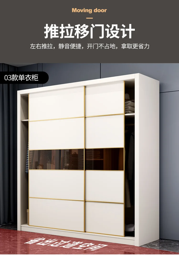 Solid wood laminate economical wardrobe sliding door bedroom household modern simple wardrobe rental room large cabinet