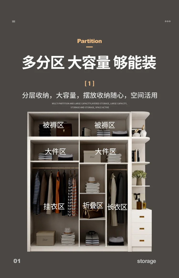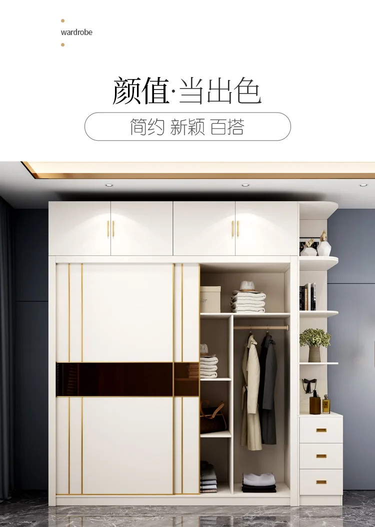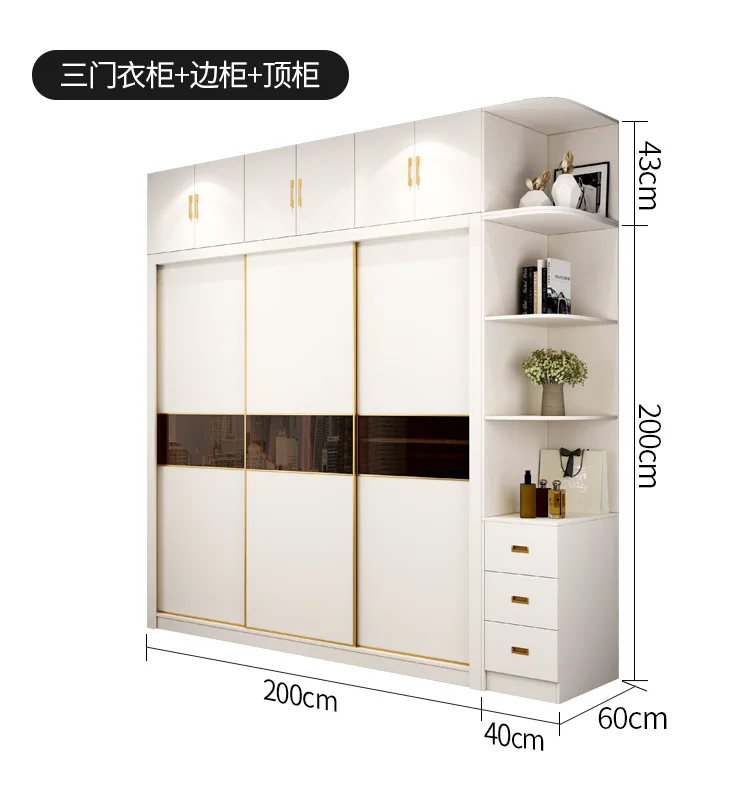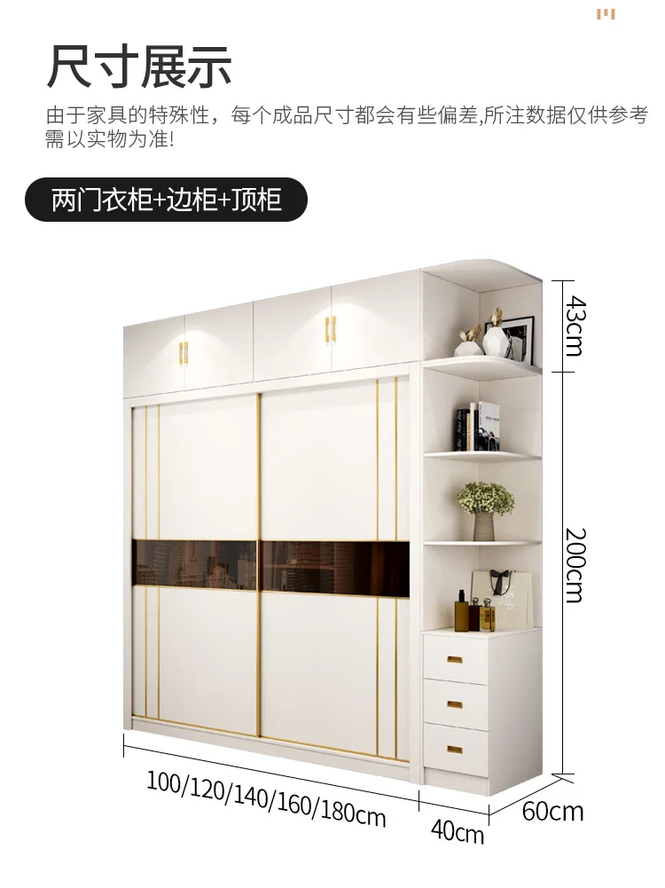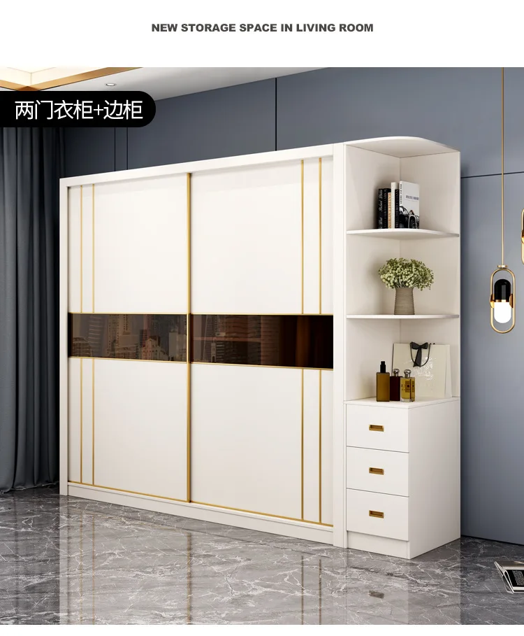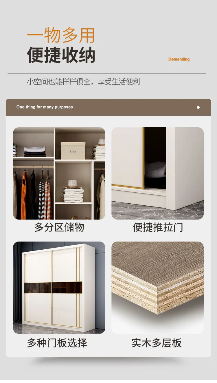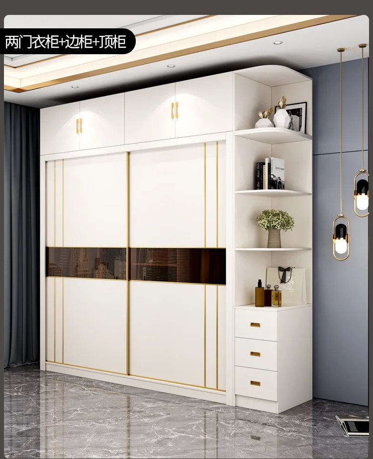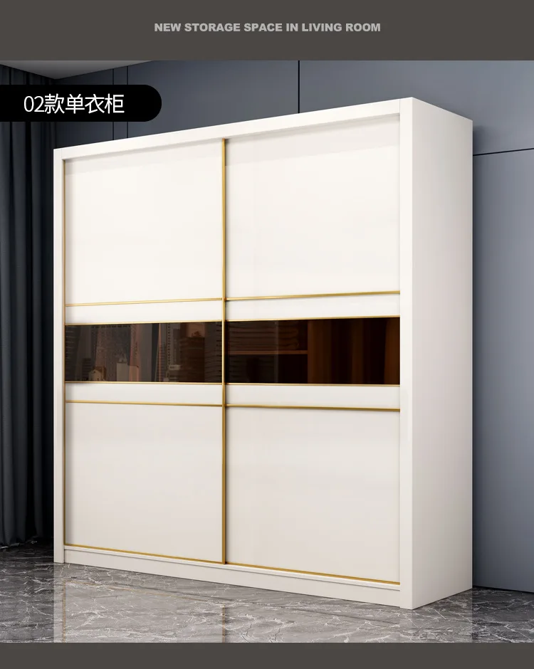 Solid wood laminate economical wardrobe sliding door bedroom household modern simple wardrobe rental room large cabinet