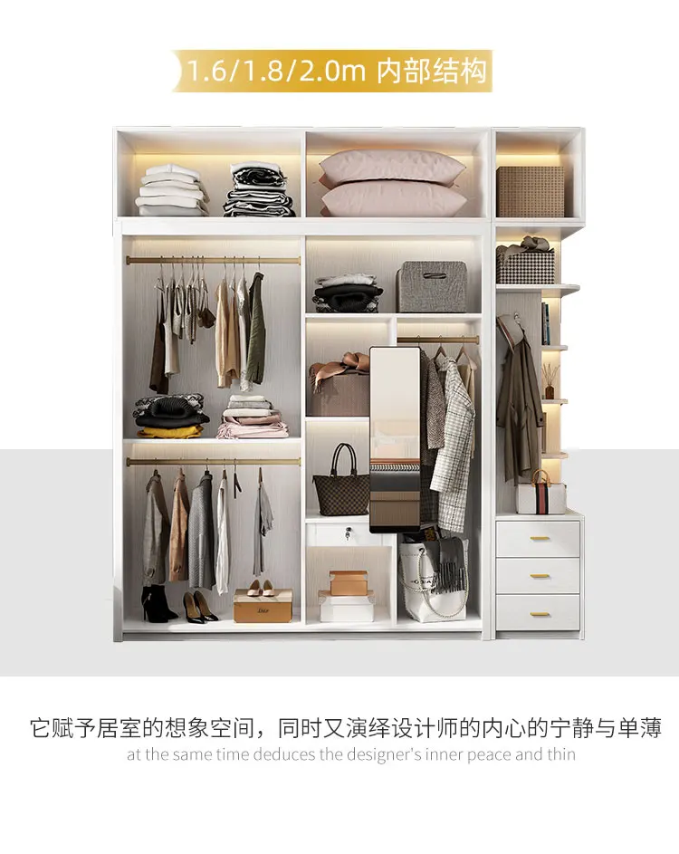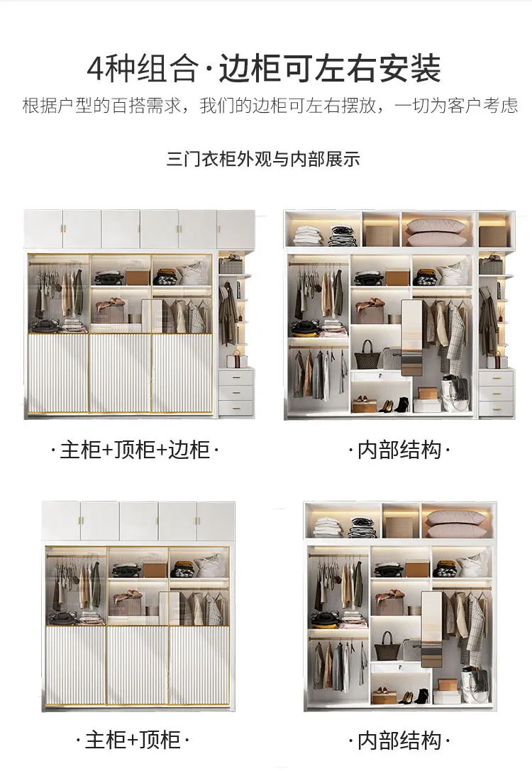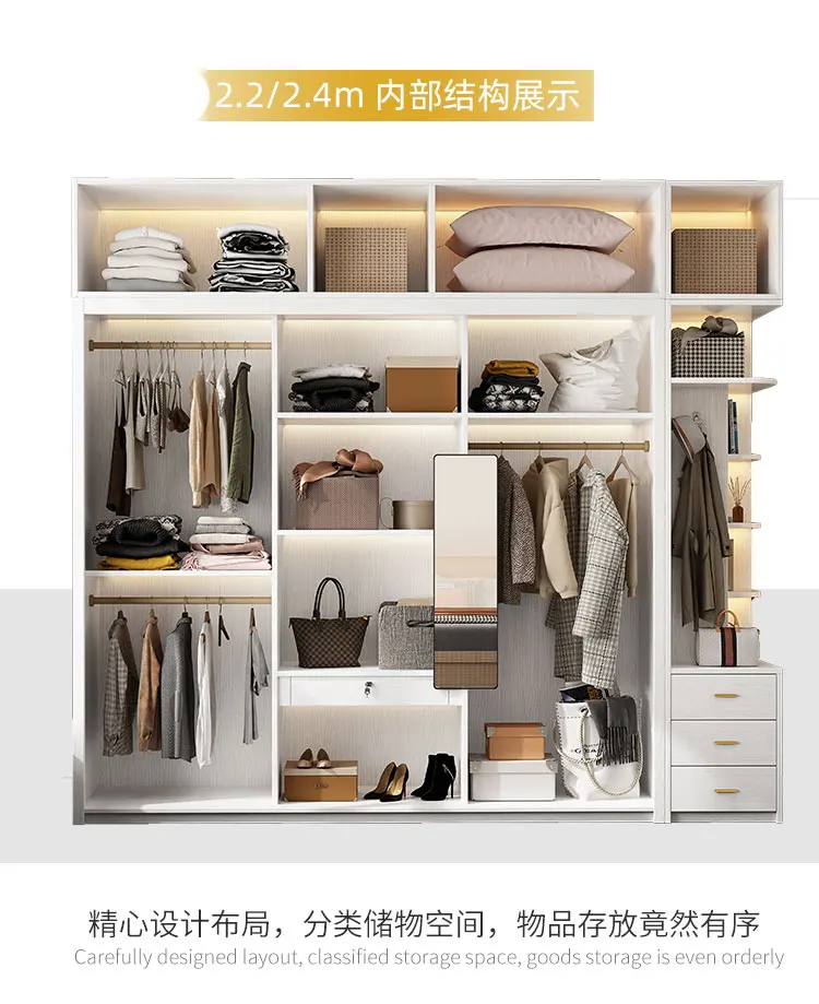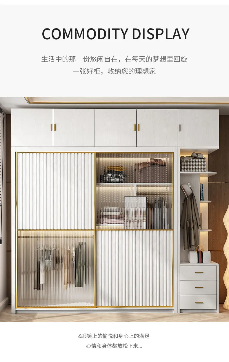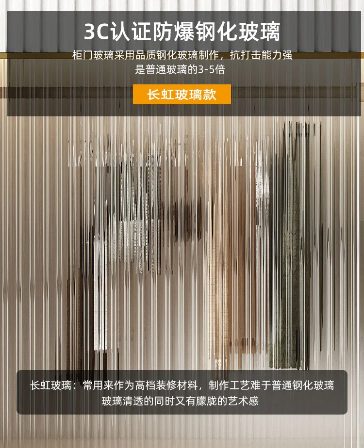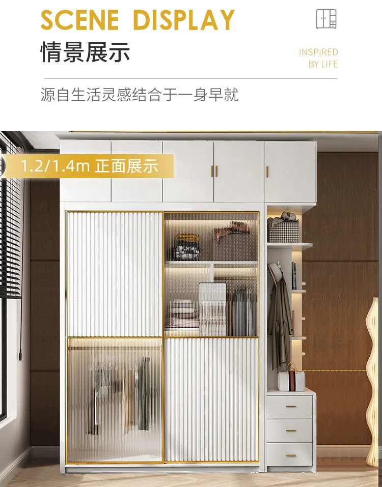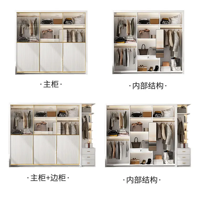 Solid wood multi-layer board, long rainbow glass sliding door, sliding wardrobe, simple modern household bedroom, large cabinet