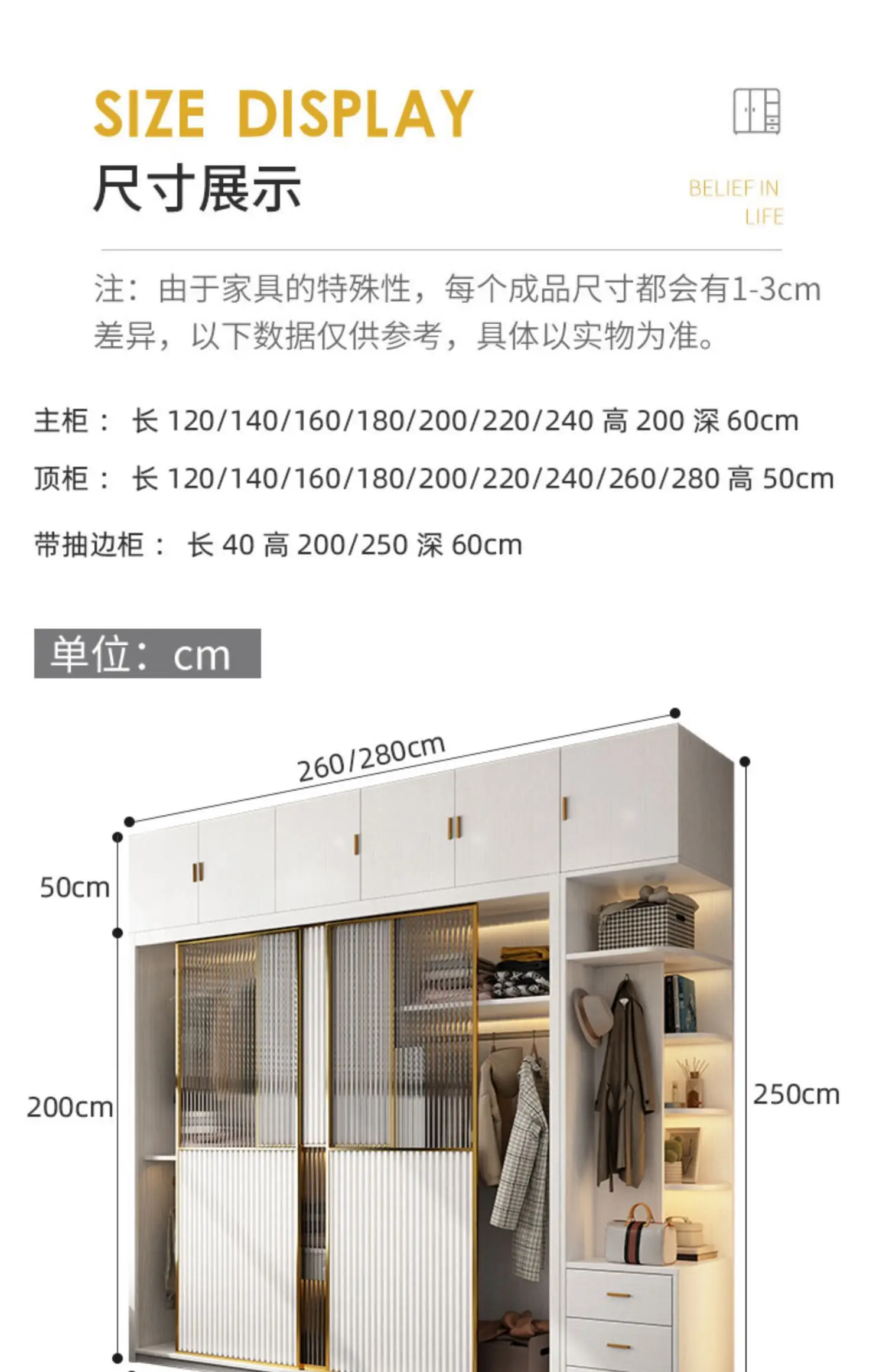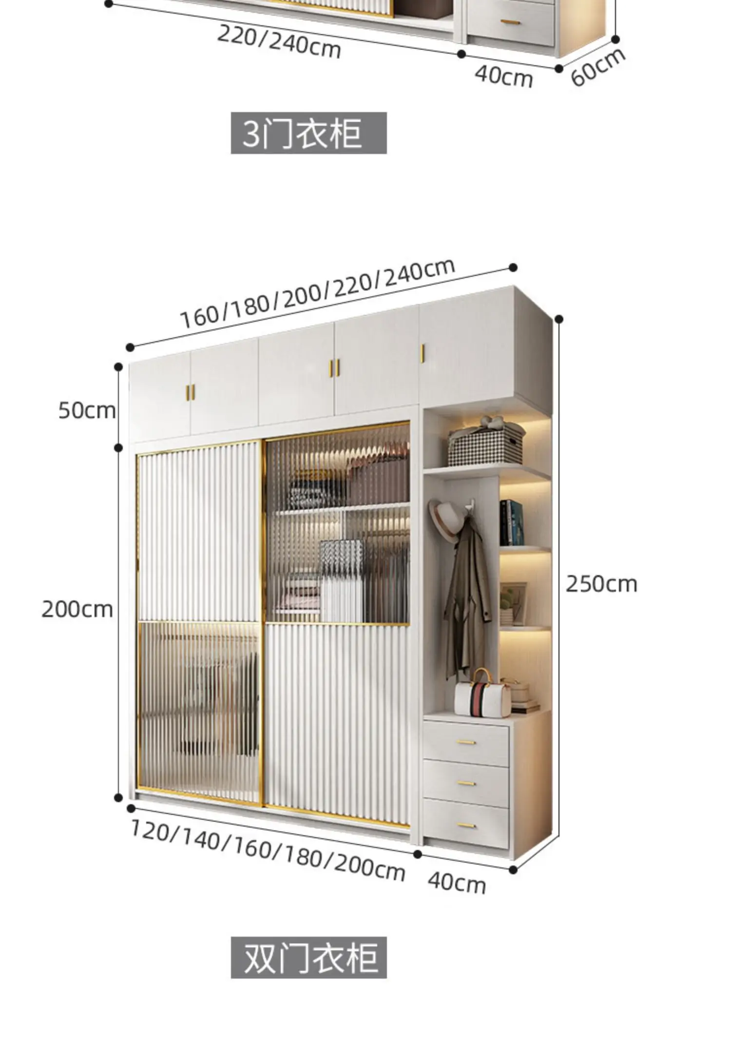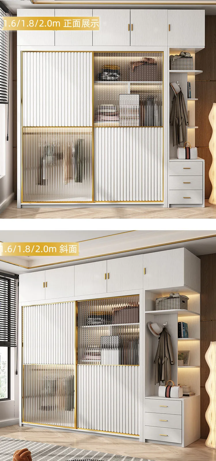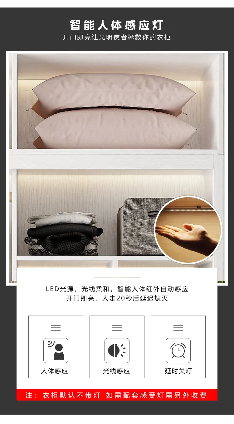 Solid wood multi-layer board, long rainbow glass sliding door, sliding wardrobe, simple modern household bedroom, large cabinet