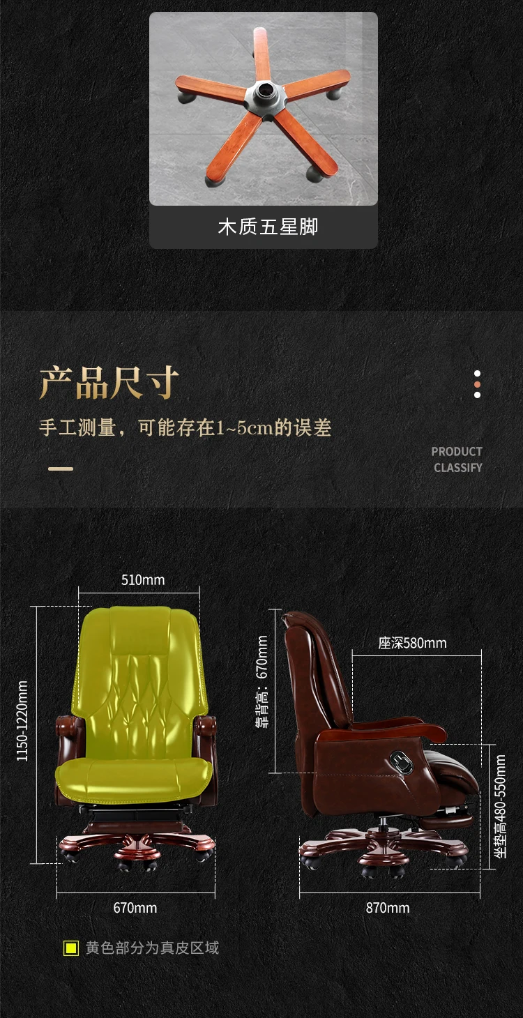 Solid Wood Office Chair Organizer Elastic Leather Adjustable Executive Roller Office Chair Swivel Luxury Chaises Furniture