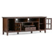 Now that 80 inch flat screen TVs are more affordable, you need to have one. To enjoy it fully, you will also need the perfect TV Stand to position your TV just right. Look no further. The Artisan Extra Wide TV Stand is perfectly sized for TVs up to 80 inches. It has plenty of storage space for all your media and gaming devices. It has a large centrally located open area with two drawers as well as two enclosed spaces. The two large side storage cabinets open to one adjustable shelf each. The unit features cord management cut-outs for easy installation of TV and media components. Easy installation of TV and media components. Style includes clean angle edged table top with distinctive contemporary look, mullion framed tempered glass doors, square and slightly tapered legs and rectangular decorative Antique Bronze knobs. Efforts are made to reproduce accurate colors, variations in color may occur due to computer monitor and photography. At Simpli Home we believe in creating excellent, high quality products made from the finest materials at an affordable price.