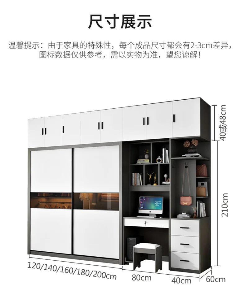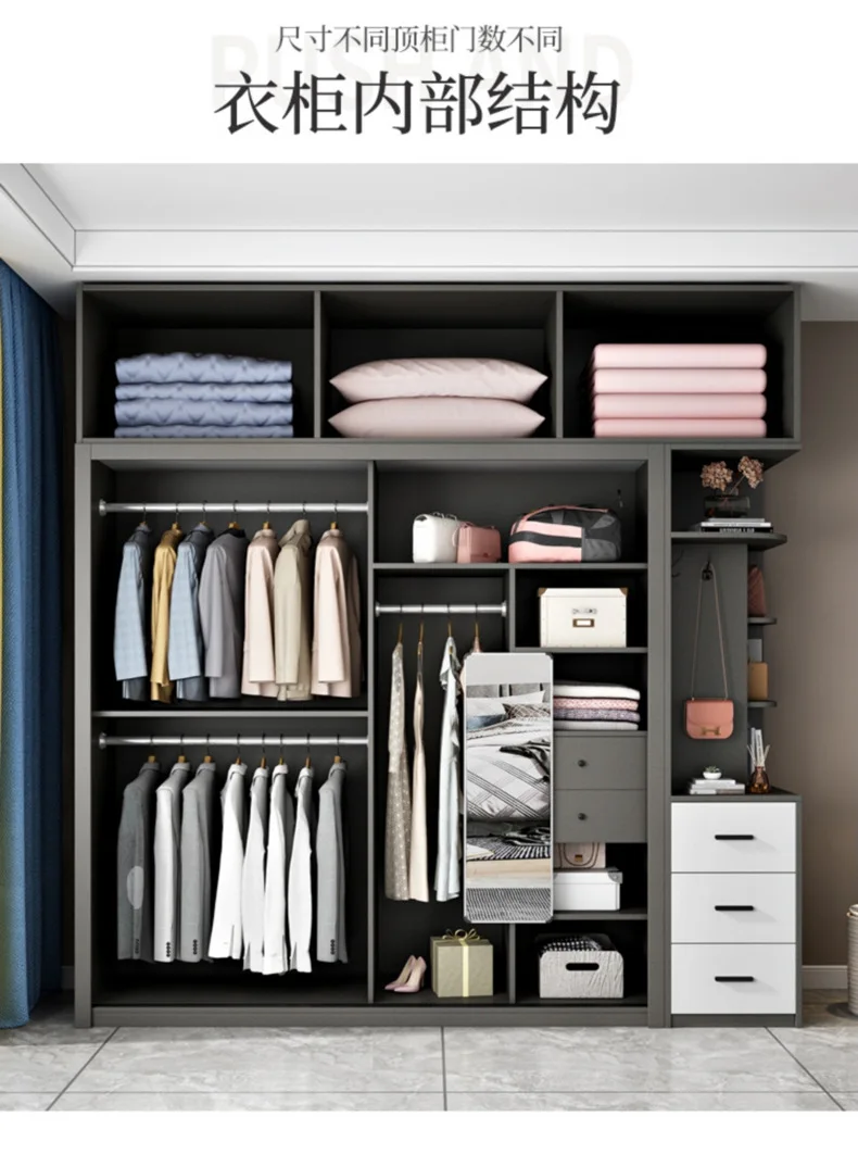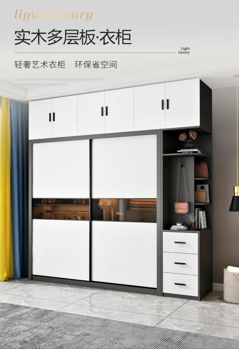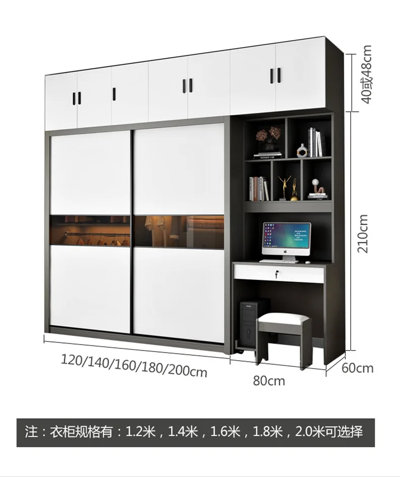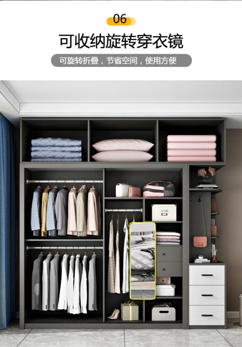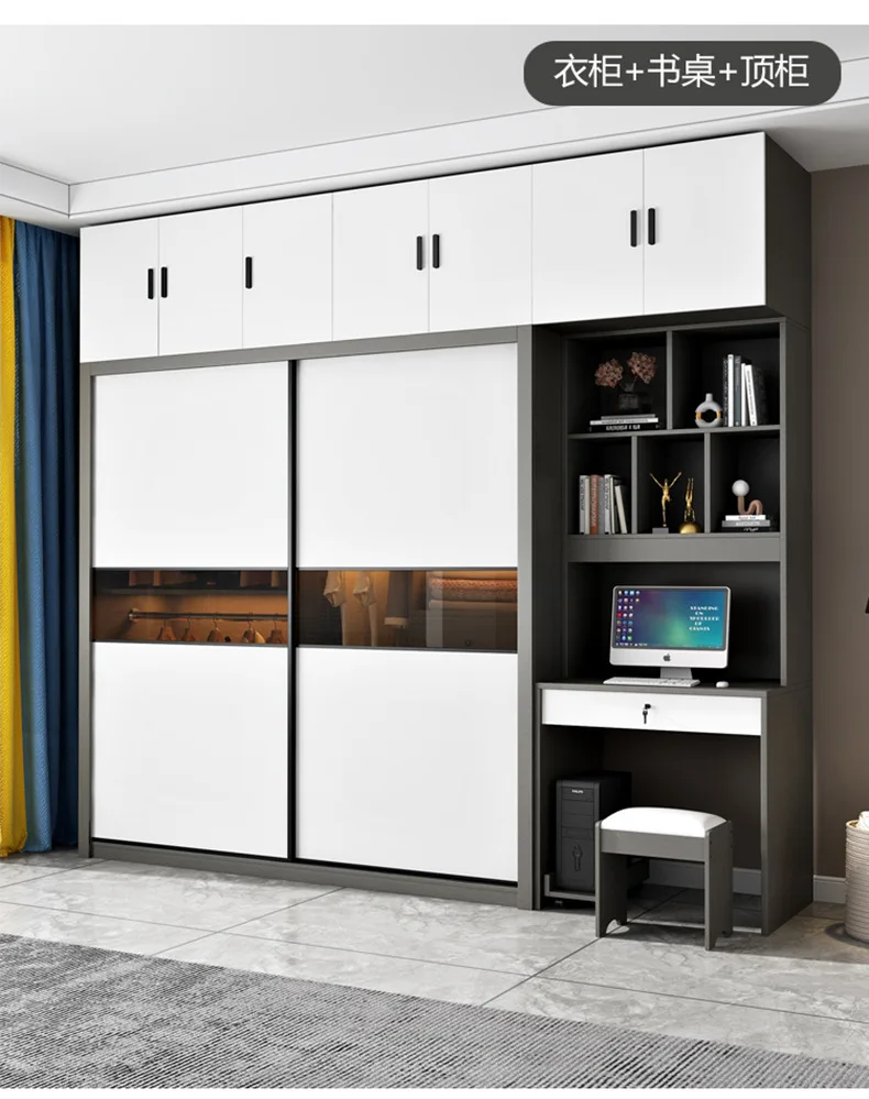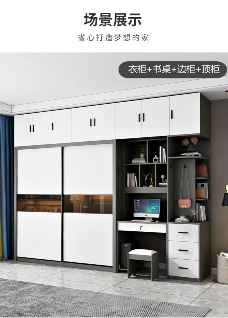 Solid Wood Wardrob 2023 New Modern Simple Closet Desk Combination Bedroom Cabinet Home Furniture