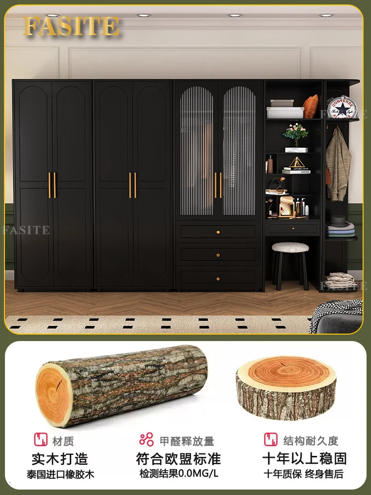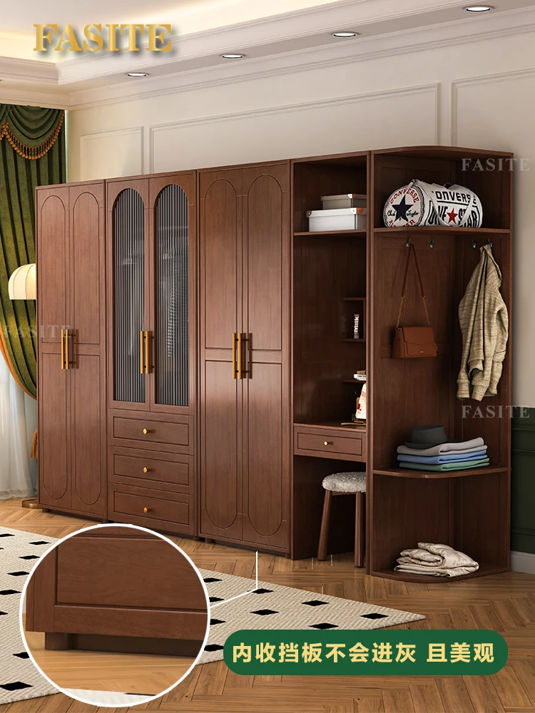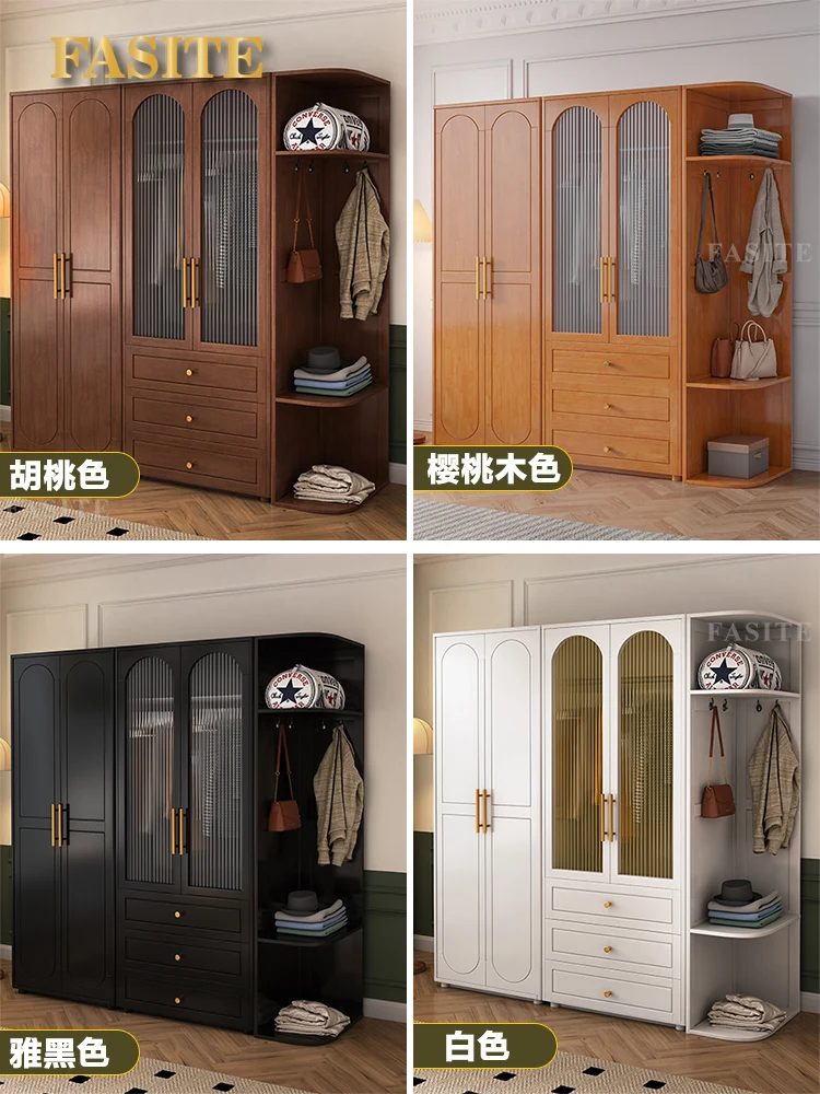 Solid wood wardrobe, bedroom, household storage, small wardrobe