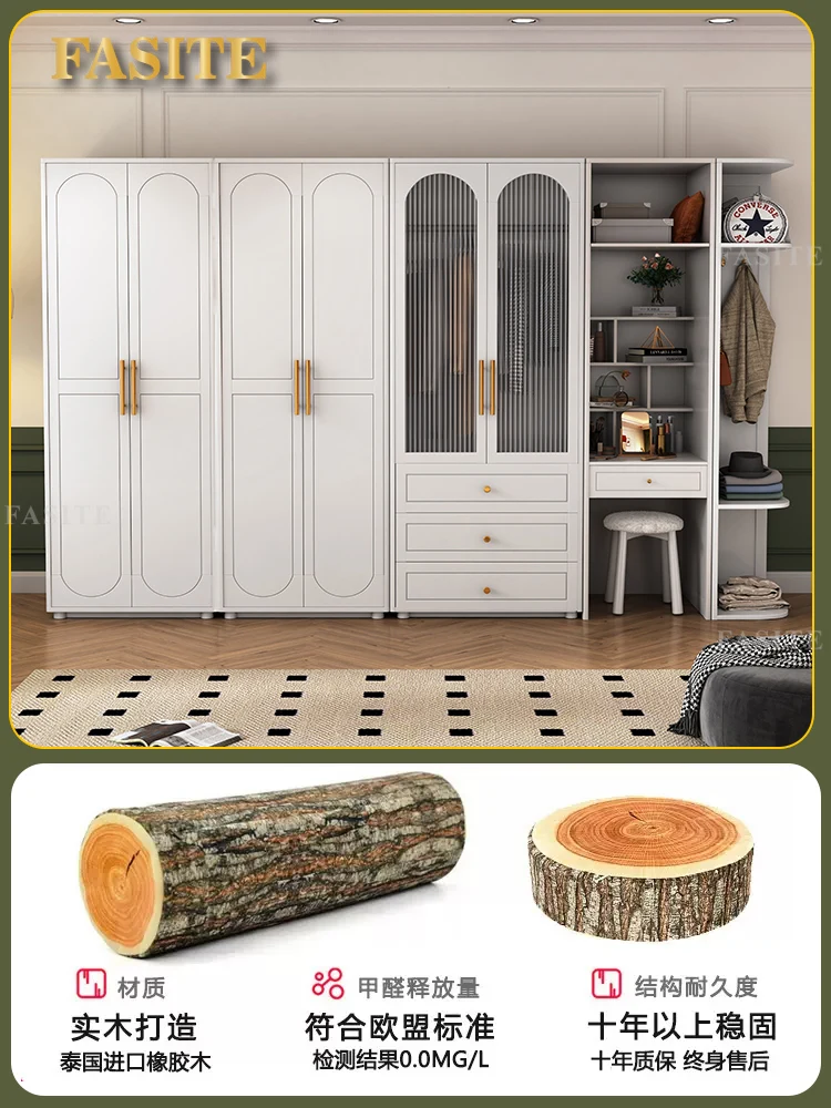 Solid wood wardrobe, home bedroom, white room, storage, large wardrobe