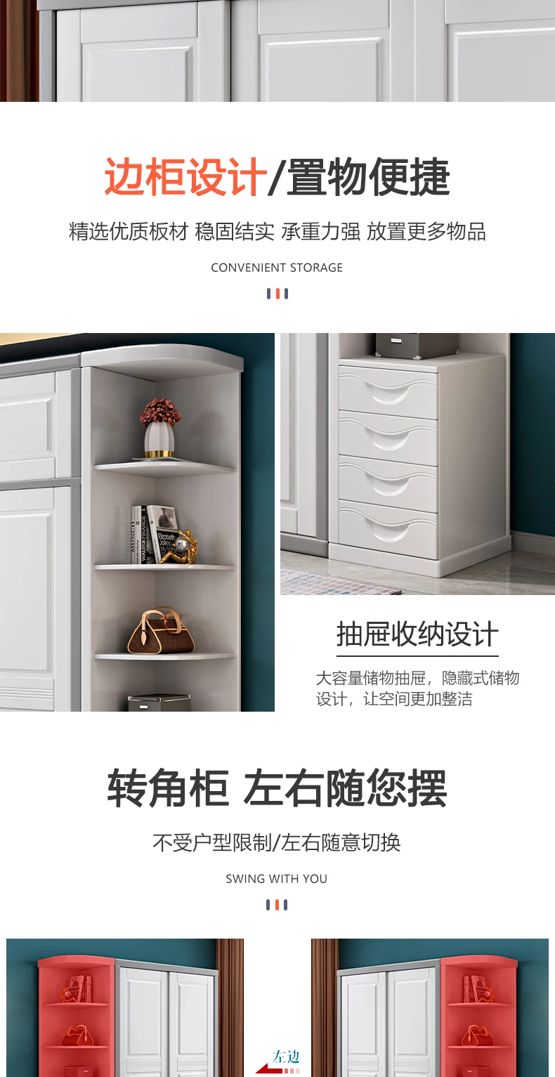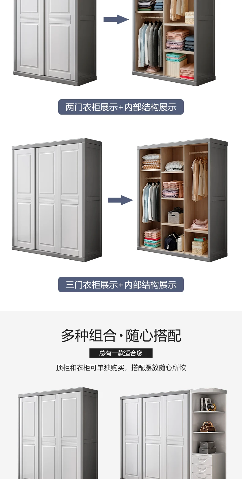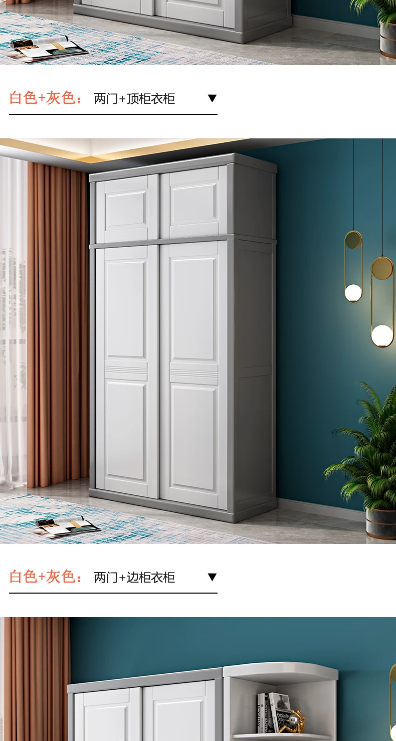 Solid wood wardrobe sliding door household bedroom modern simple 2 doors 3 sliding doors white log storage cabinet