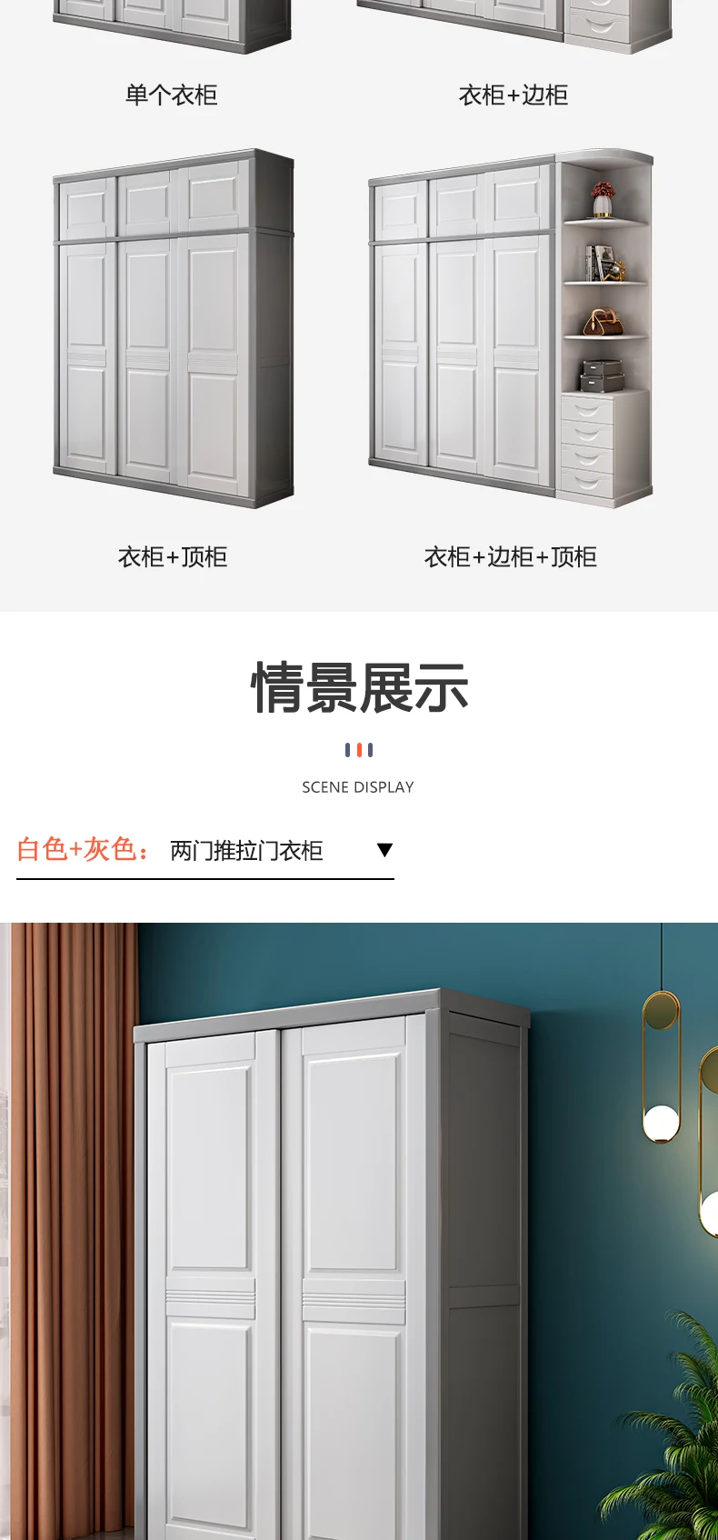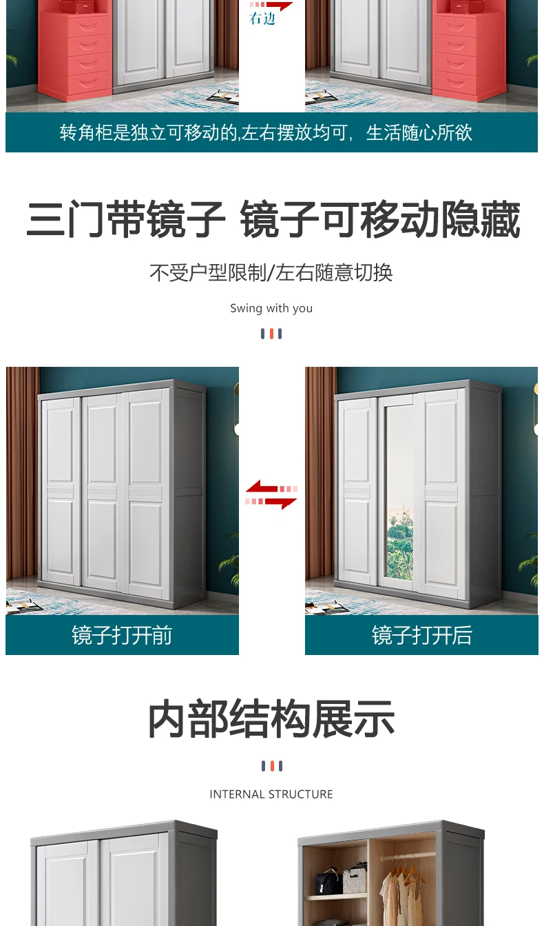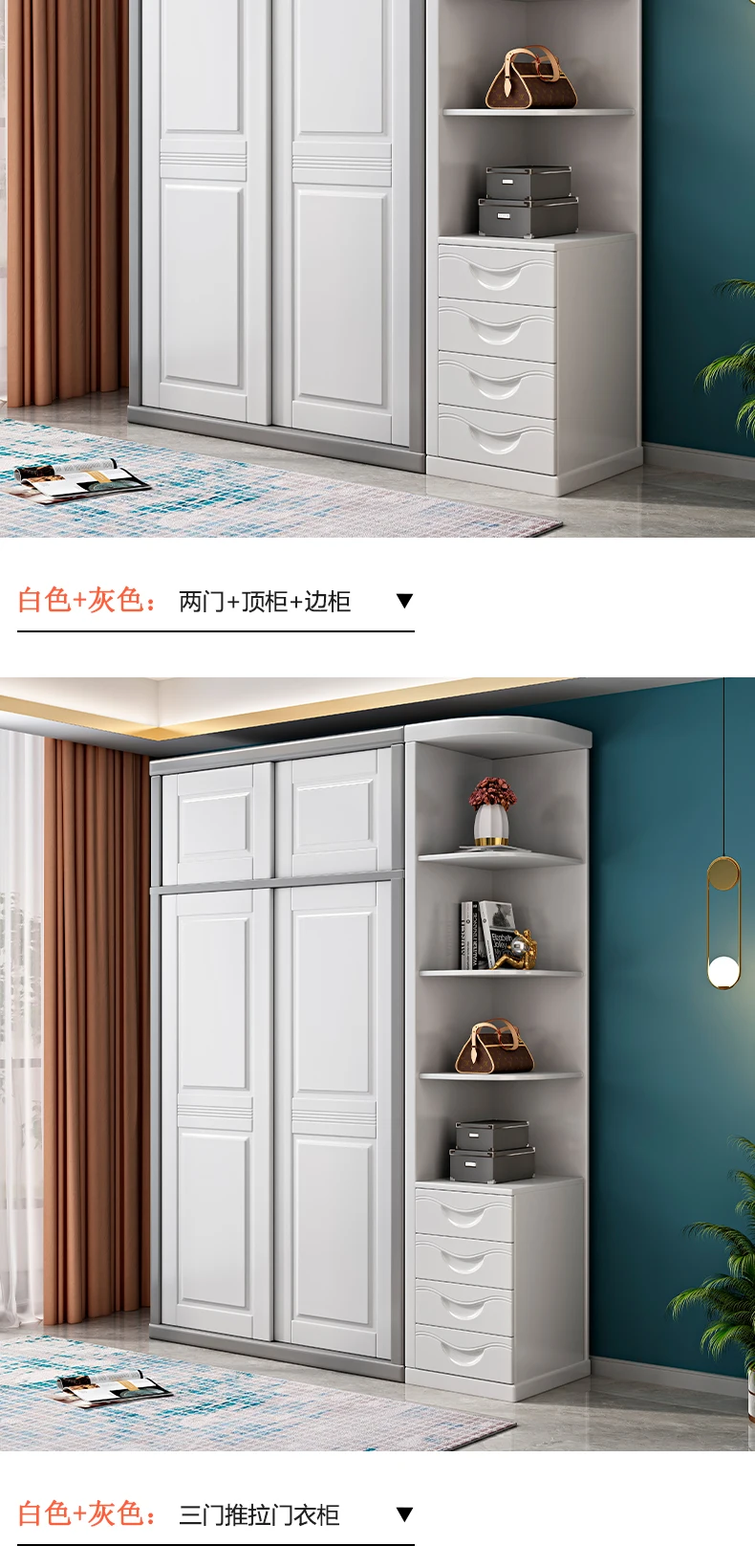 Solid wood wardrobe sliding door household bedroom modern simple 2 doors 3 sliding doors white log storage cabinet