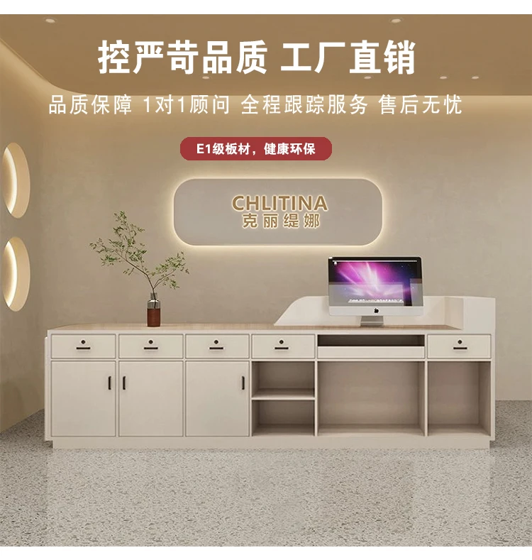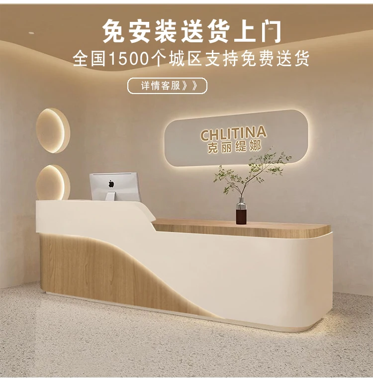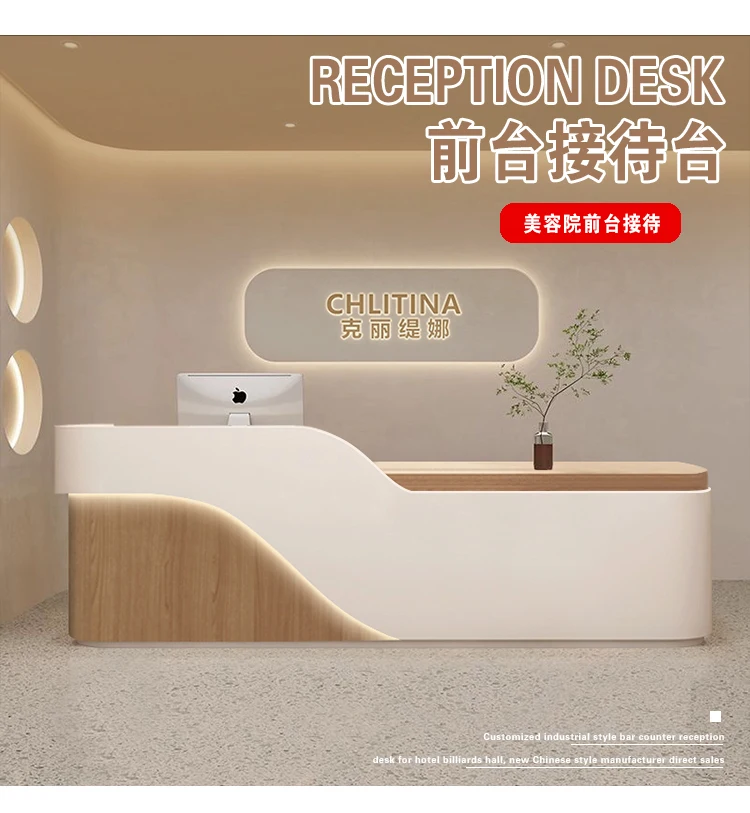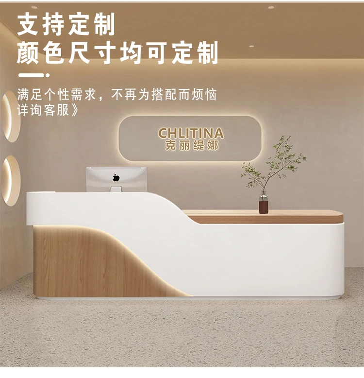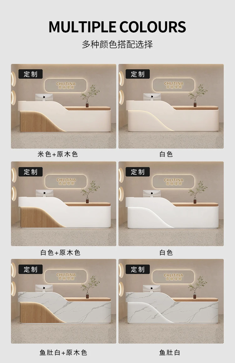 Spa Counter Salon Reception Desk White Cashier Checkout Restaurant Shop Counter Long Mostrador Tienda Office Reception Furniture