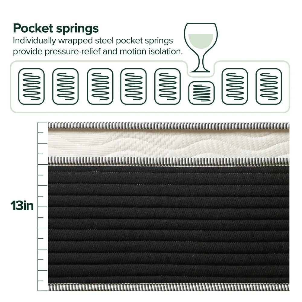Spa Sensations by Zinus 13" Classic Pocket Spring Hybrid Mattress, Queen