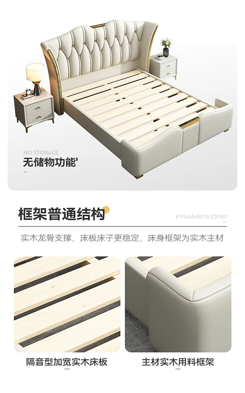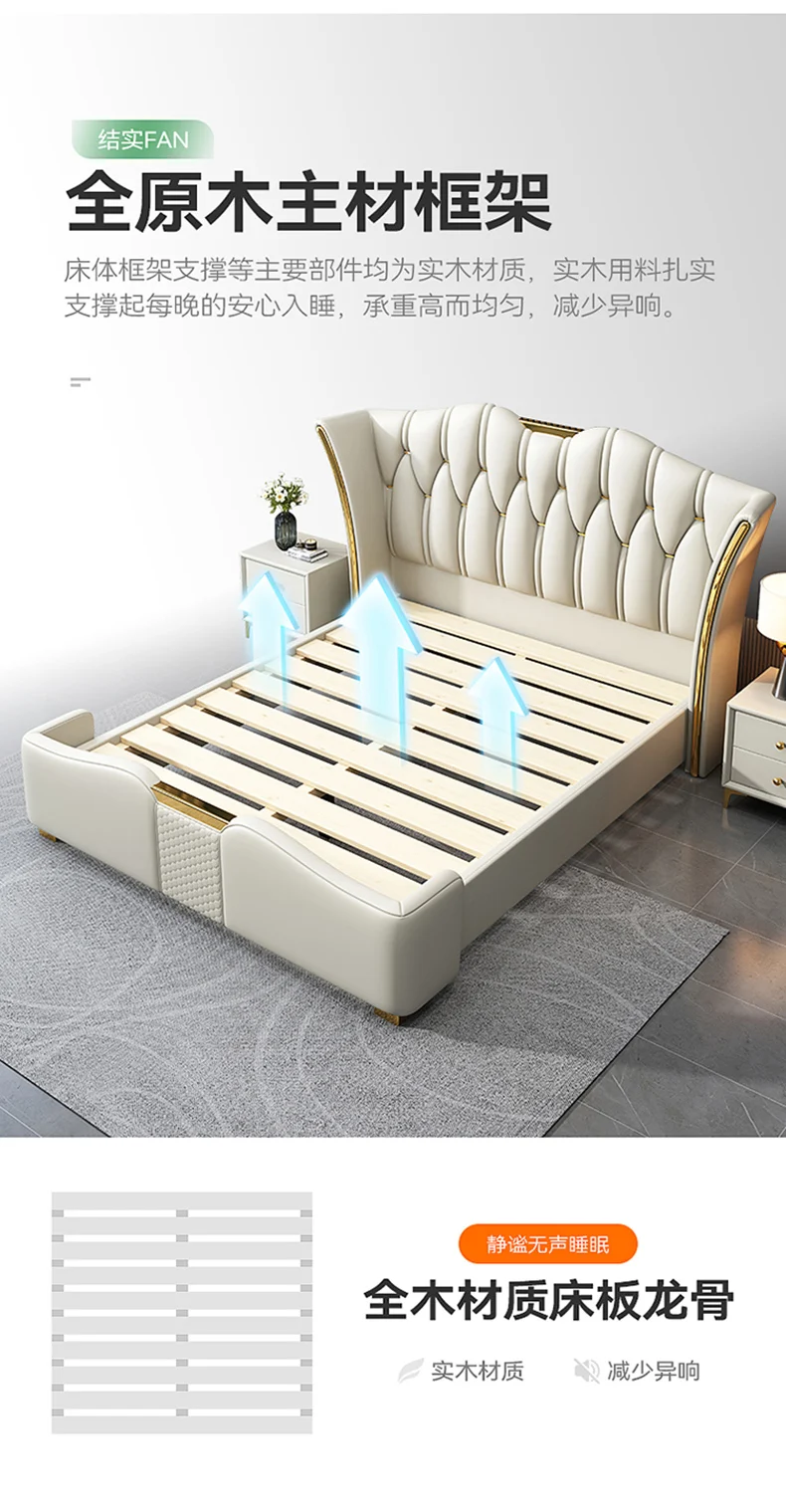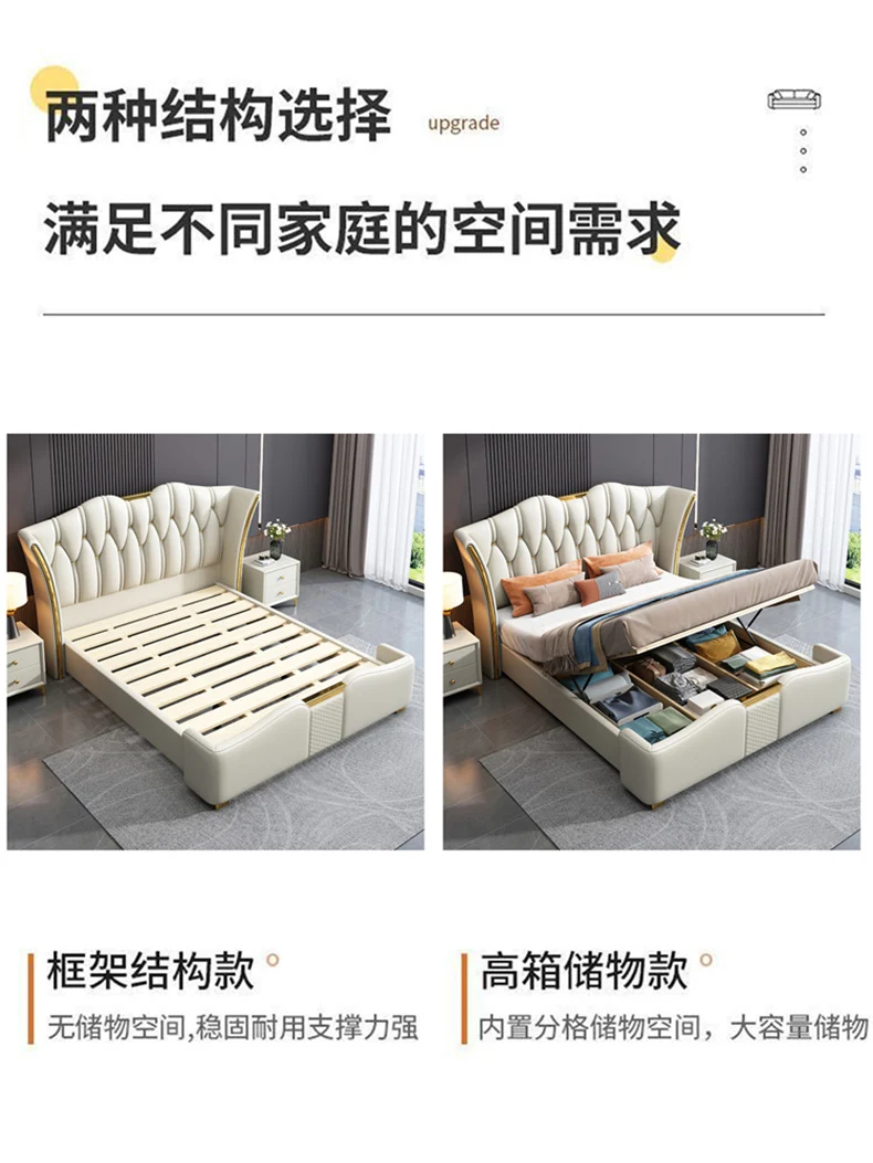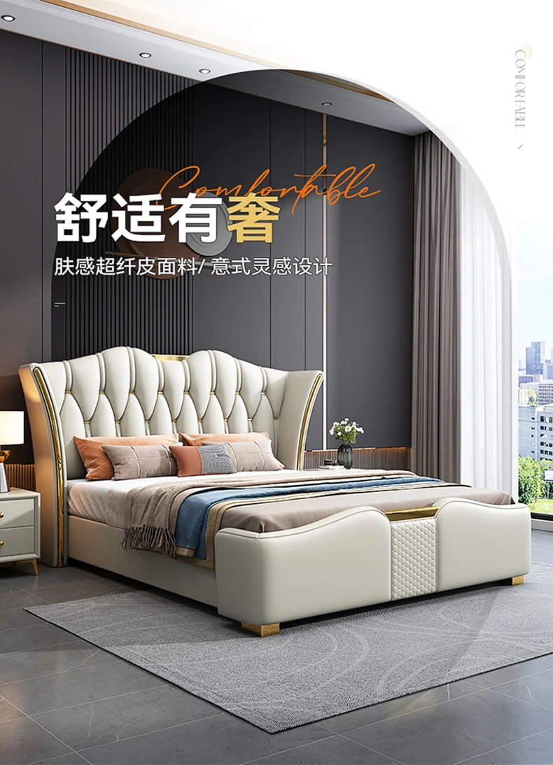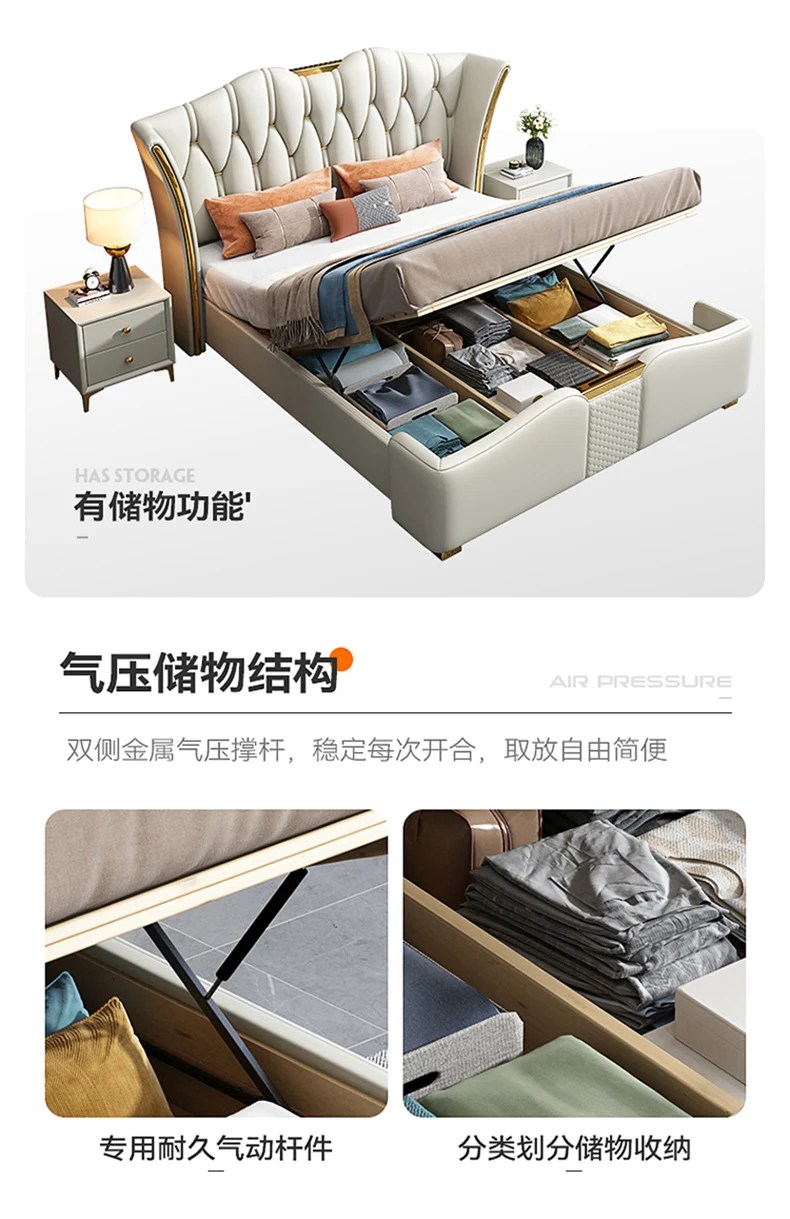 Space Saving Marriage Bed King Size European Multifunctional Lounge Bed Modern Luxury Cama De Casal Luxuosa Hotel Furniture