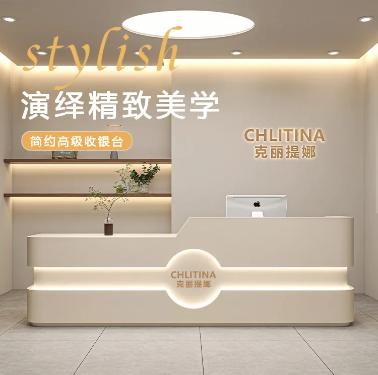 Standing Office Reception Desk Luxury Clinic Checkout Cashier Counter Mobile Standing Beautysalon Meubilair Salon Furniture