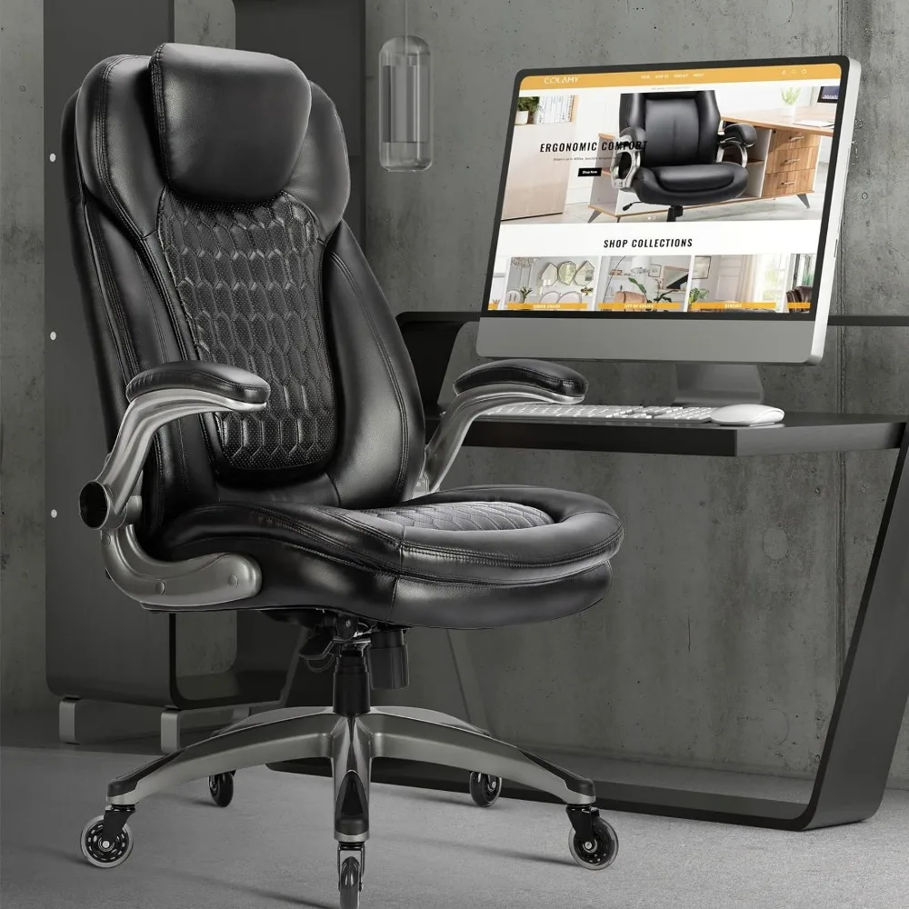 - ✅【Made for All-day Comfort】Adopt advanced ergonomic design and invest in materials! High backrest and bionic spine contour help keep your spine in a relaxed state and maintain the correct sitting posture. The headrest is thickened in three layers to ensure when you lean on it, you can feel the ultimate soft support; The seat cushion is wider and double padded to offer a soft sitting feeling and long-lasting support. Padded flip-up armrests provide optimal support for forearms without cold touch