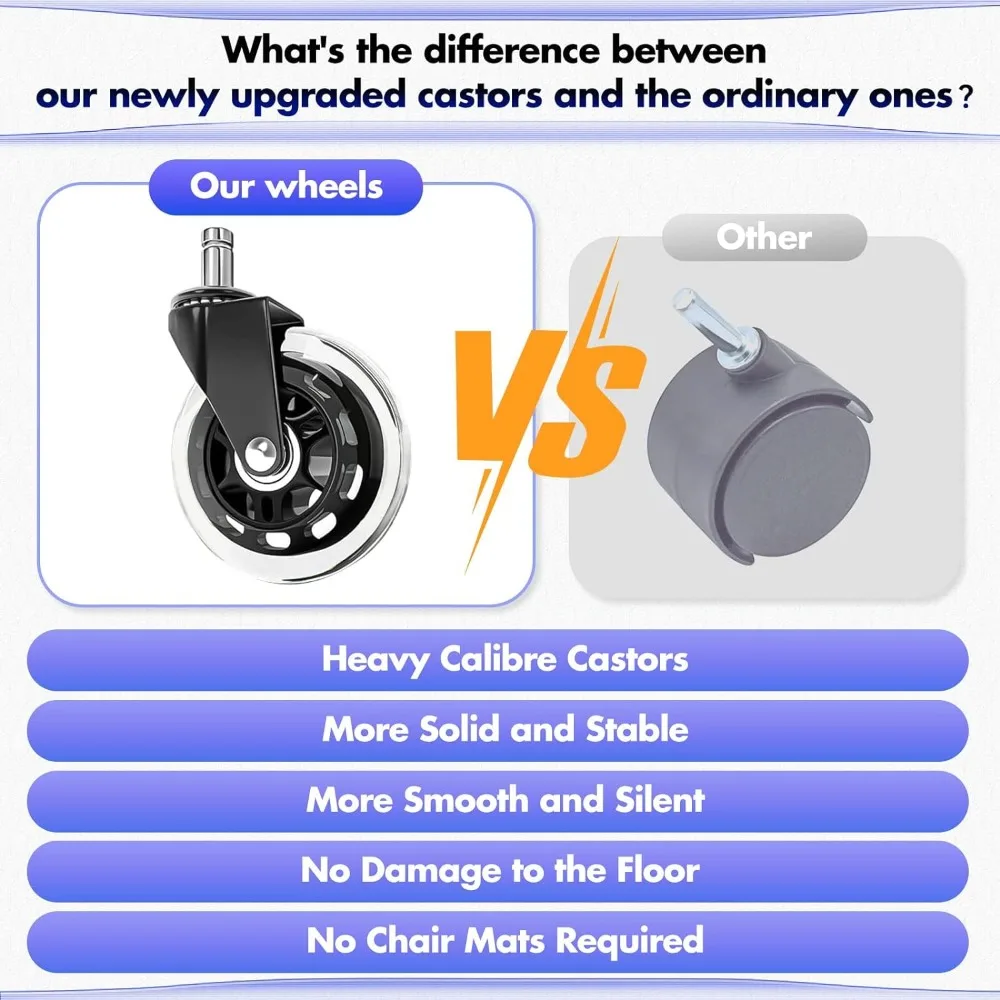 - ✅【Luxury Upgraded Casters】Upgraded large caliber nylon casters, which are more solid and fashionable, more flexible for swivel rolling. Also, the caster is friendly to any floors and will not cause scratches. No floor mat is extra required. When swivel or rolling, there will be no abnormal noise, help you create a more efficient and silent working environment. The upgraded casters are not easy to fall off from the chair, durable enough for years of use
