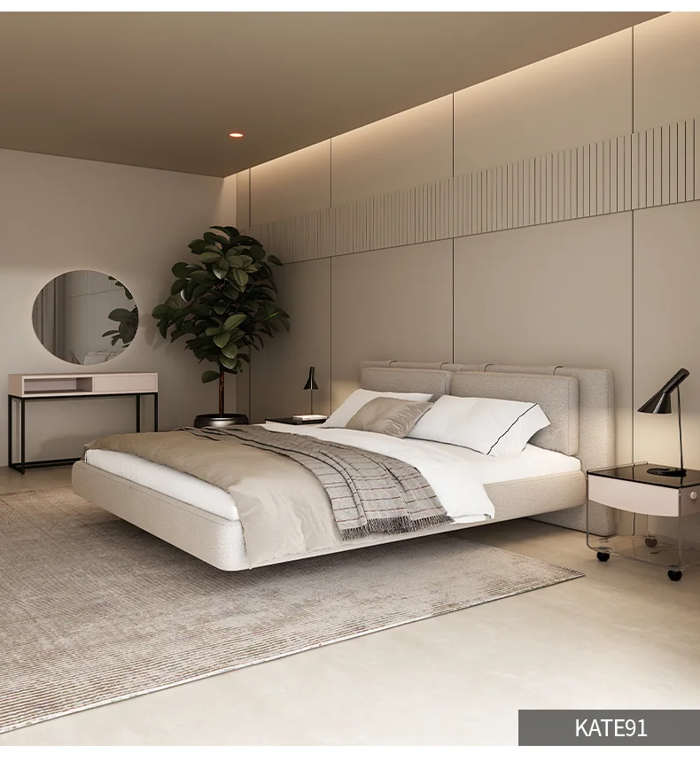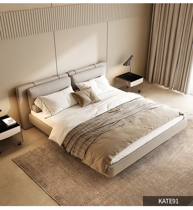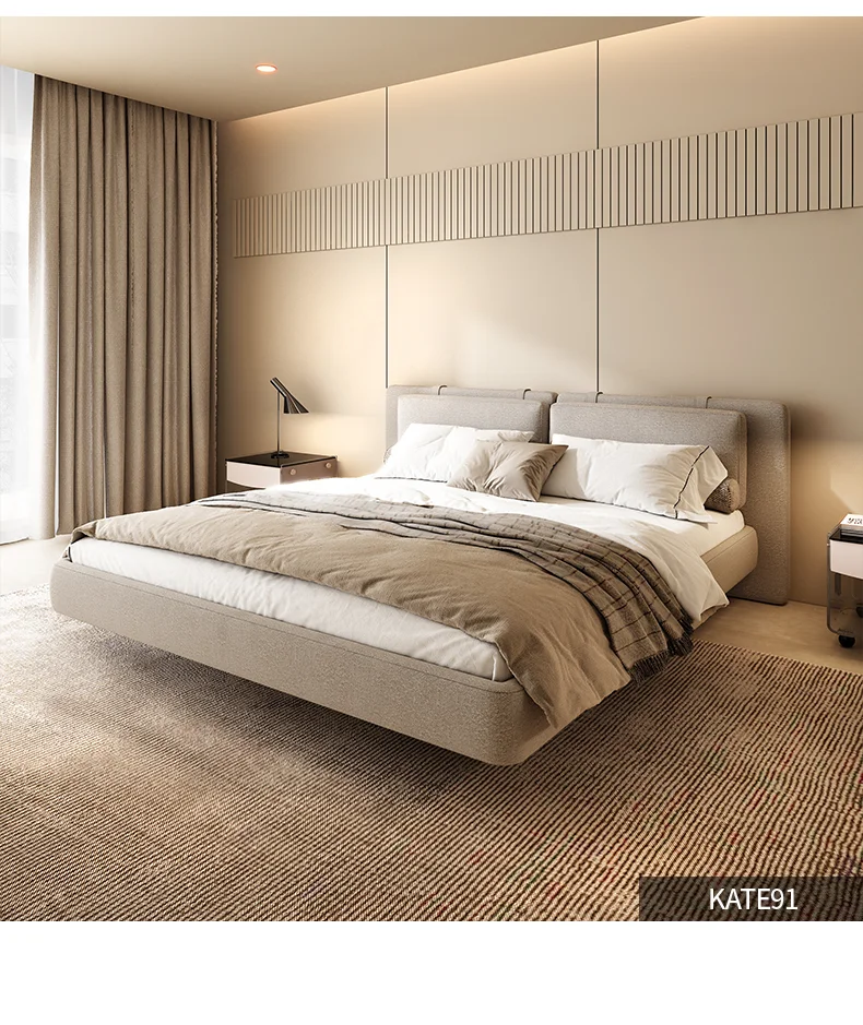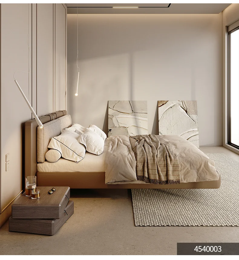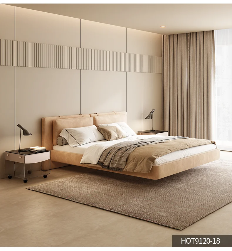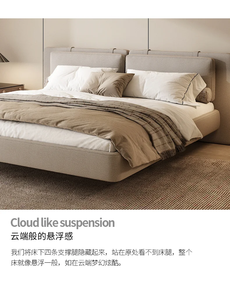 Suspended bed is light and luxurious, modern double master bedroom Italian minimalist bed, Nordic bedside cover soft bag
