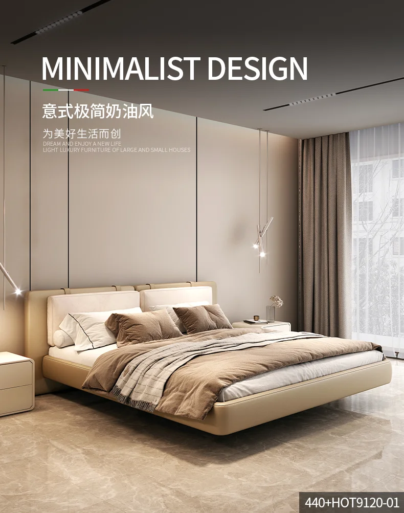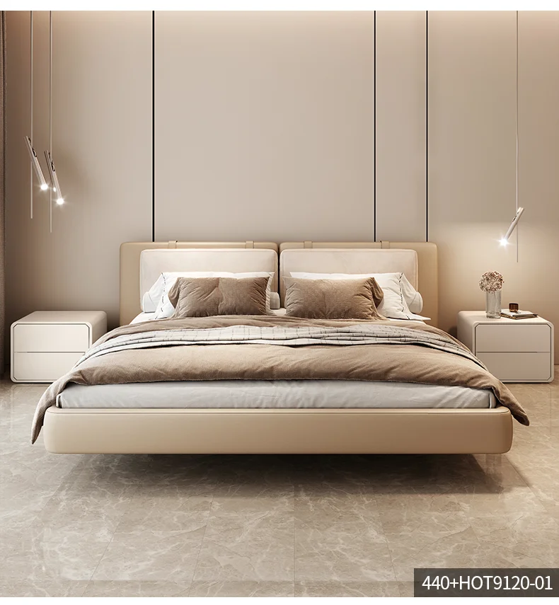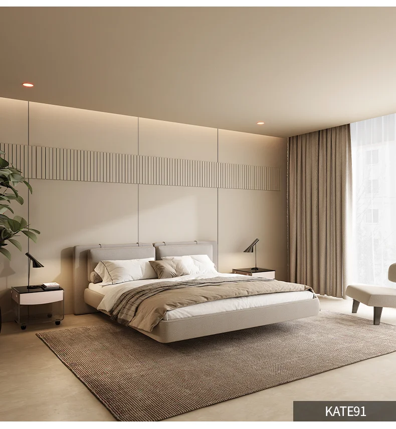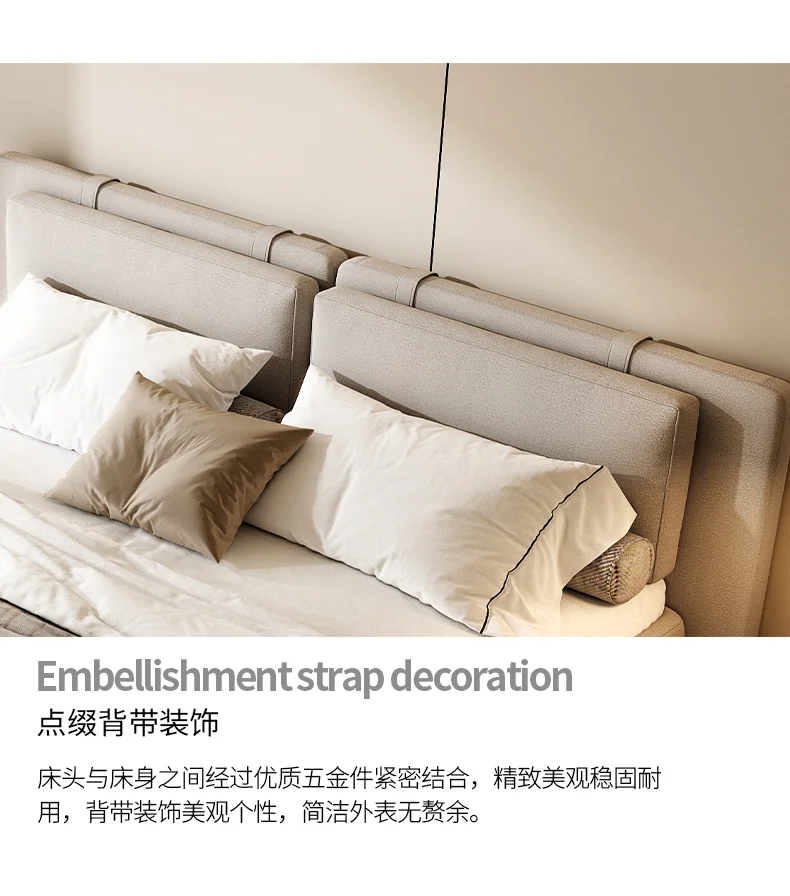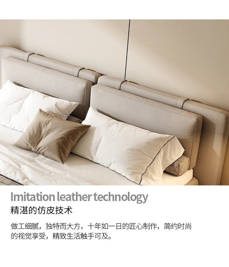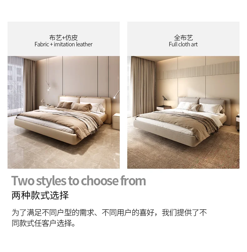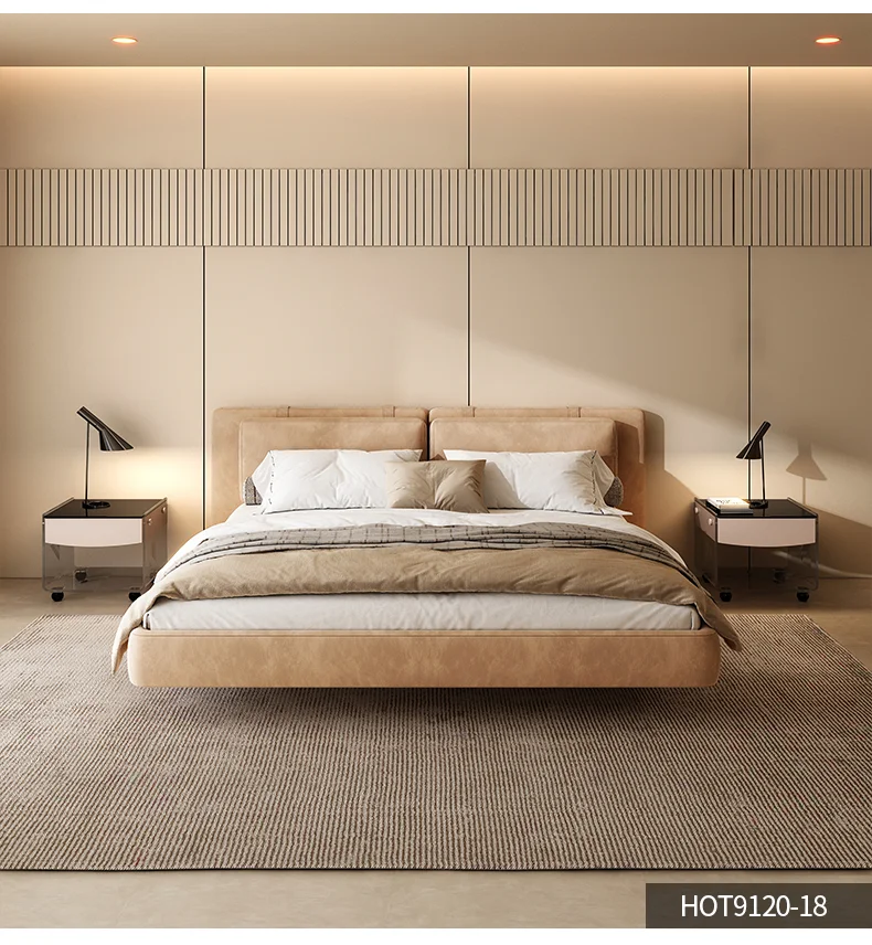 Suspended bed is light and luxurious, modern double master bedroom Italian minimalist bed, Nordic bedside cover soft bag