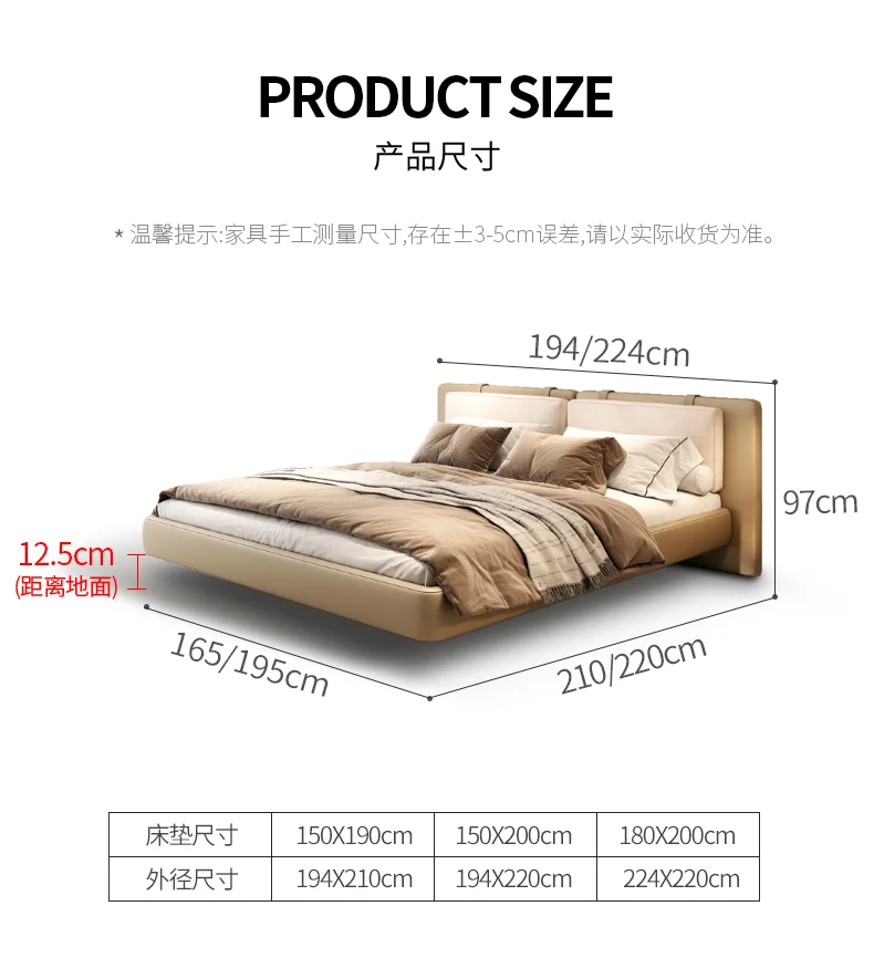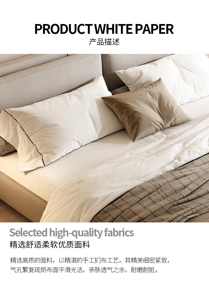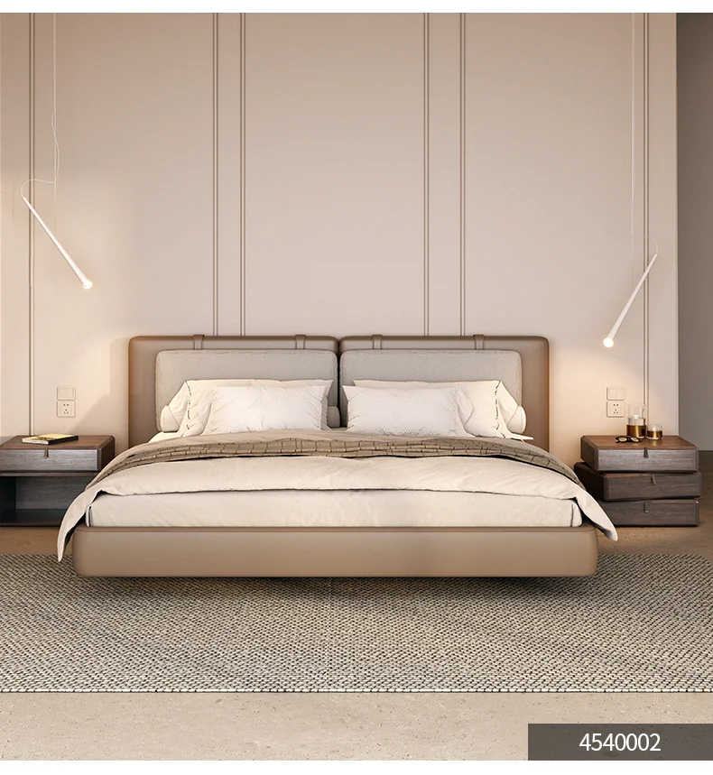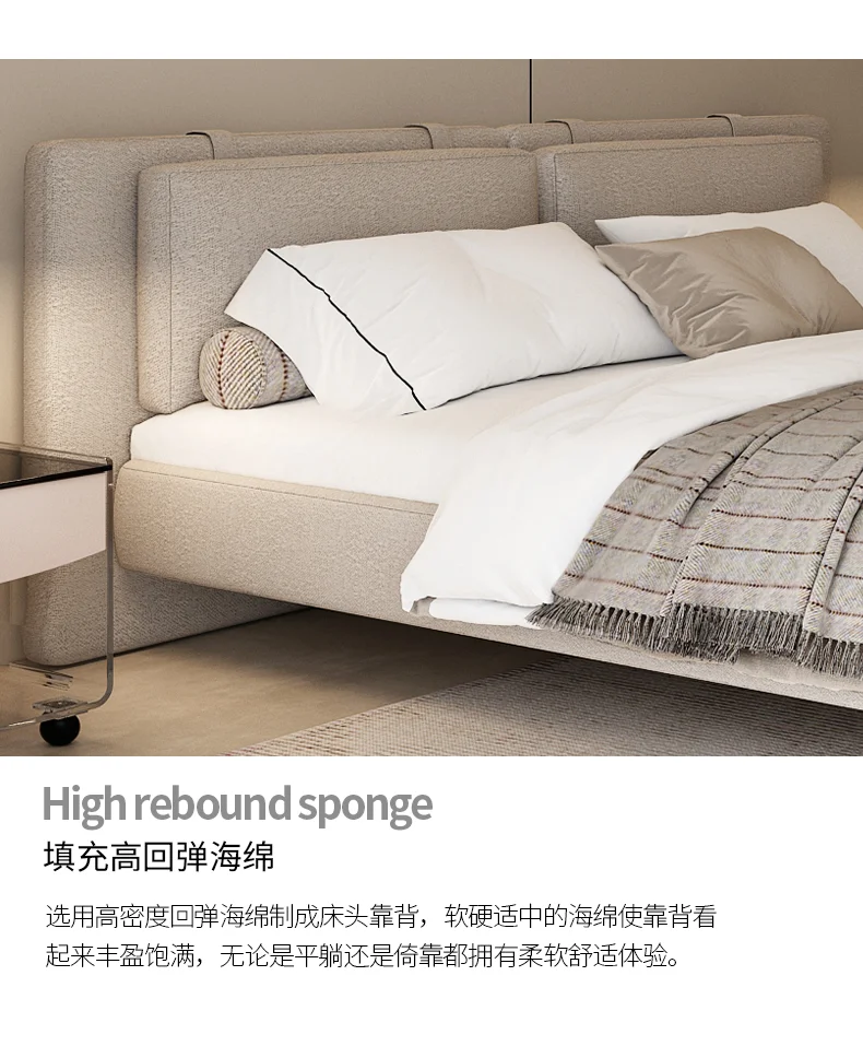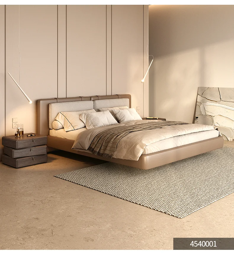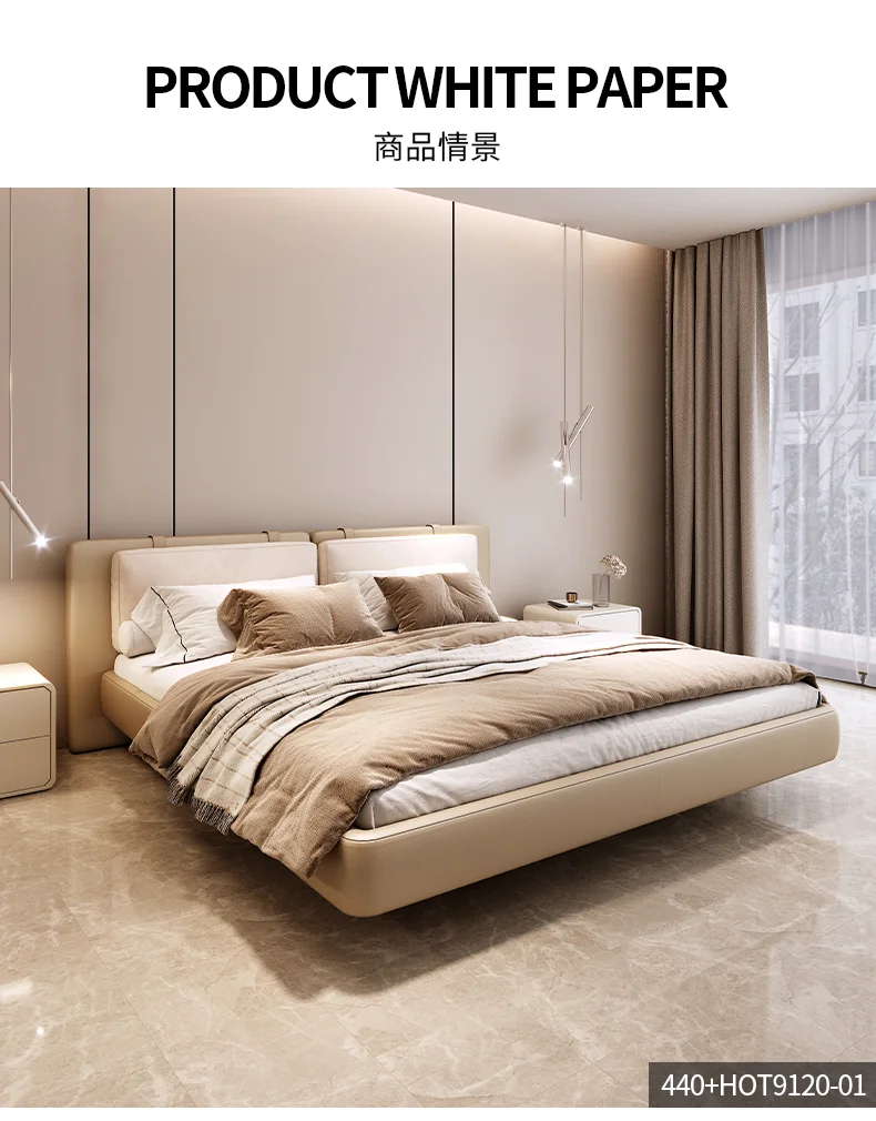 Suspended bed is light and luxurious, modern double master bedroom Italian minimalist bed, Nordic bedside cover soft bag