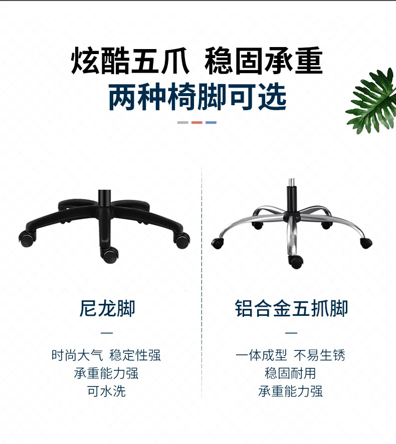 Five star foot material: Nylon feet, aluminum alloy feet, steel feet