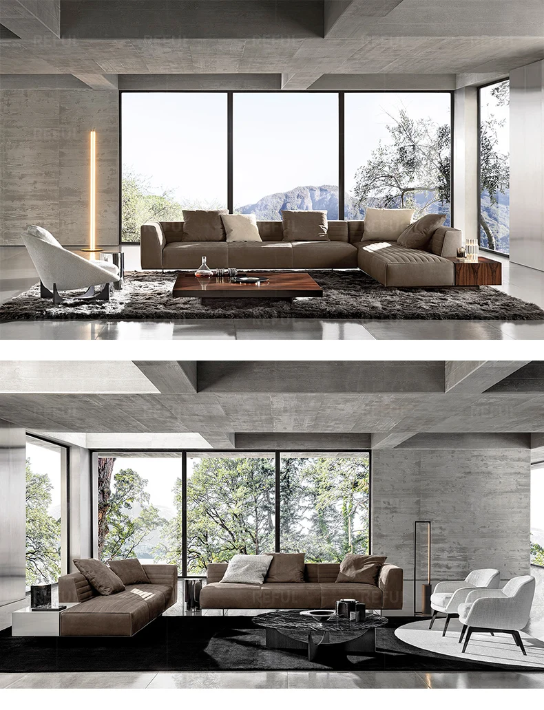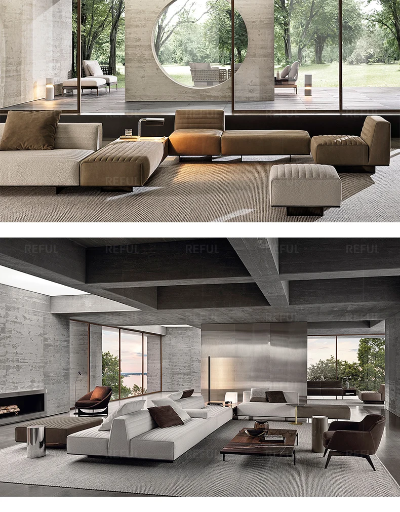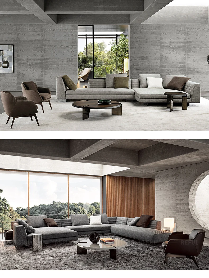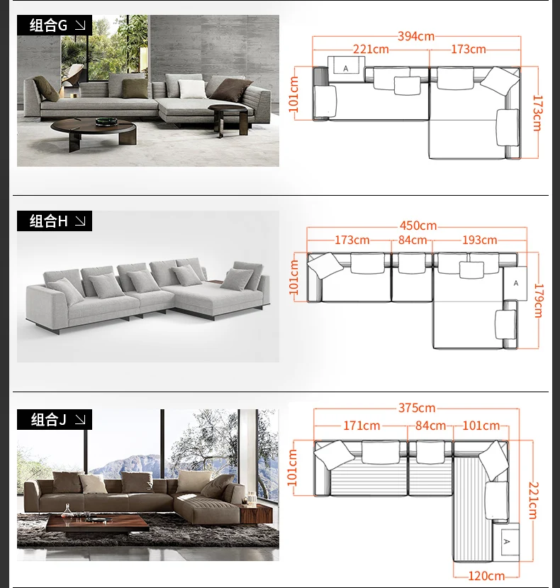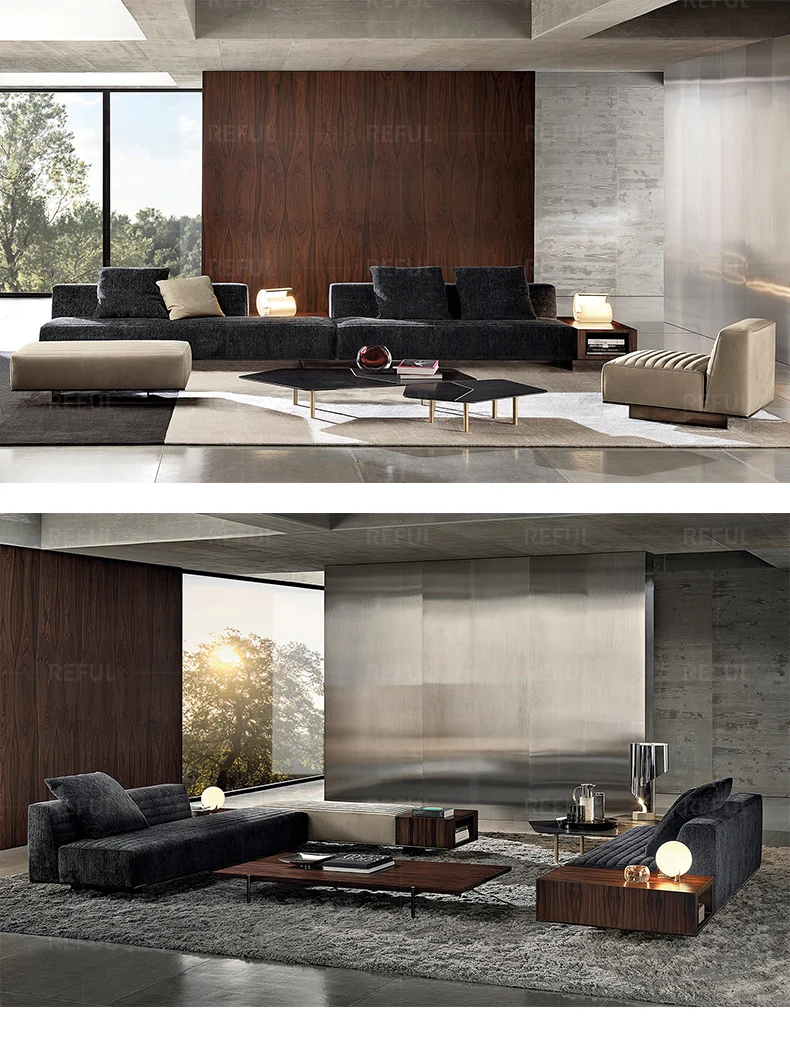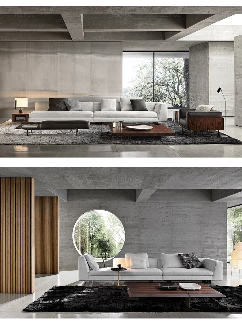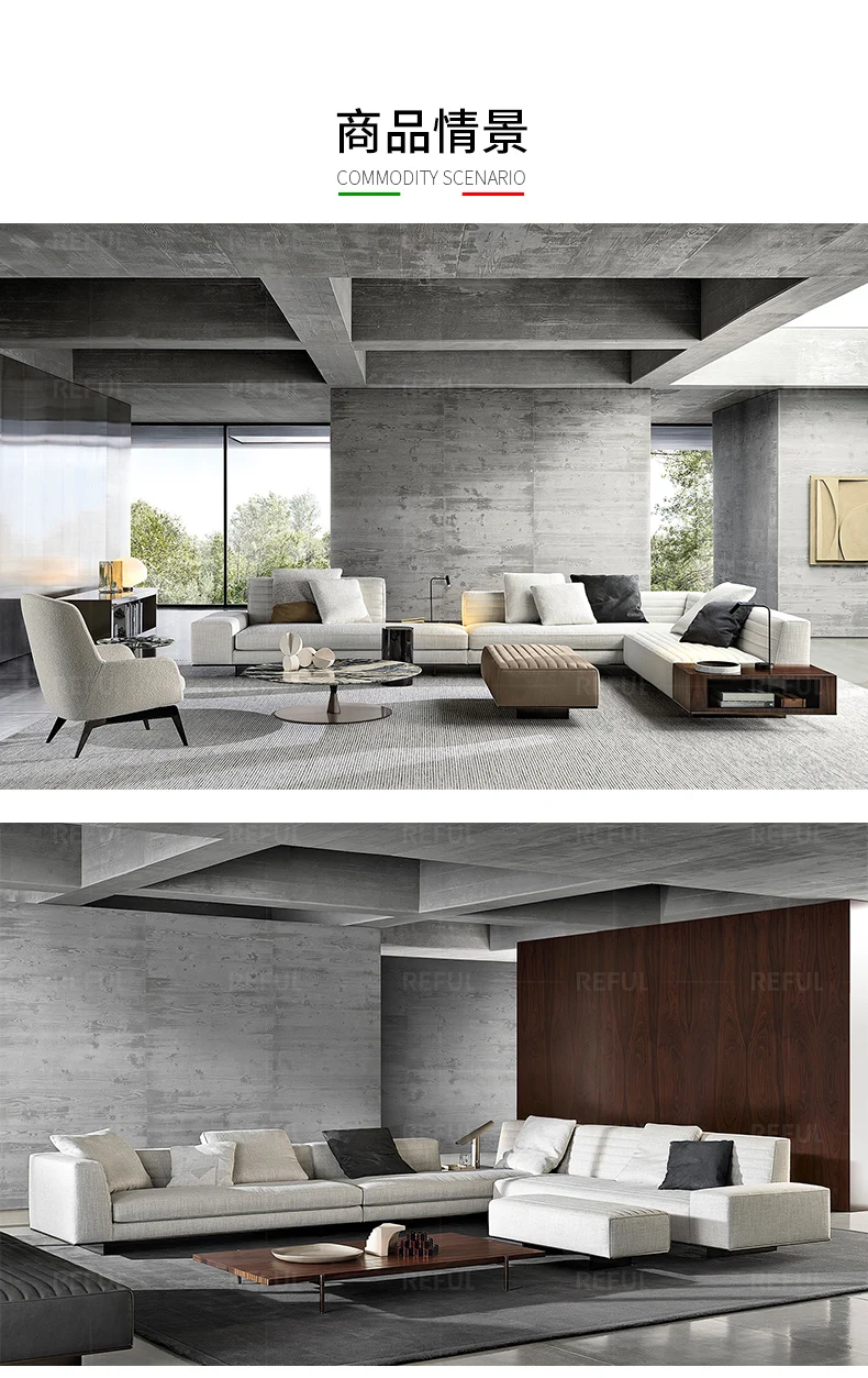 The new living room is simple, modern cloth sofa, home industrial style, cotton and linen for three and four.