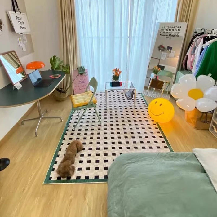 Thickened velvet Living room rugs Checkerboard room decor Deluxe lobby floor mat Short hair Nordic bedroom carpet large area rug