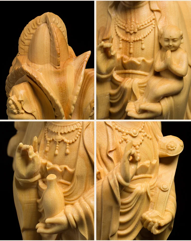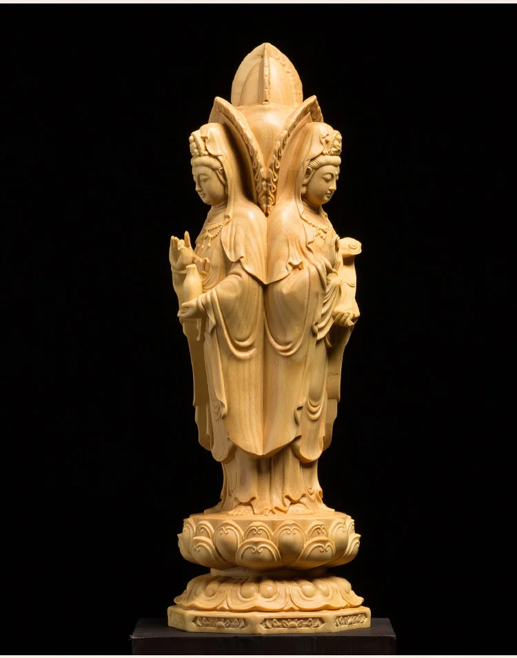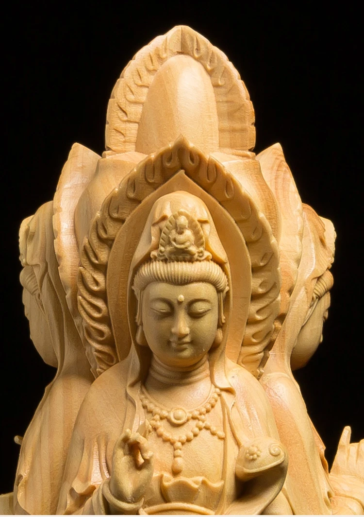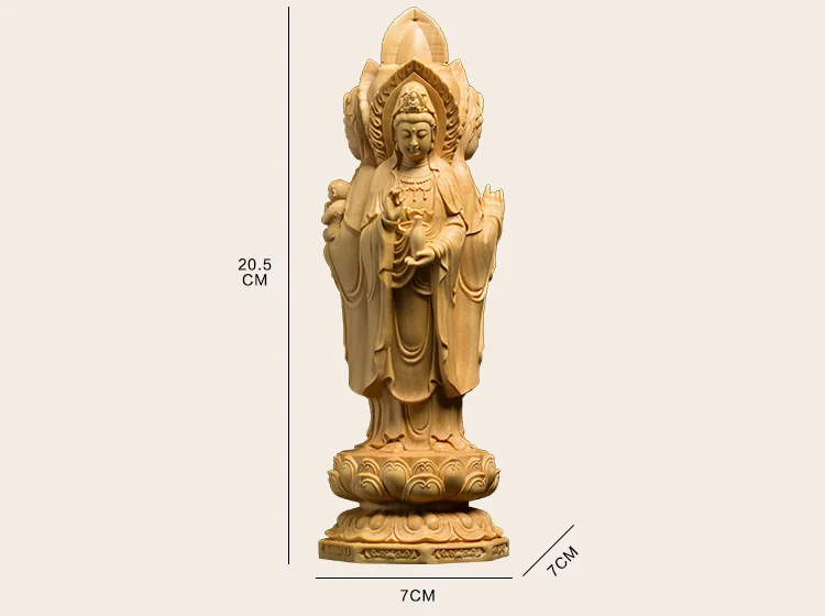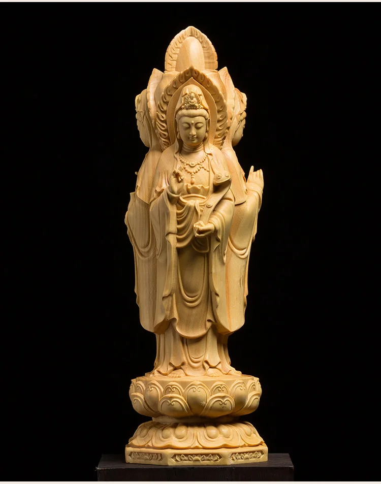 Three-Faced Kuanyin Statue: Thailand Religious Wood Craftsmanship - Unique Buddha Desk Ornament Elevating Home Interior Decor