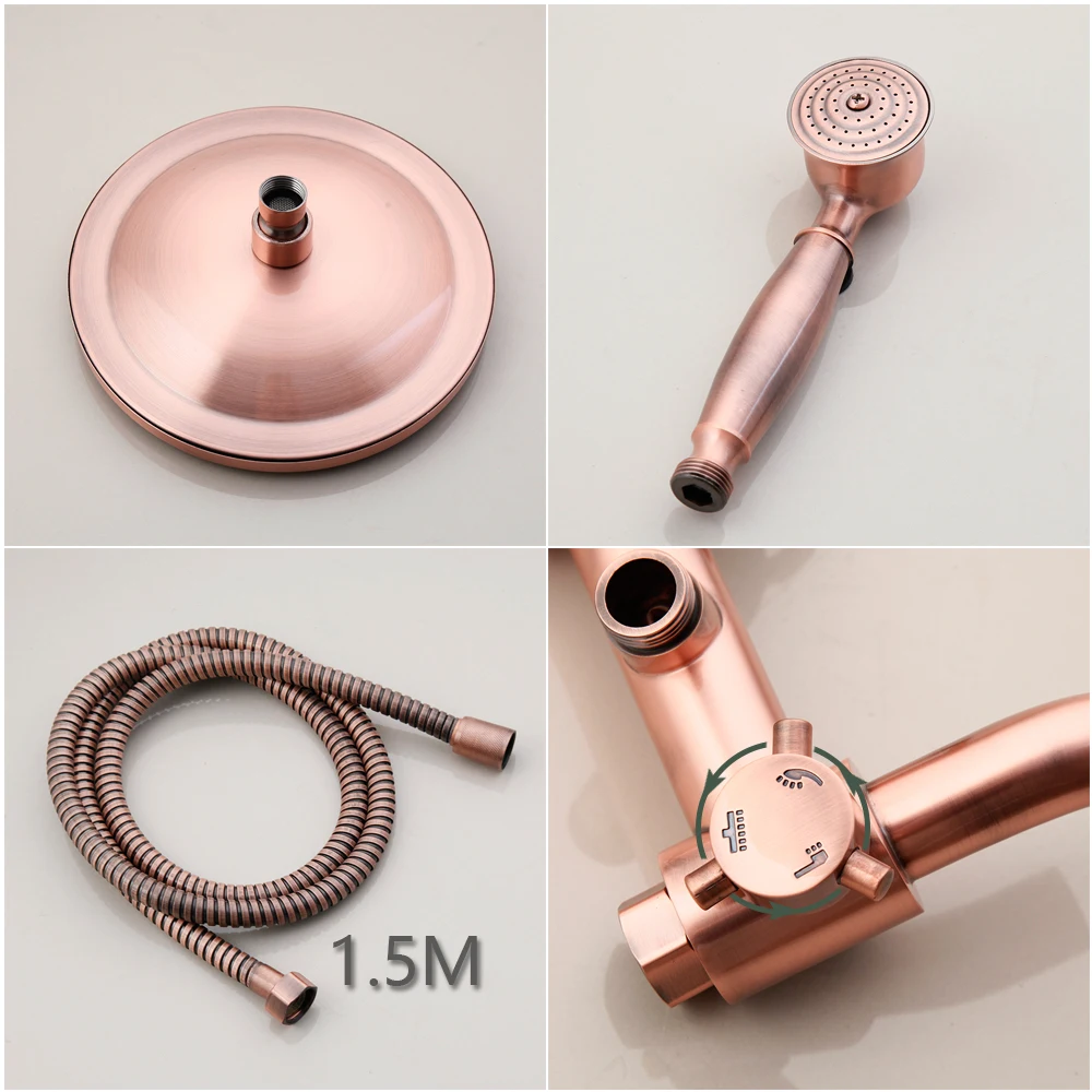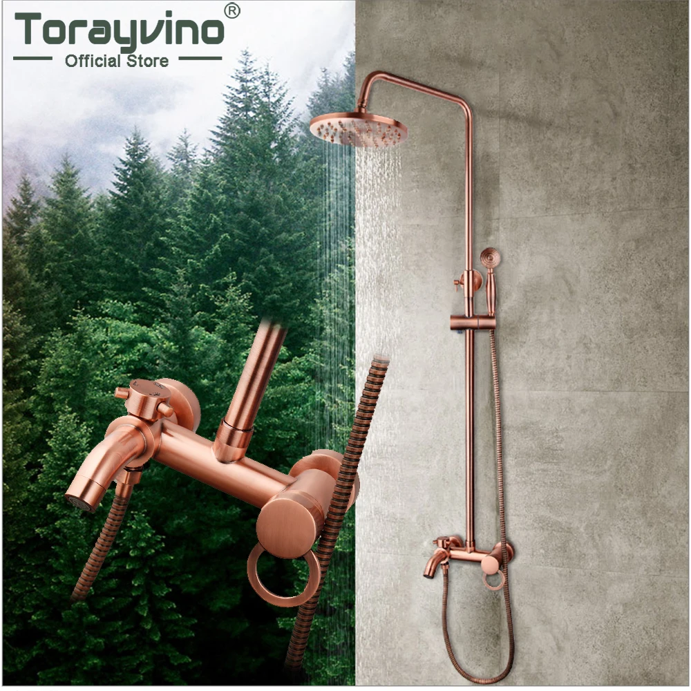 Torayvino Antique Copper Bathroom Shower Faucet Set Rainfall Bath Showers Head Bathtub Shower System Wall Mounted Mixer Tap