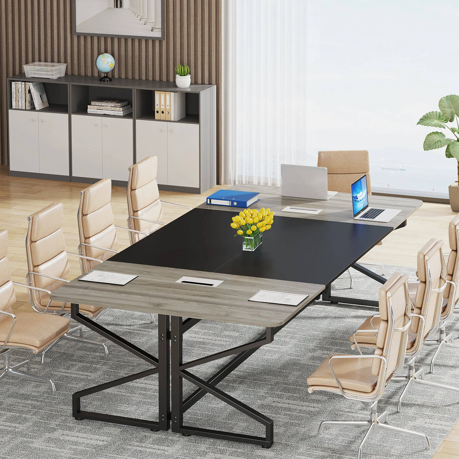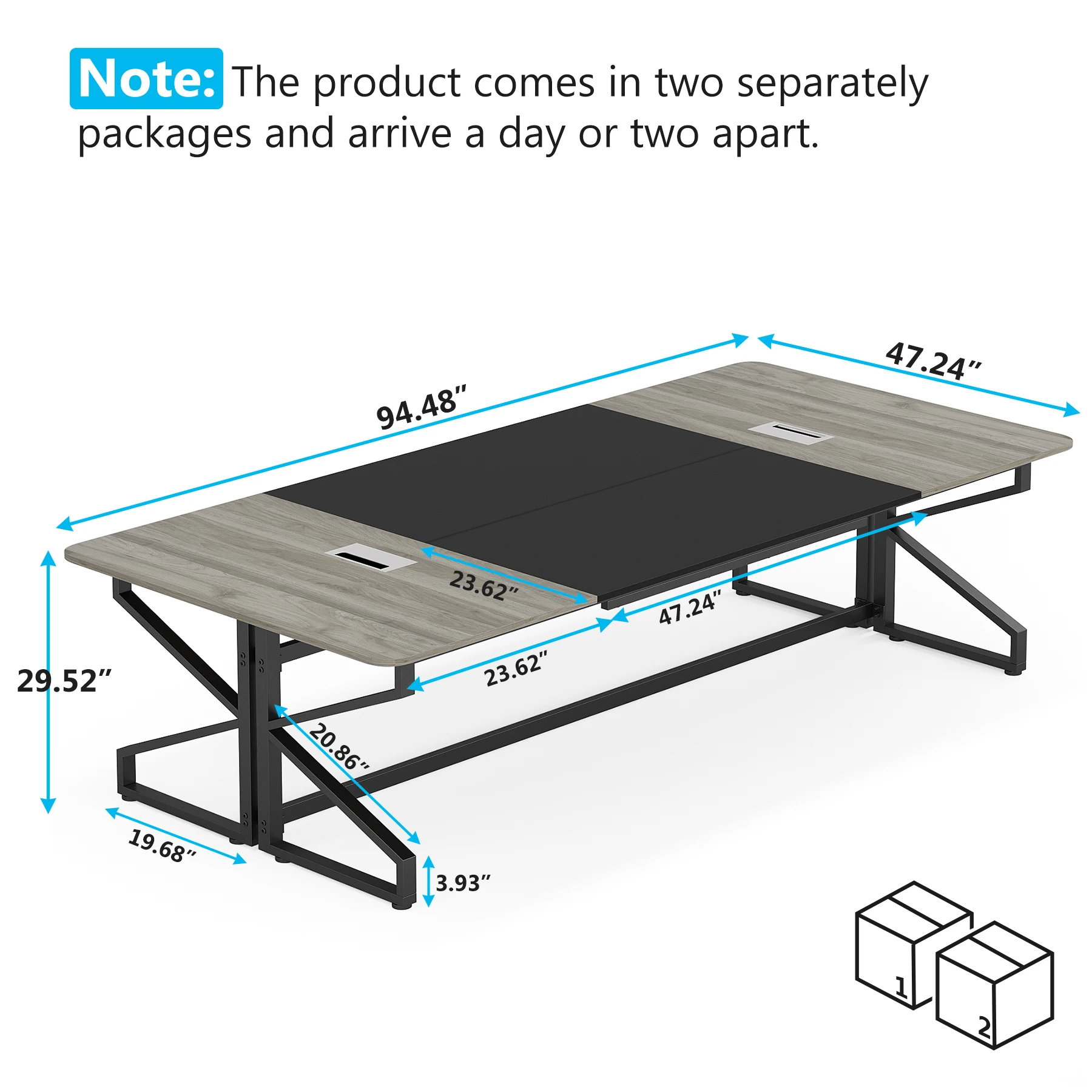 Tribesigns 8FT Conference Table, Rectangular Meeting Room Tables with Cable Grommet, 94.48L x 47.24W x 29.52H Inch