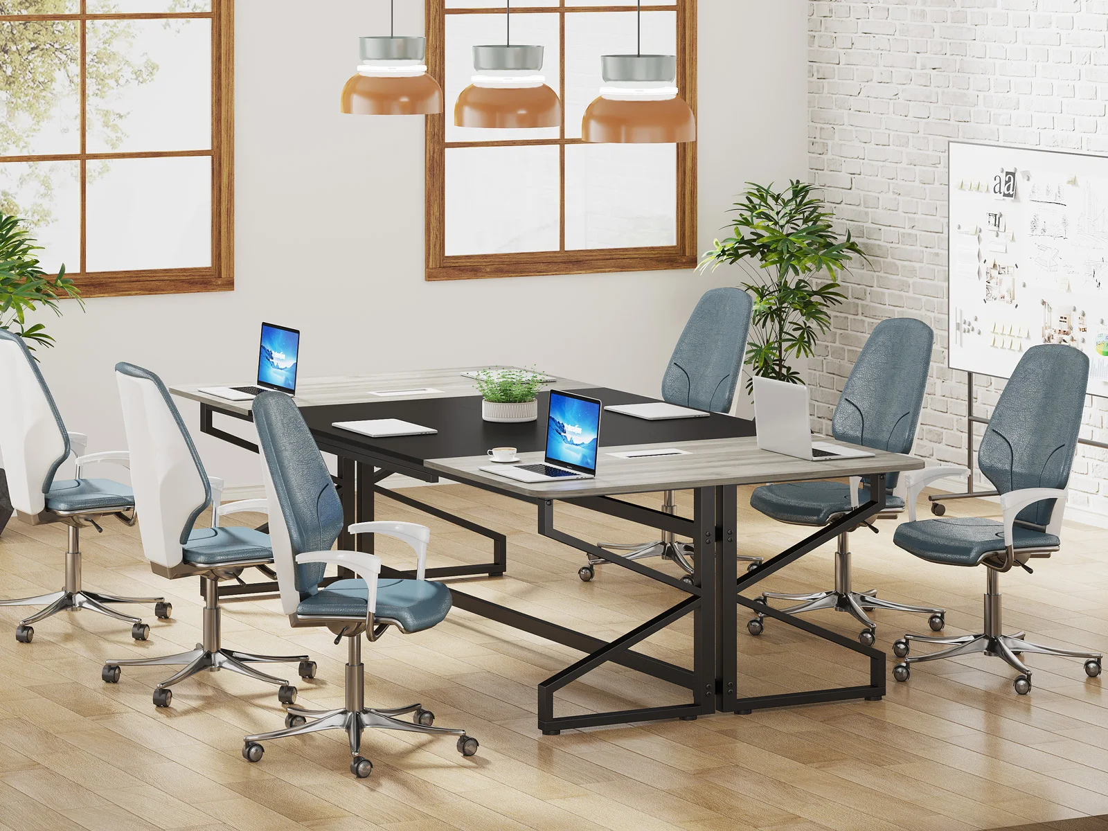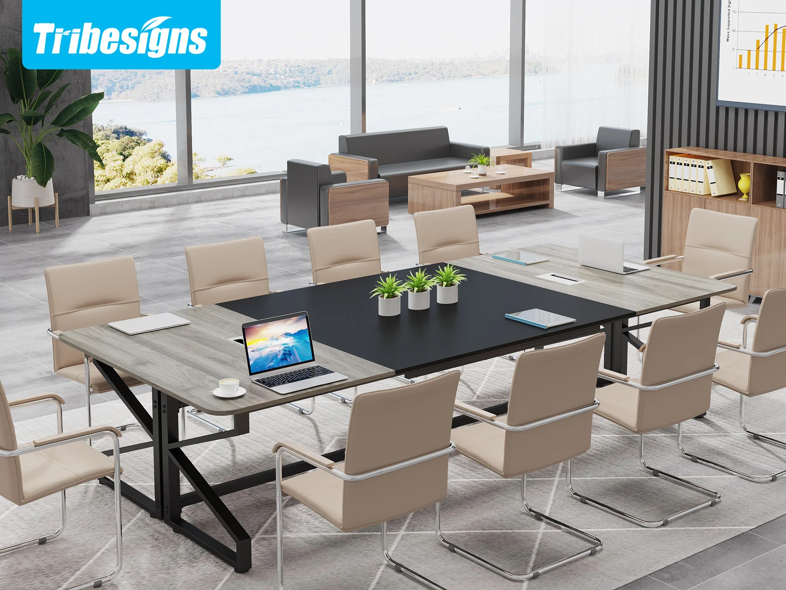 【Unique and Stylish】This conference table adopts a geometric and unique double K-shaped desk legs as reinforced frame and meanwhile two extra-long iron tubes under the table provide additional security, which will give you a totally stylish look as the same time fundamentally prevents shaking.