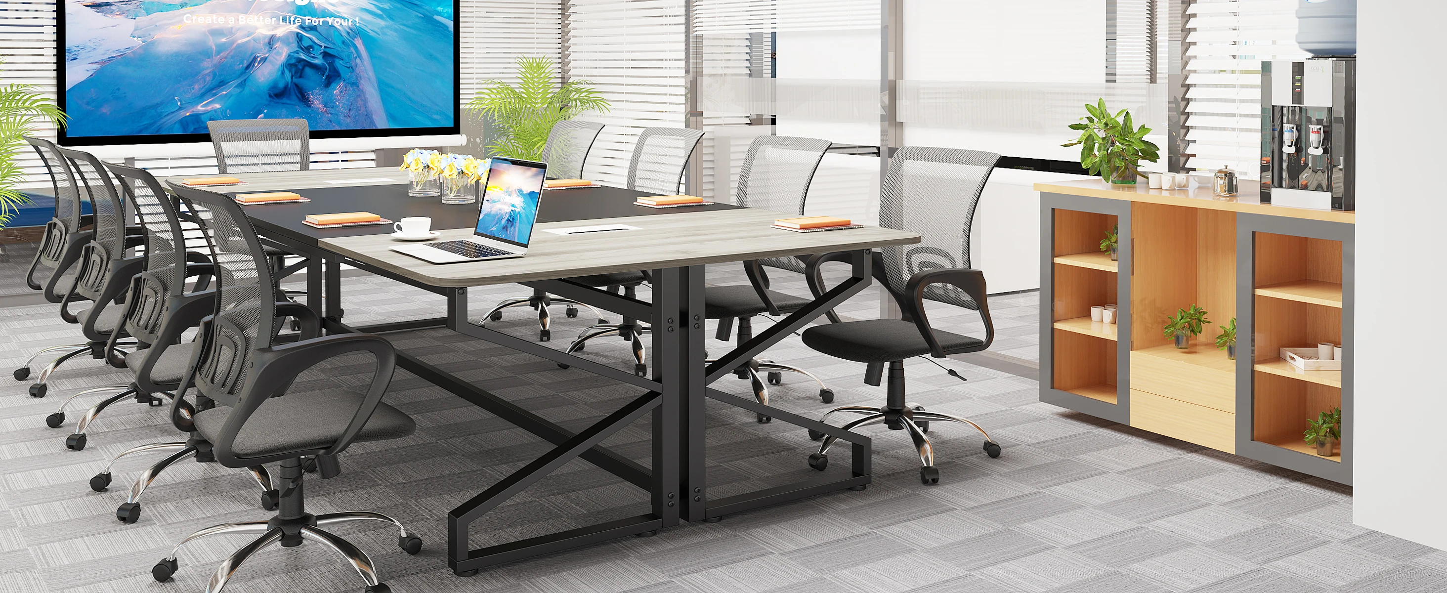 【Necessity for Meeting Room】Effective communication begins with a comfortable meeting environment, so carefully selected meeting tables is necessary, this rectangular conference table is large and provides seating for 8-10 people, a good choice for you!