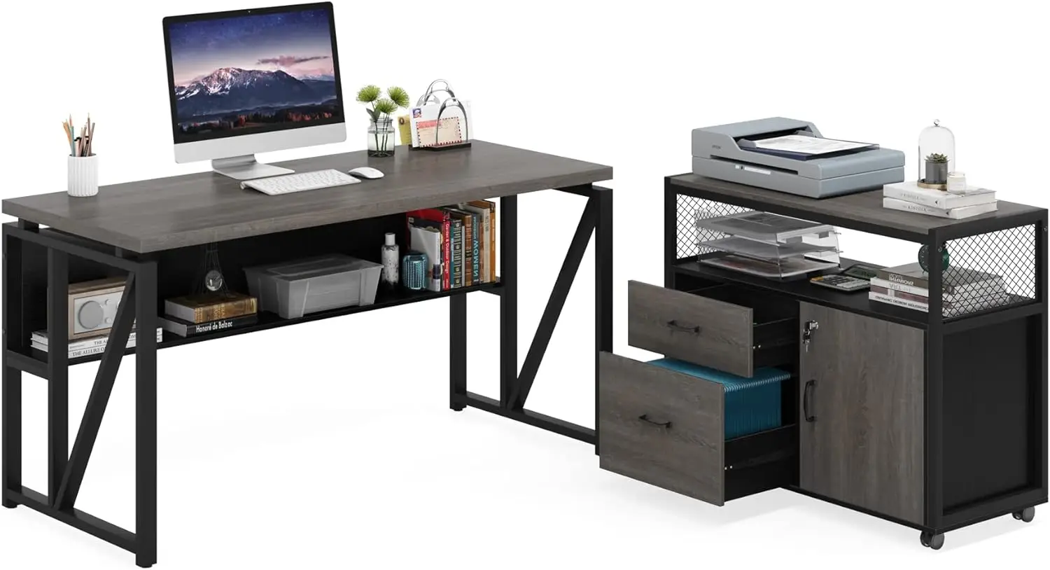 Tribesigns Office Desk with Cabinet Drawers, 55 inches Executive Desk,L Shaped Computer Desk with Storage Shelves and Mobile
