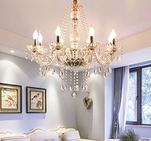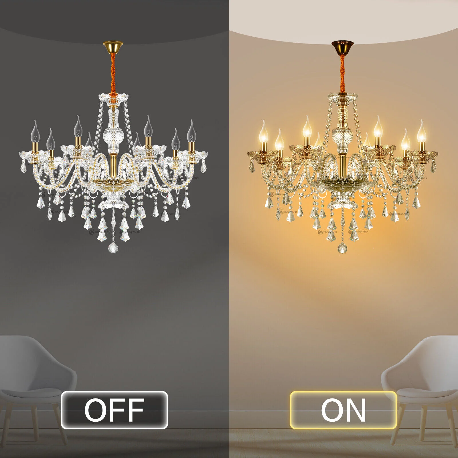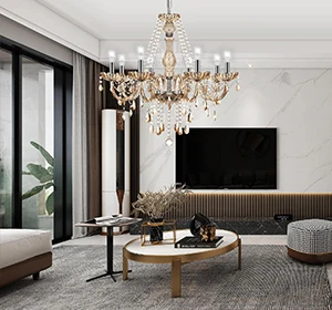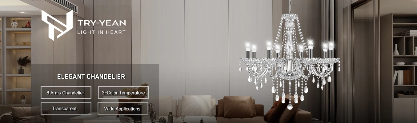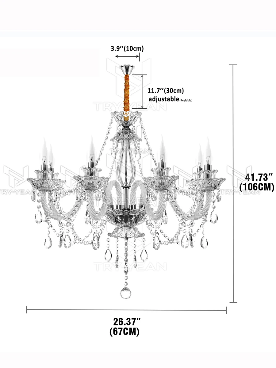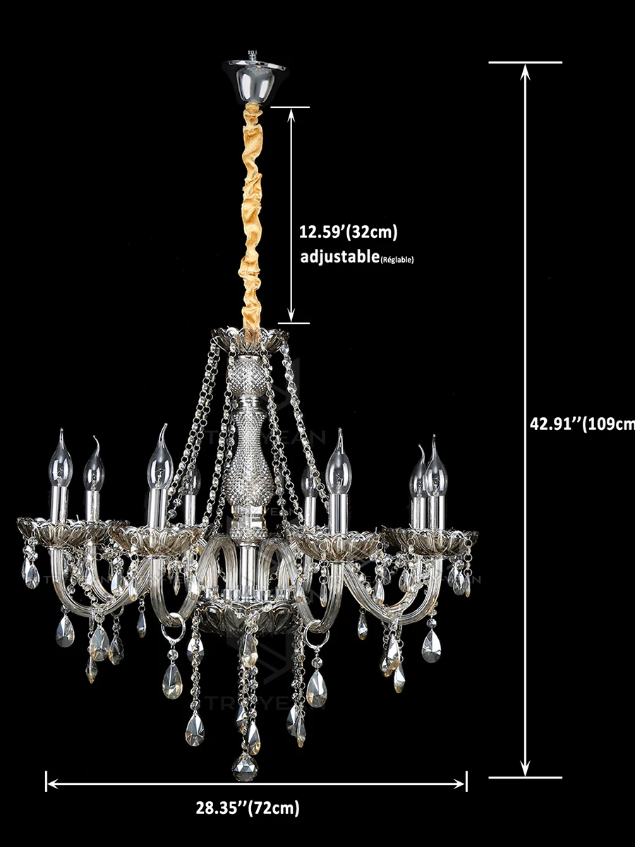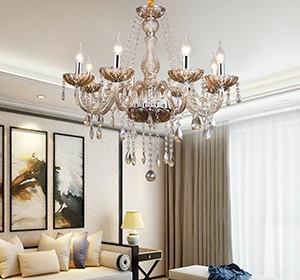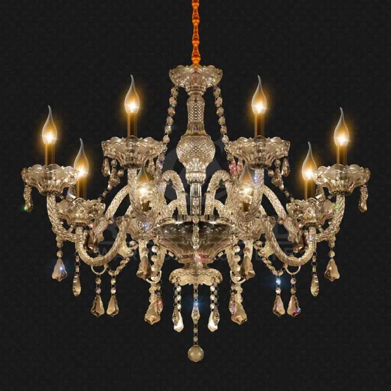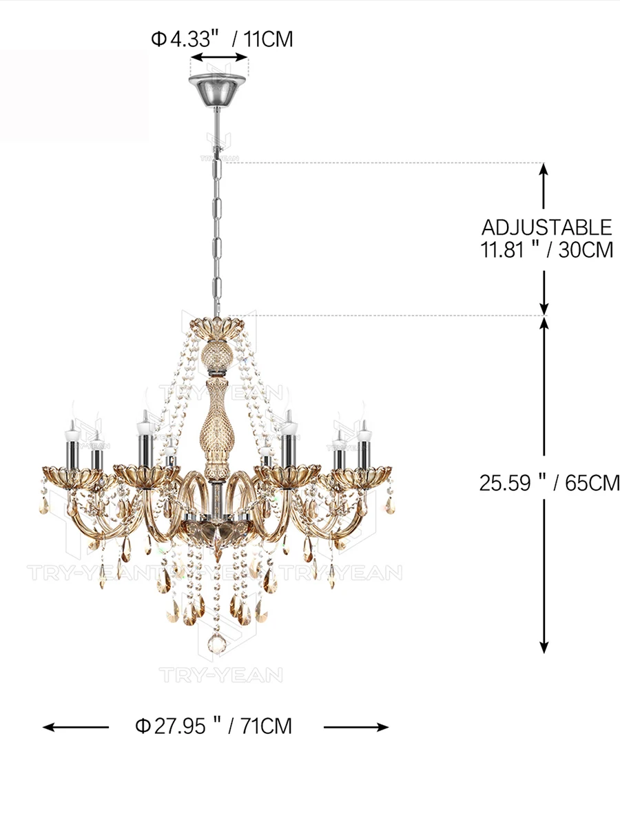 TRY-YEAN Cognac Crystal Glass Chandelier 8 Arms Chandelie Glass Living Room Bedroom Wedding Decor Hanging Lamp Lobby Suspension
