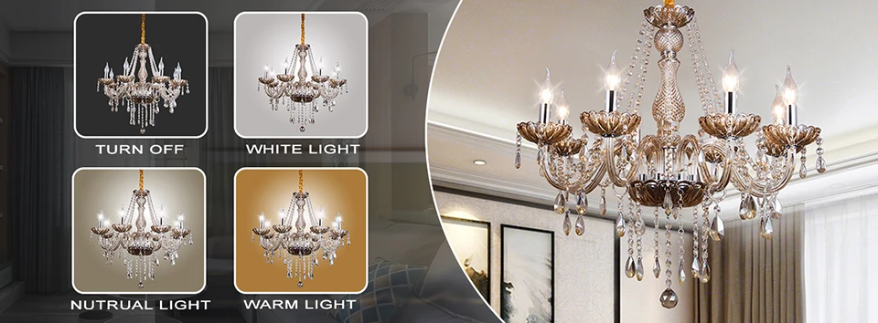 When you open the crystal chandelier, you could adjust the lighting mode, including white light, neutral light and warm light.