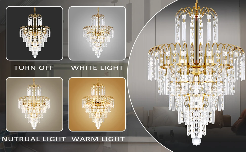 When you open the crystal chandelier, you could adjust the lighting mode, including white light, neutral light and warm light.
